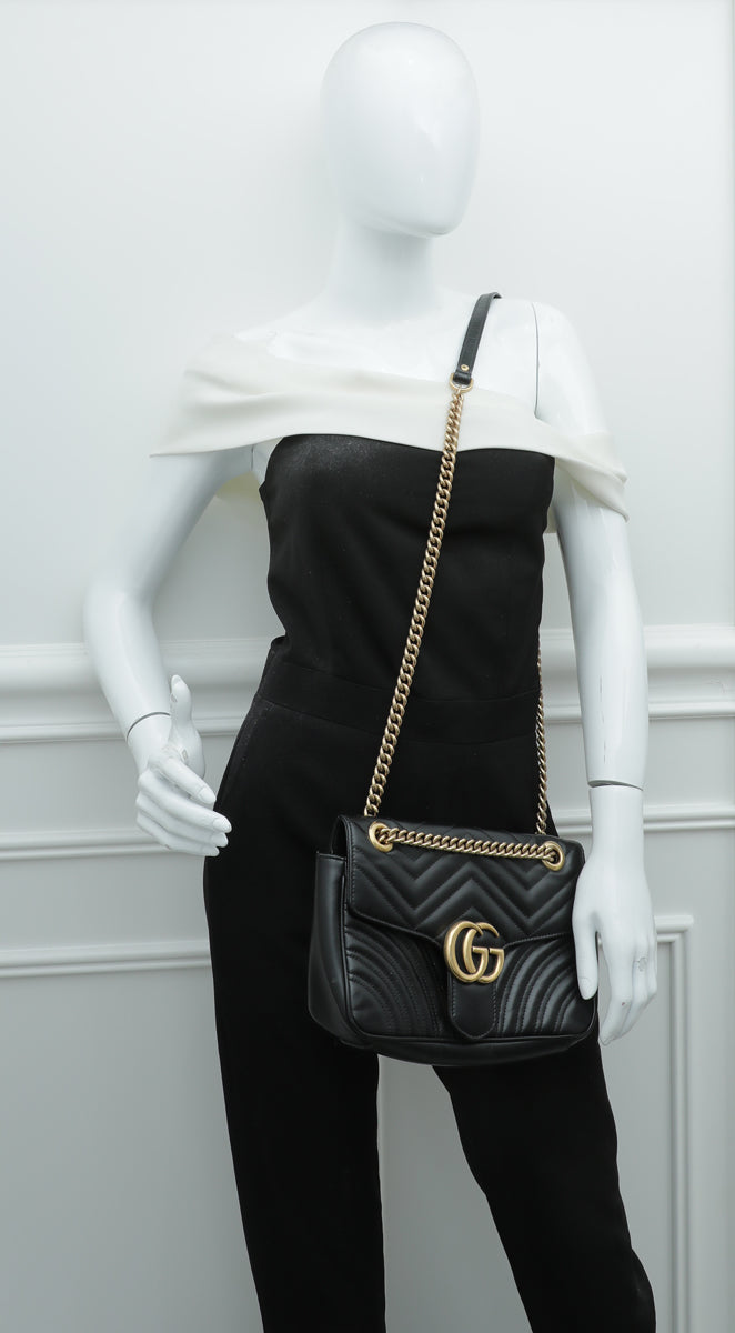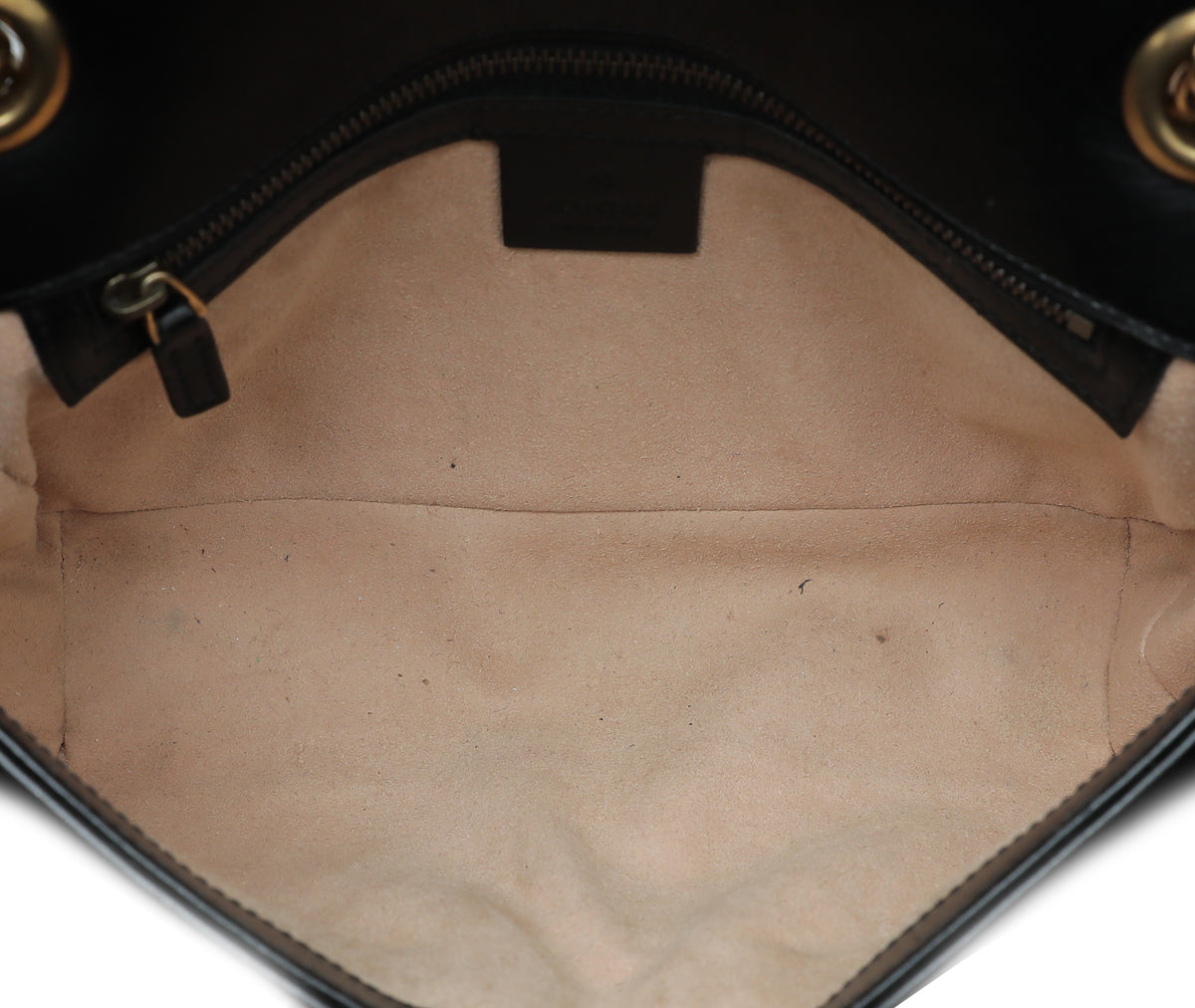 مادة : جلد Matelassé Chevron الأسود مع القلب على الظهر ومزدوج g