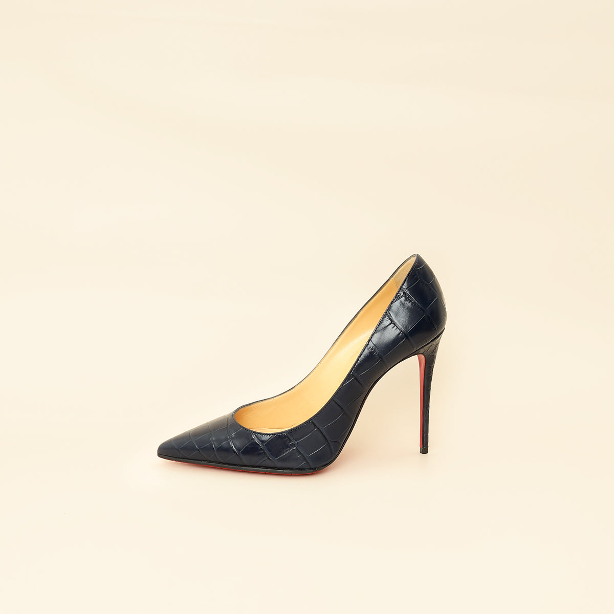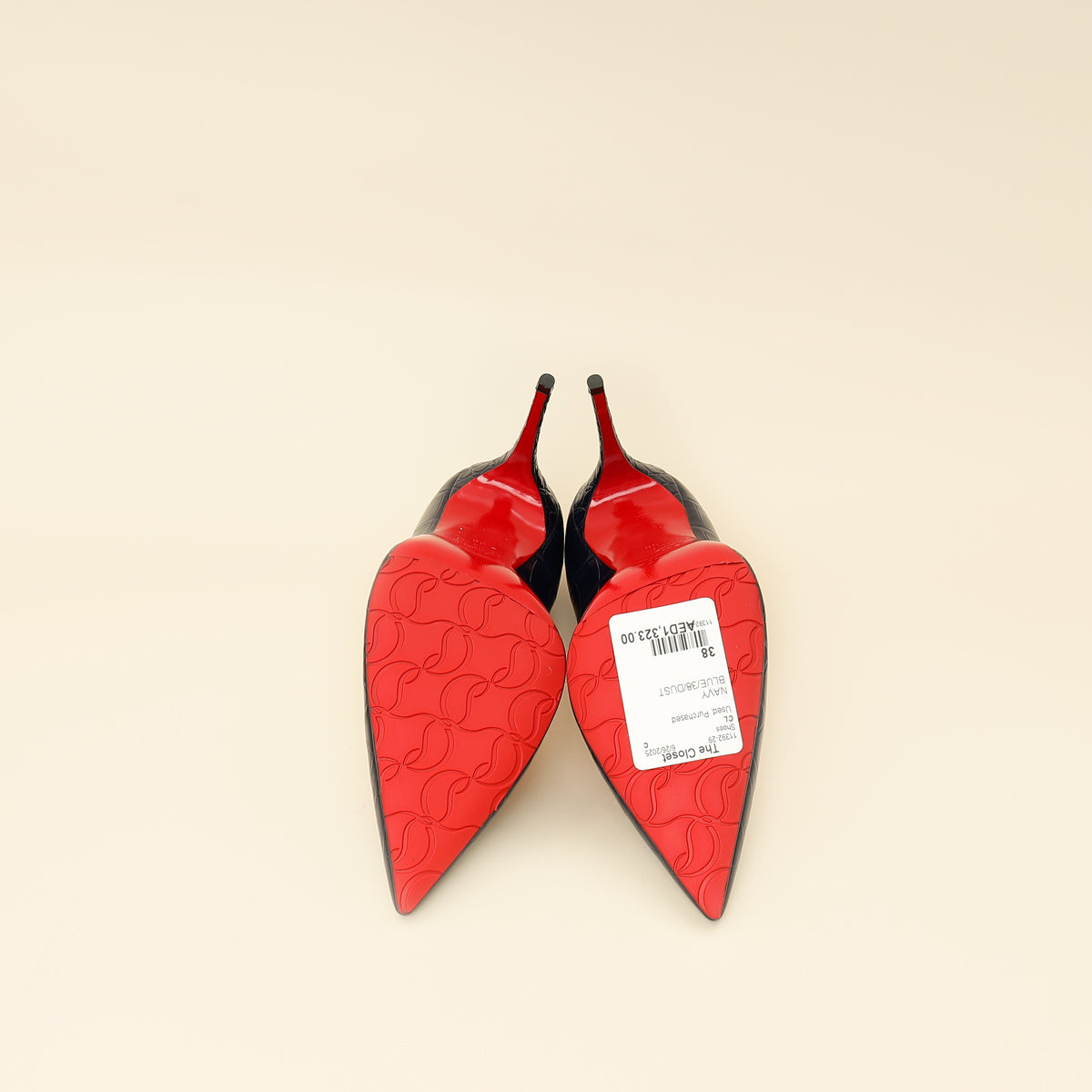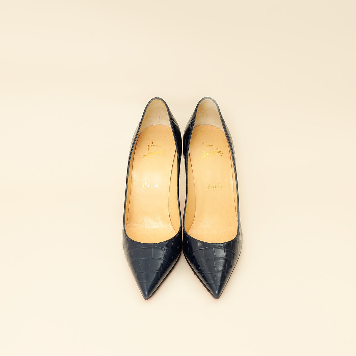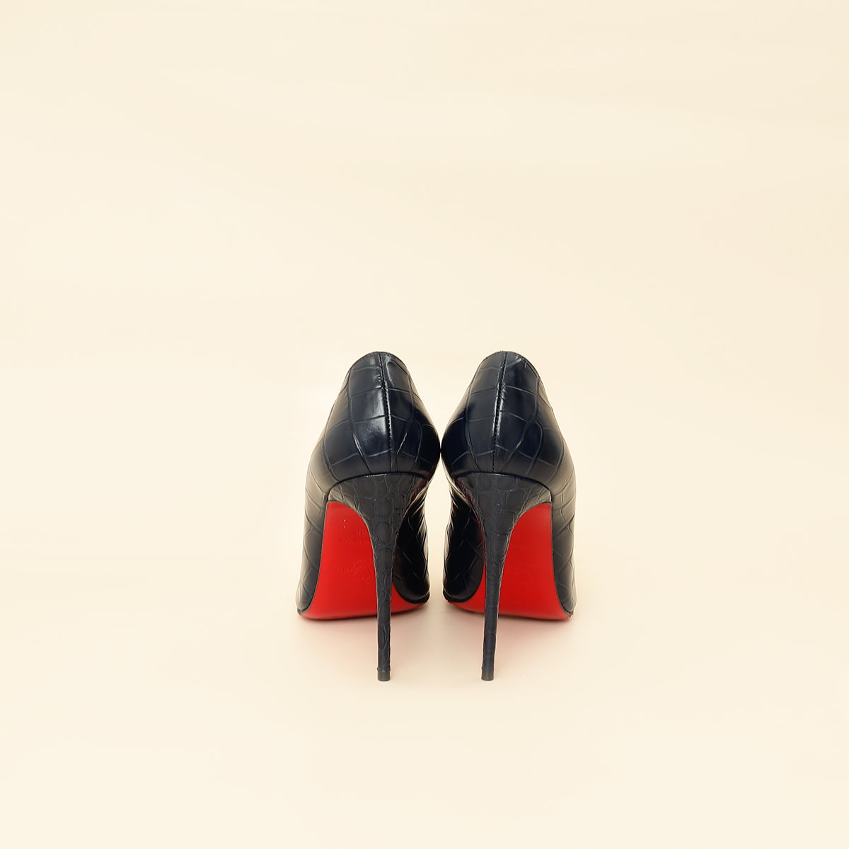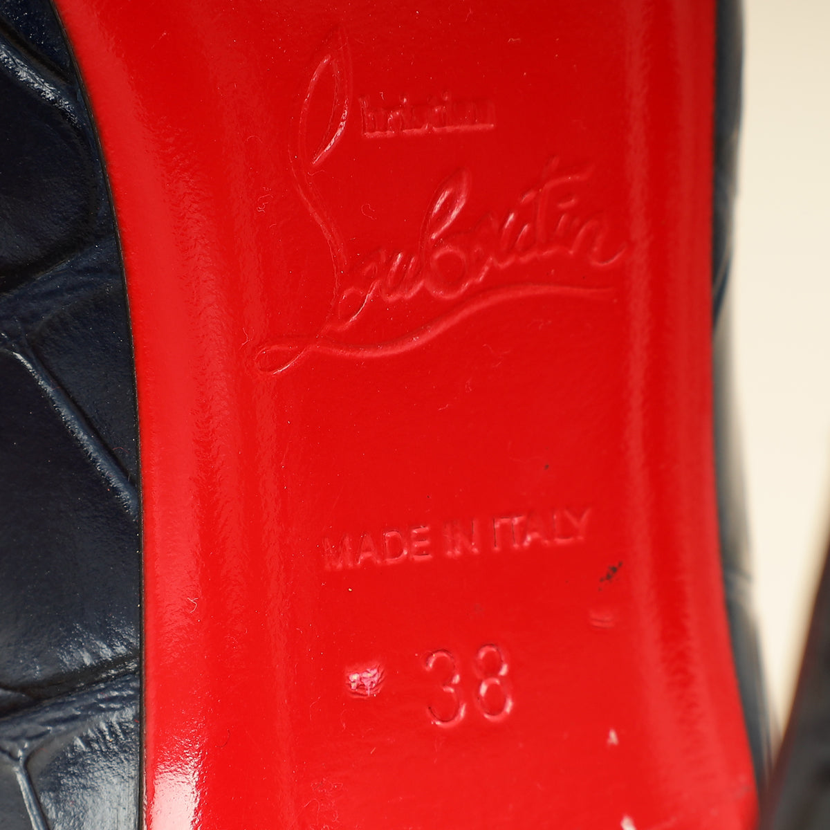 Christian Louboutin Navy Blue Croco-Embossed Kate 110mm Pump 38