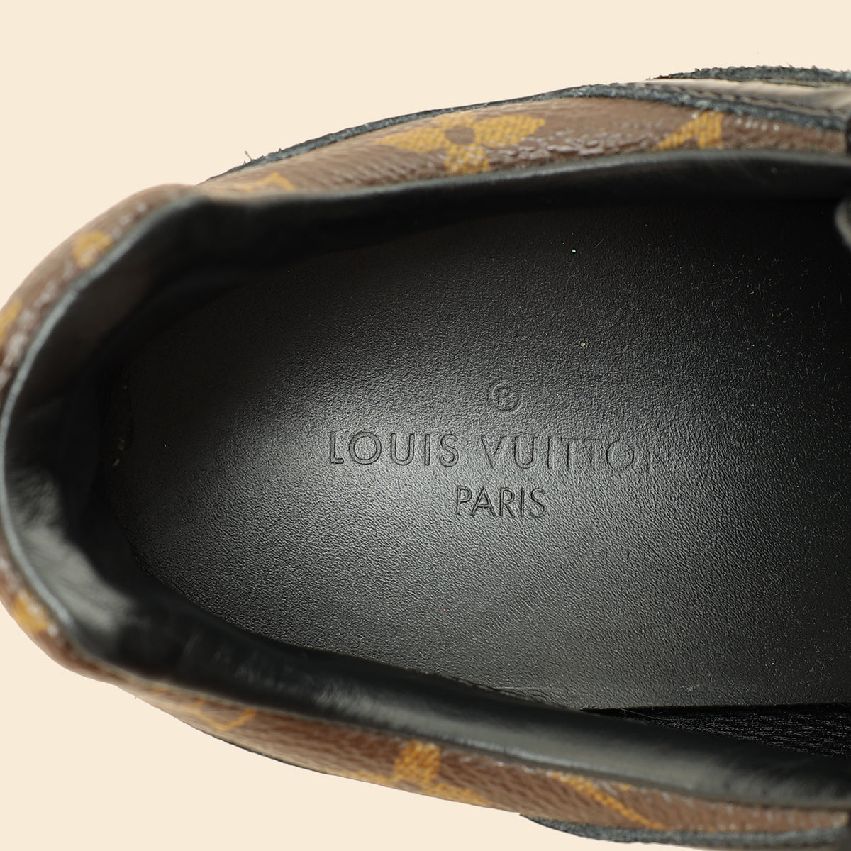 Material: Monogram Coated Canvas and Black Mesh, Suede and Patent Leather Trim