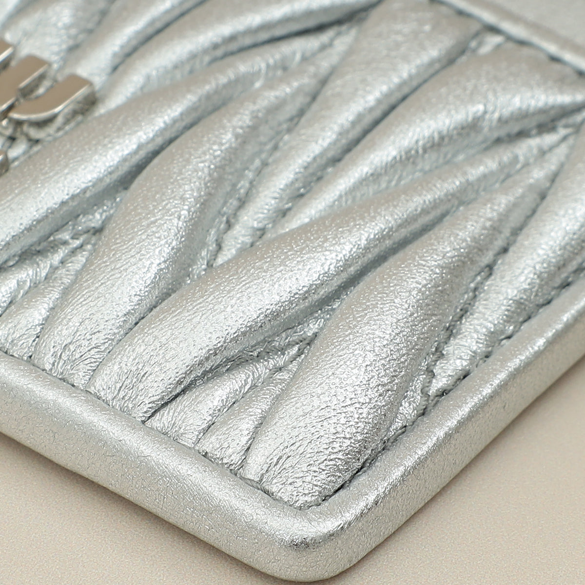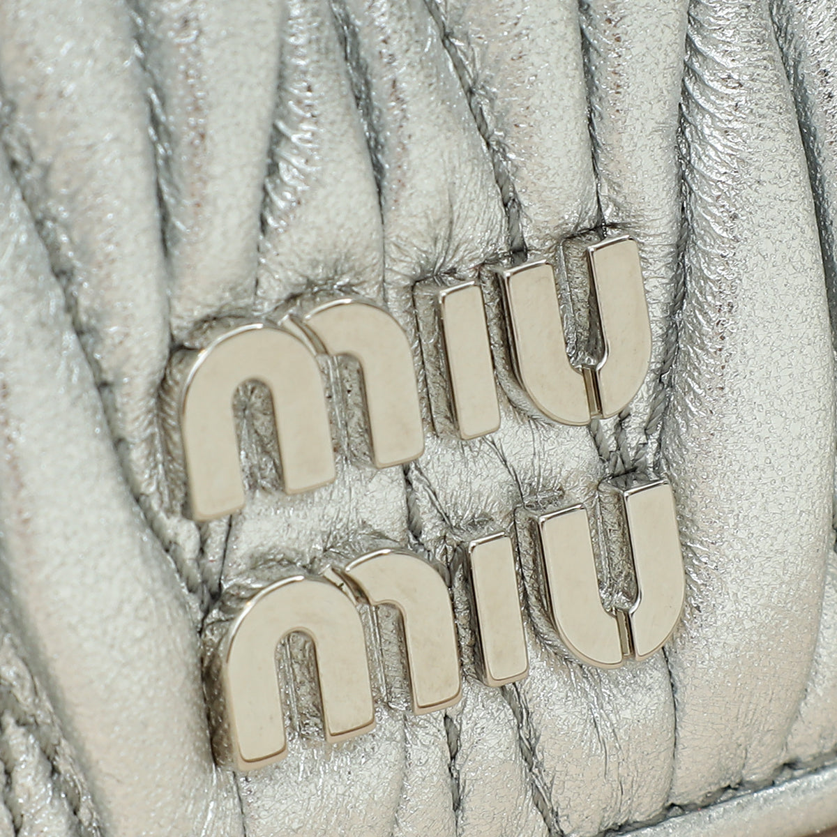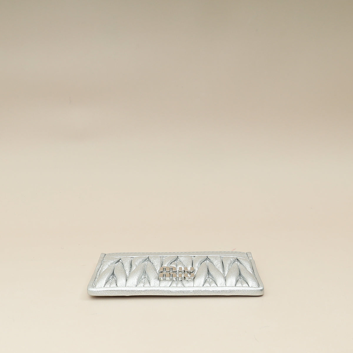 Miu Miu Metallic Silver Matelassé Nappa Card Holder