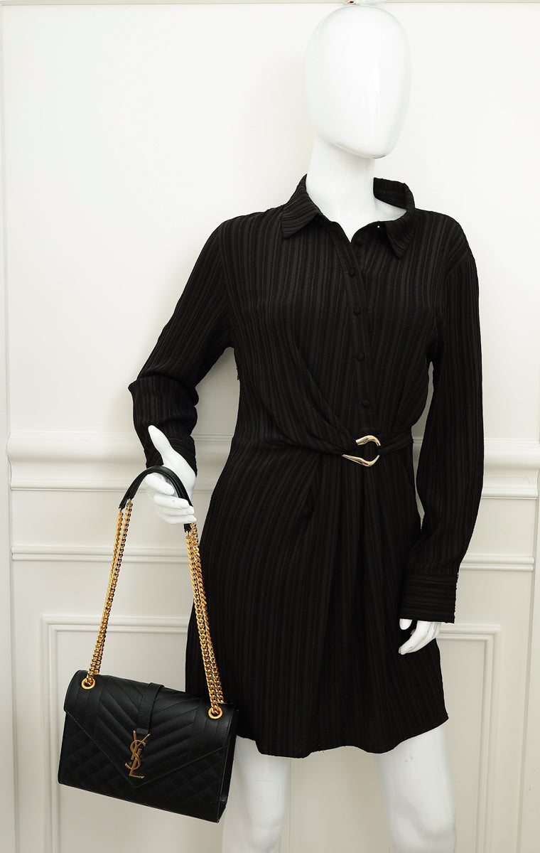 YSL Black Mix Quilted Envelope Medium Shoulder Bag