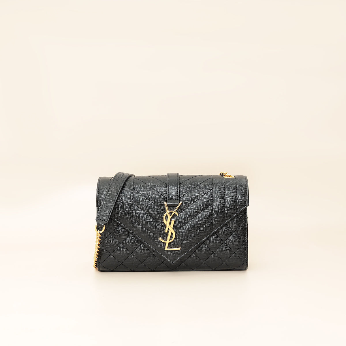 YSL Black Mix Quilted Envelope Small Shoulder Bag