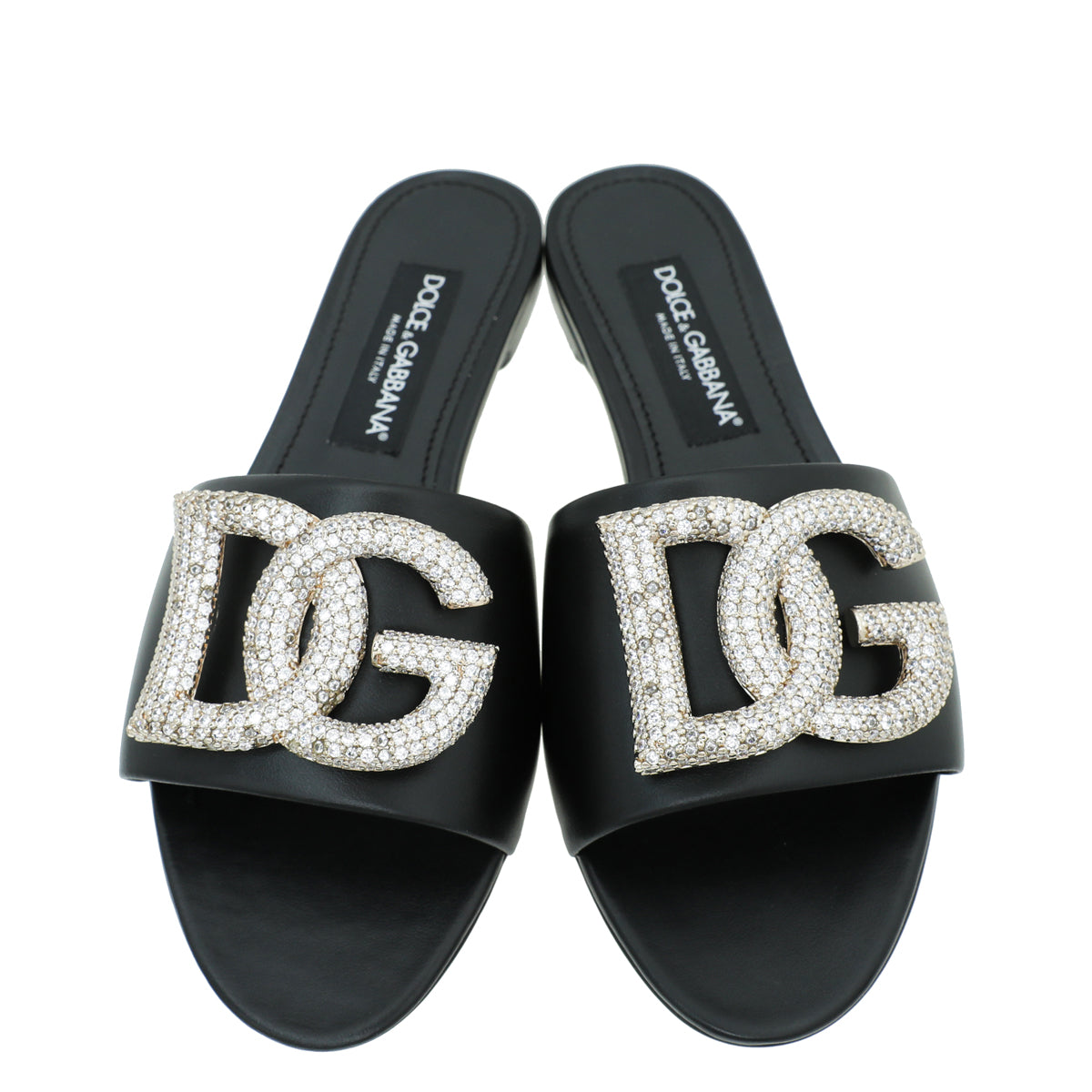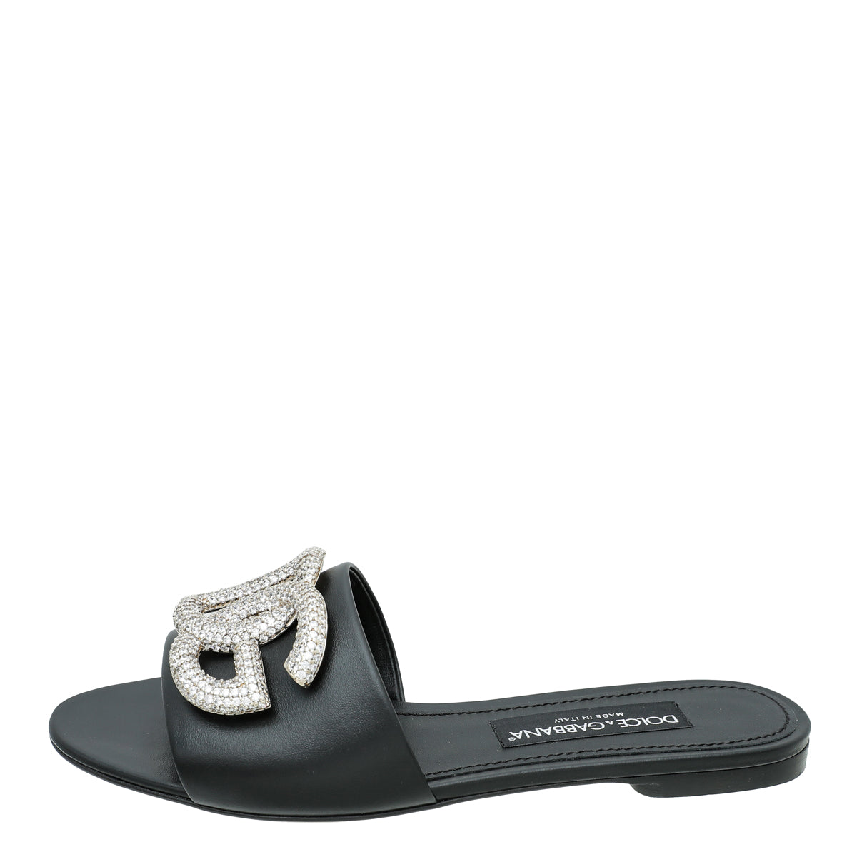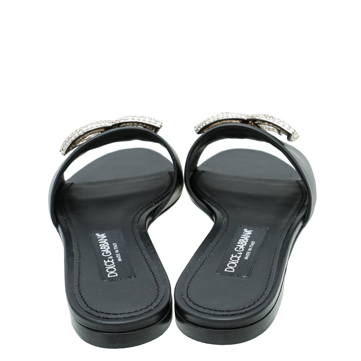 Dolce & Gabbana Black DG Crystal Logo Slide Sandal 39