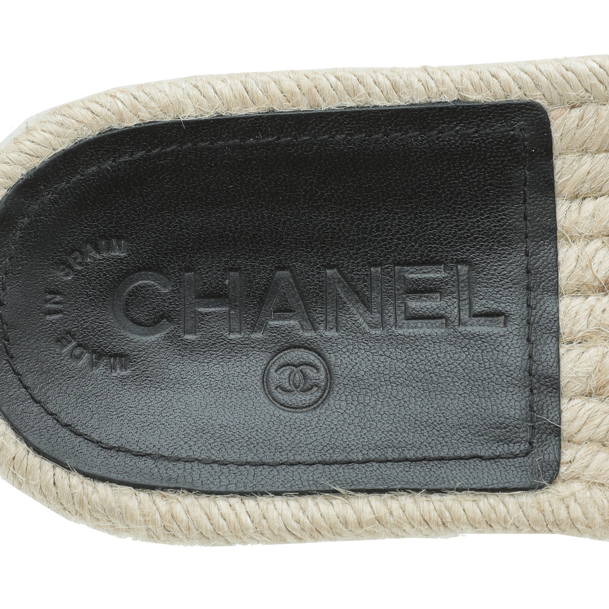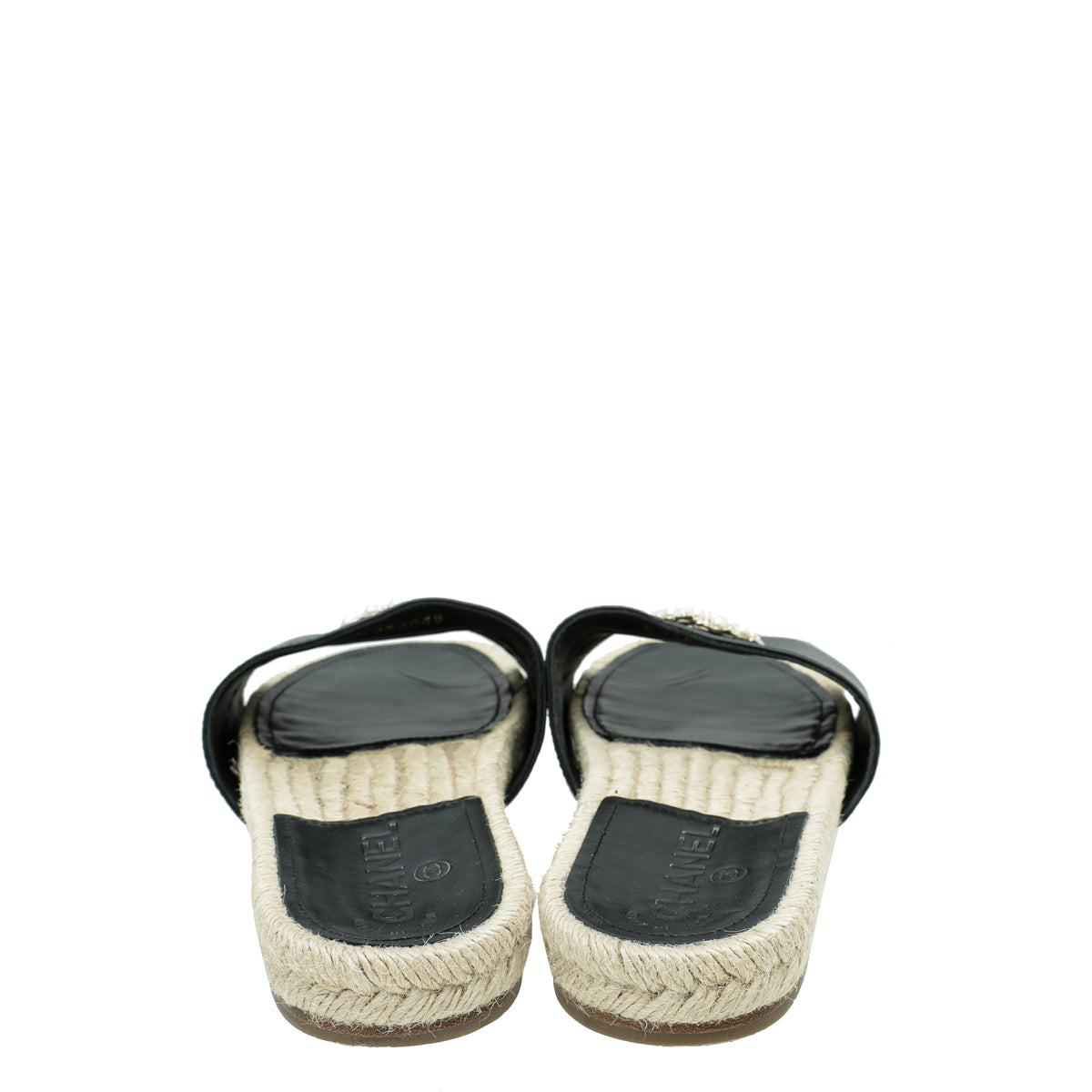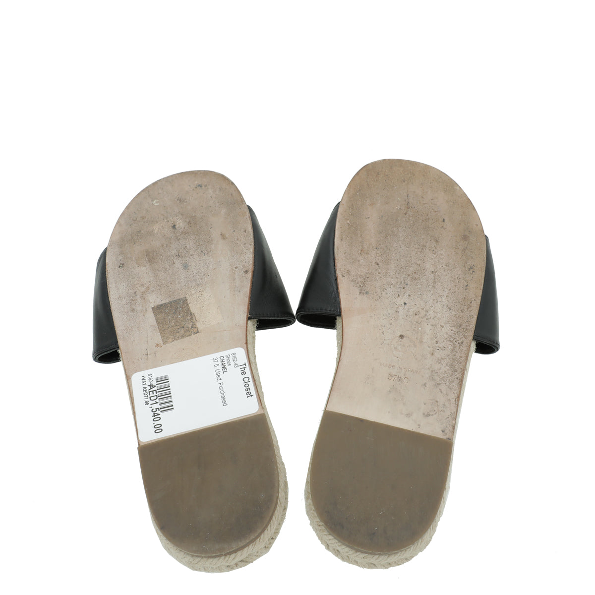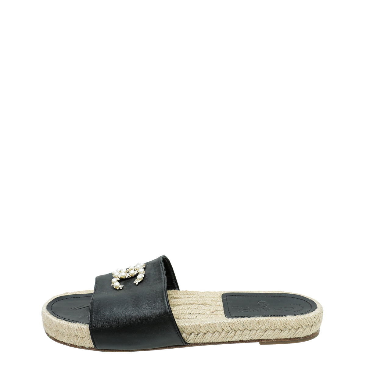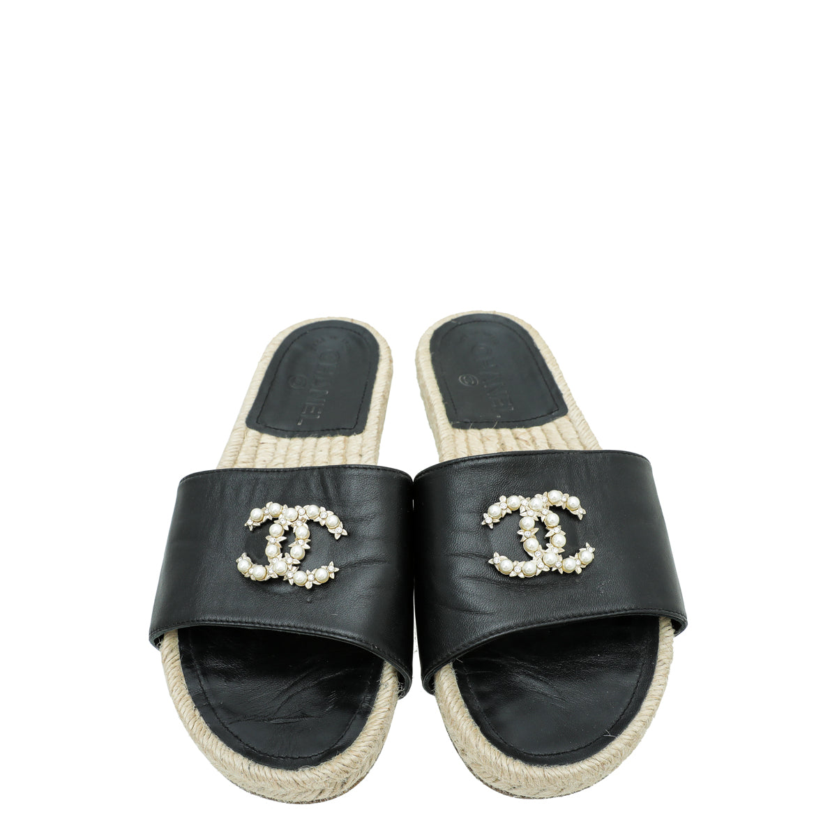 شانيل أسود CC Pearl Studs قسيمة Espadrille على الصنادل 37.5