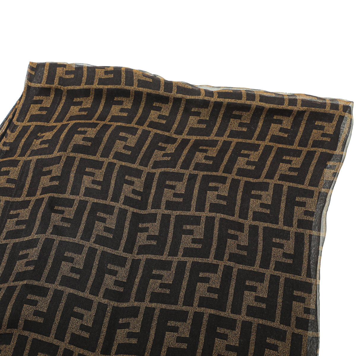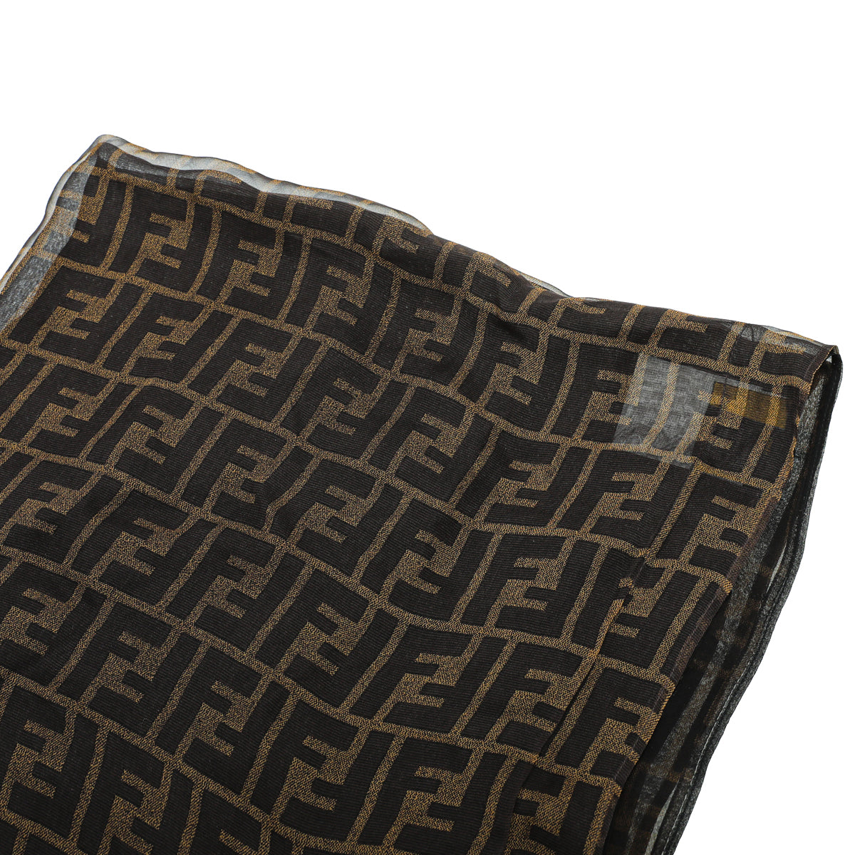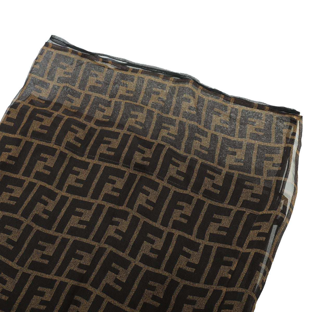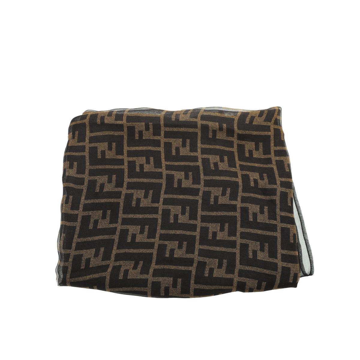 Fendi Brown FF Fendi Logo Silk Scarf-Fendi-THE CLOSET