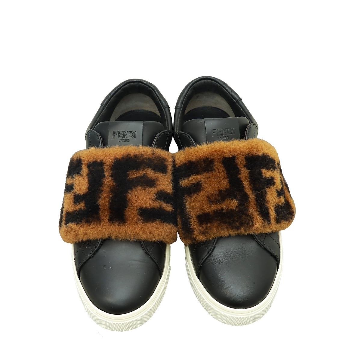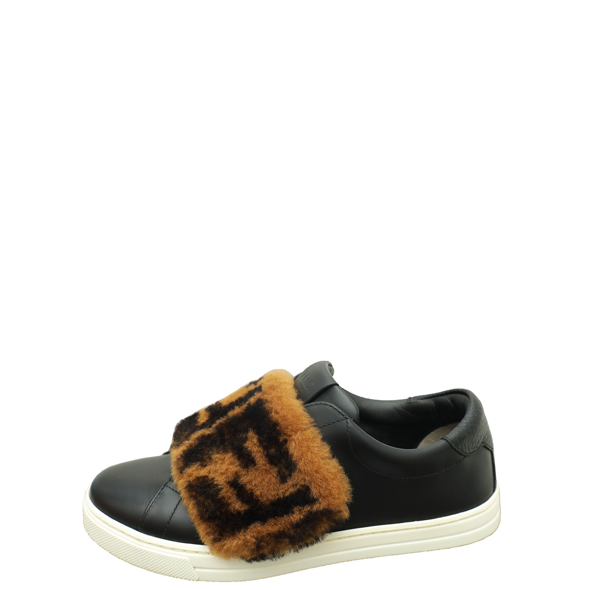 حذاء فندي ثنائي اللون زوكا من جلد العجل والشيرلينغ سهل الارتداء 36