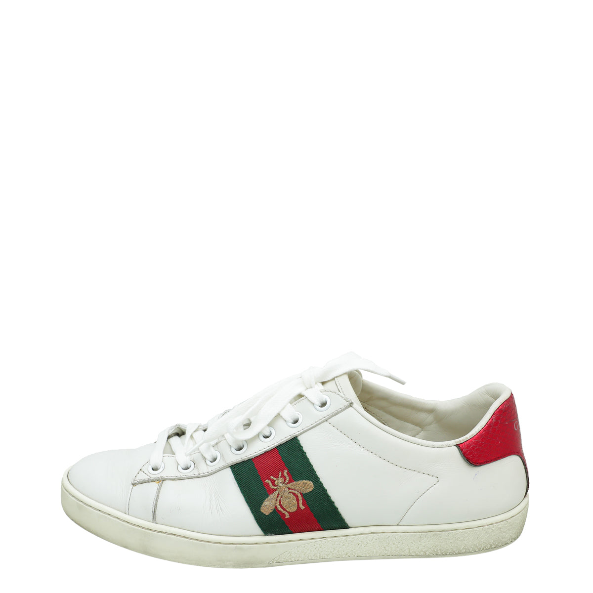 Gucci White Ace Bee Bee Sumproidered Sneaker 38
