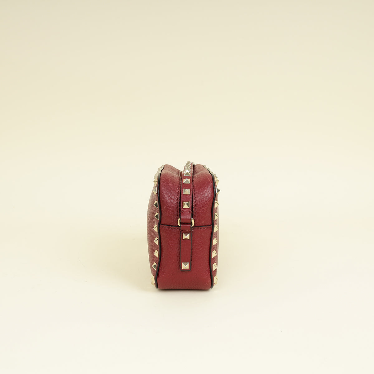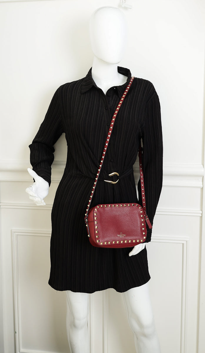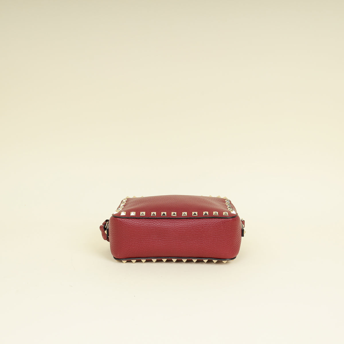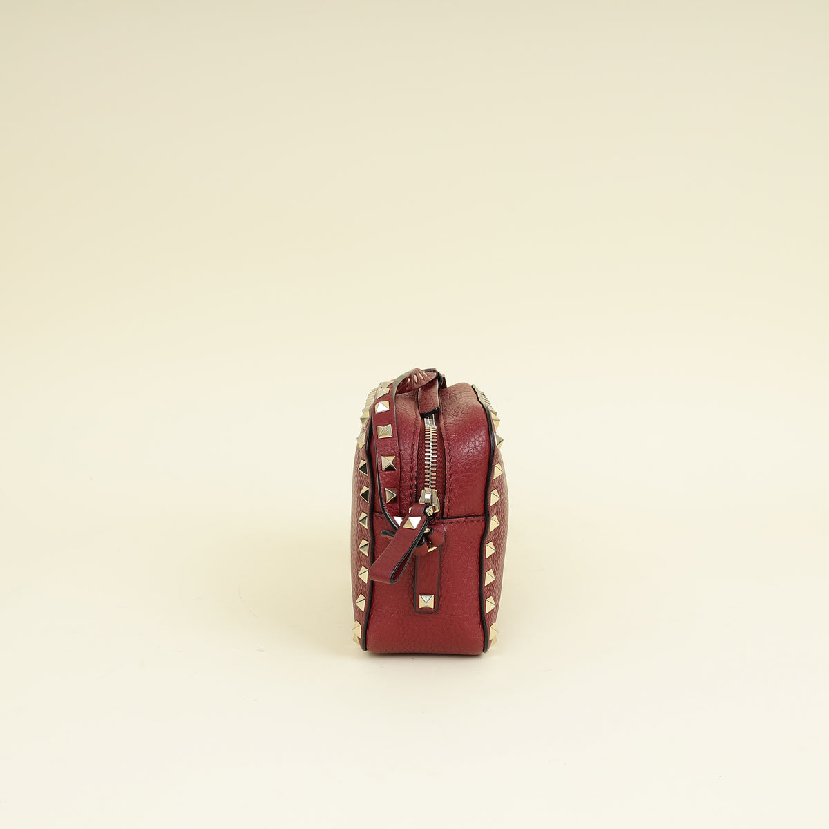 Valentino Burgundy Rockstud Camera Crossbody Bag