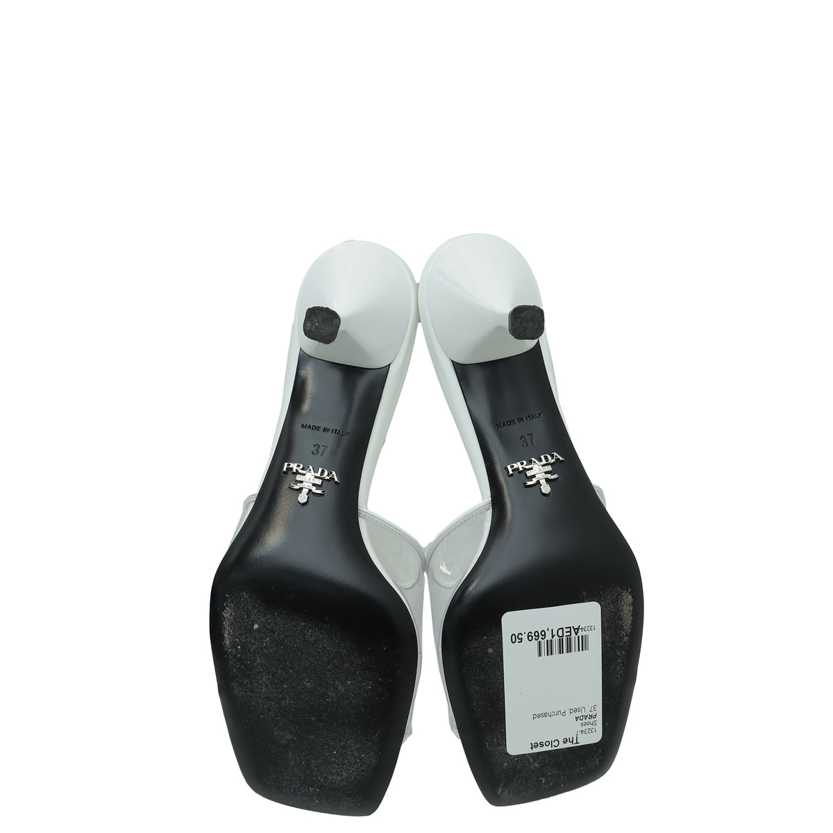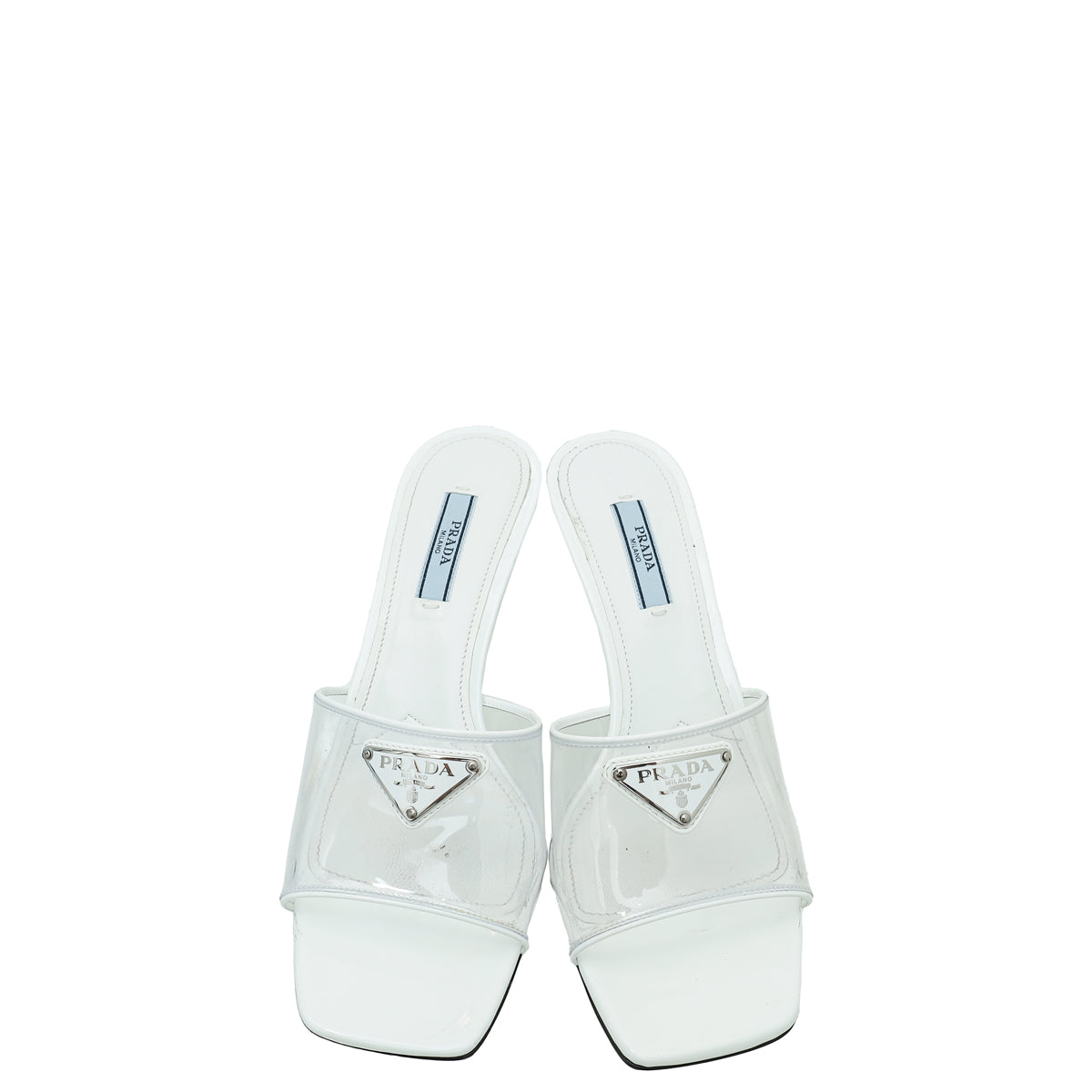 حذاء برادا سلايد بي في سي شفاف بشعار أبيض 37