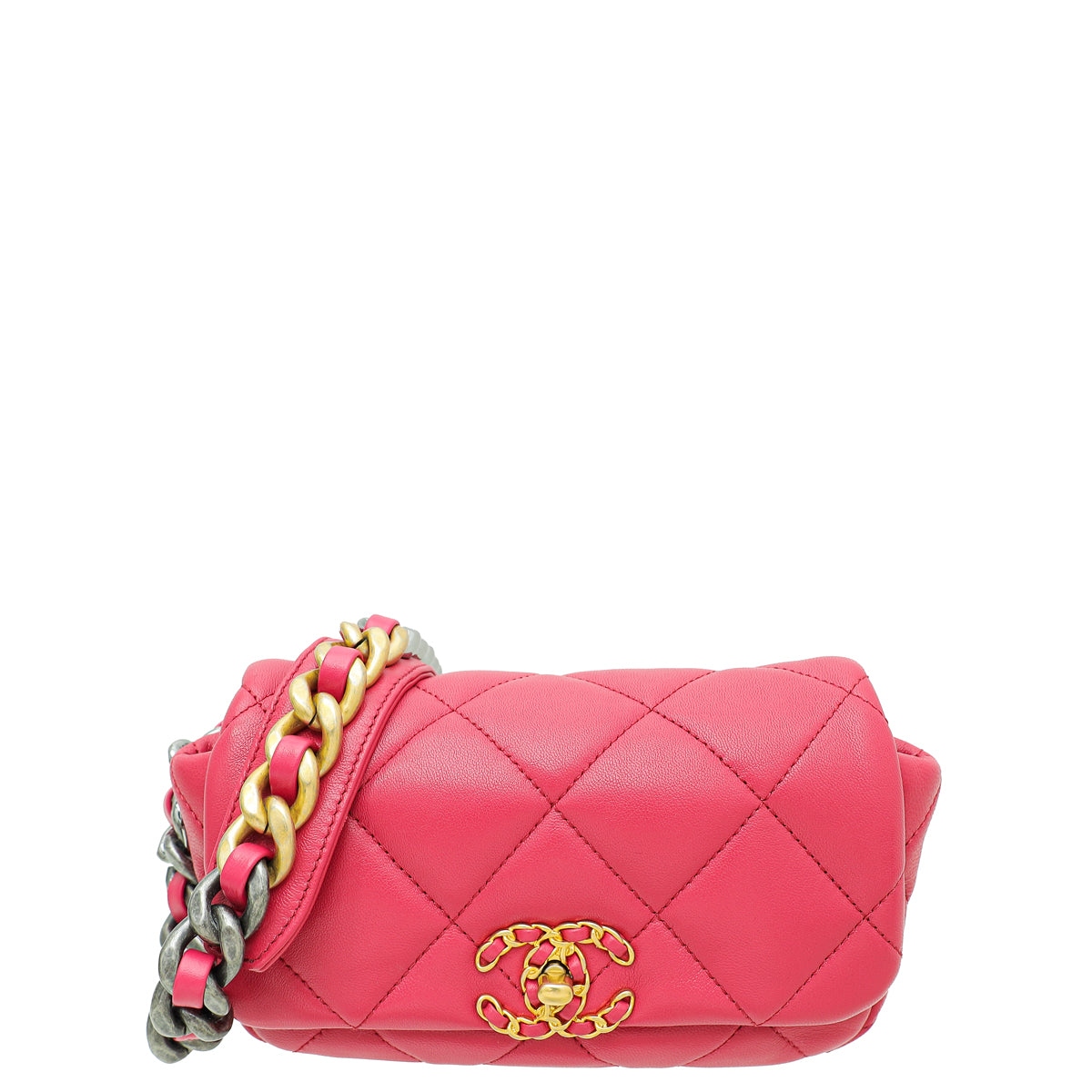 حقيبة الخصر شانيل الفوشيه الوردي CC 19 سلسلة الخصر