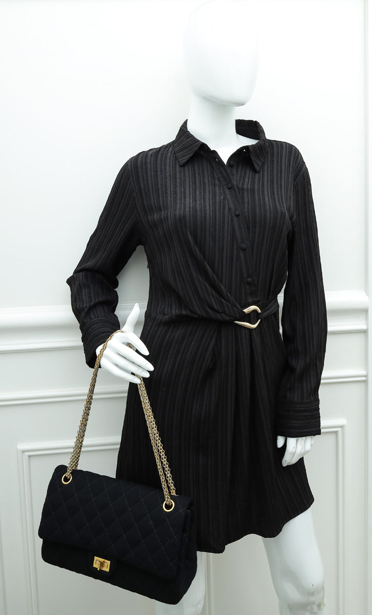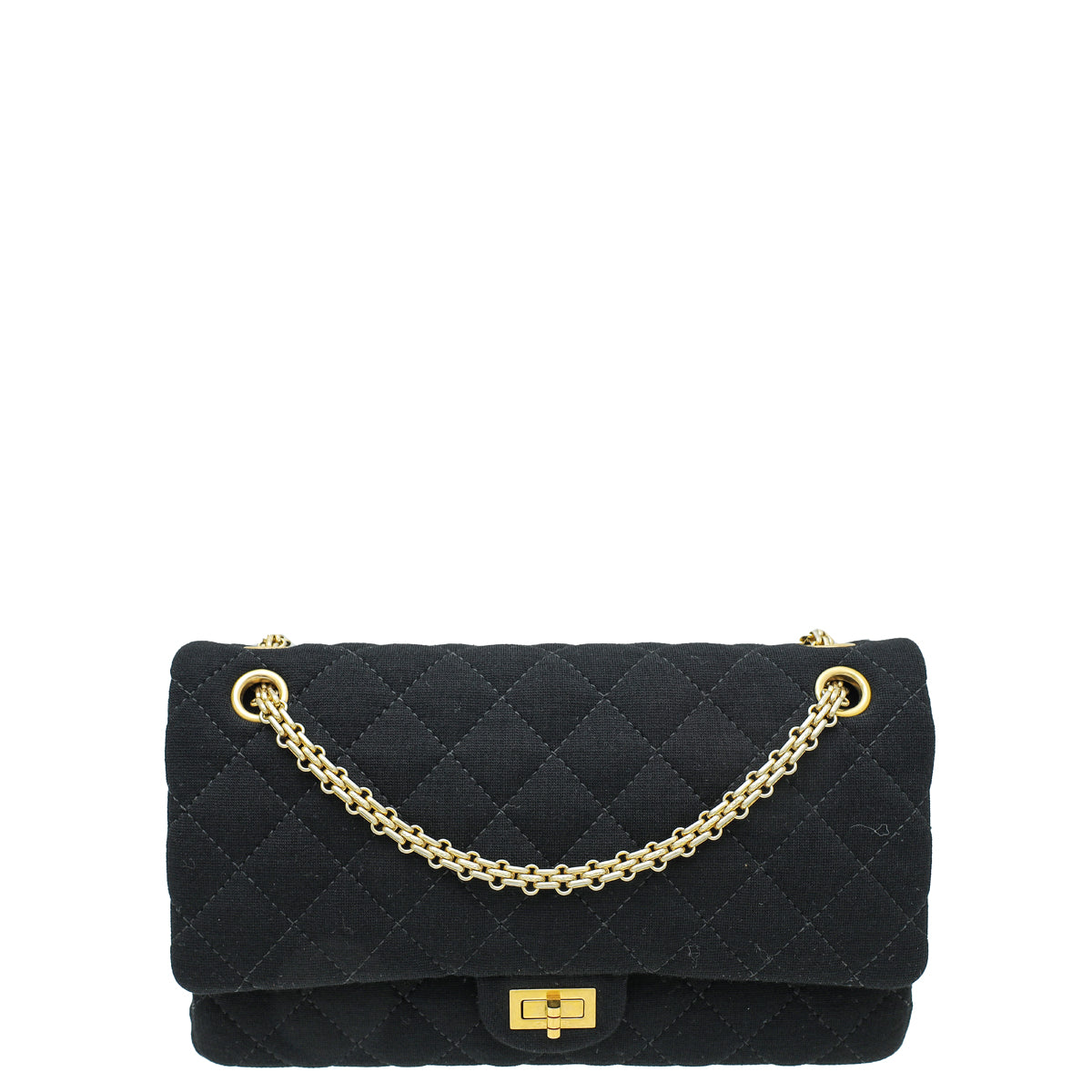 حقيبة شانيل بلاك جيرسي ريسو 2.55 مزدوجة الغطاء 225 حقيبة
