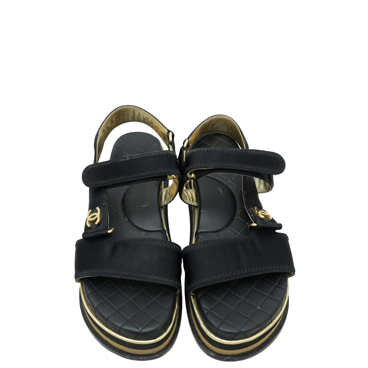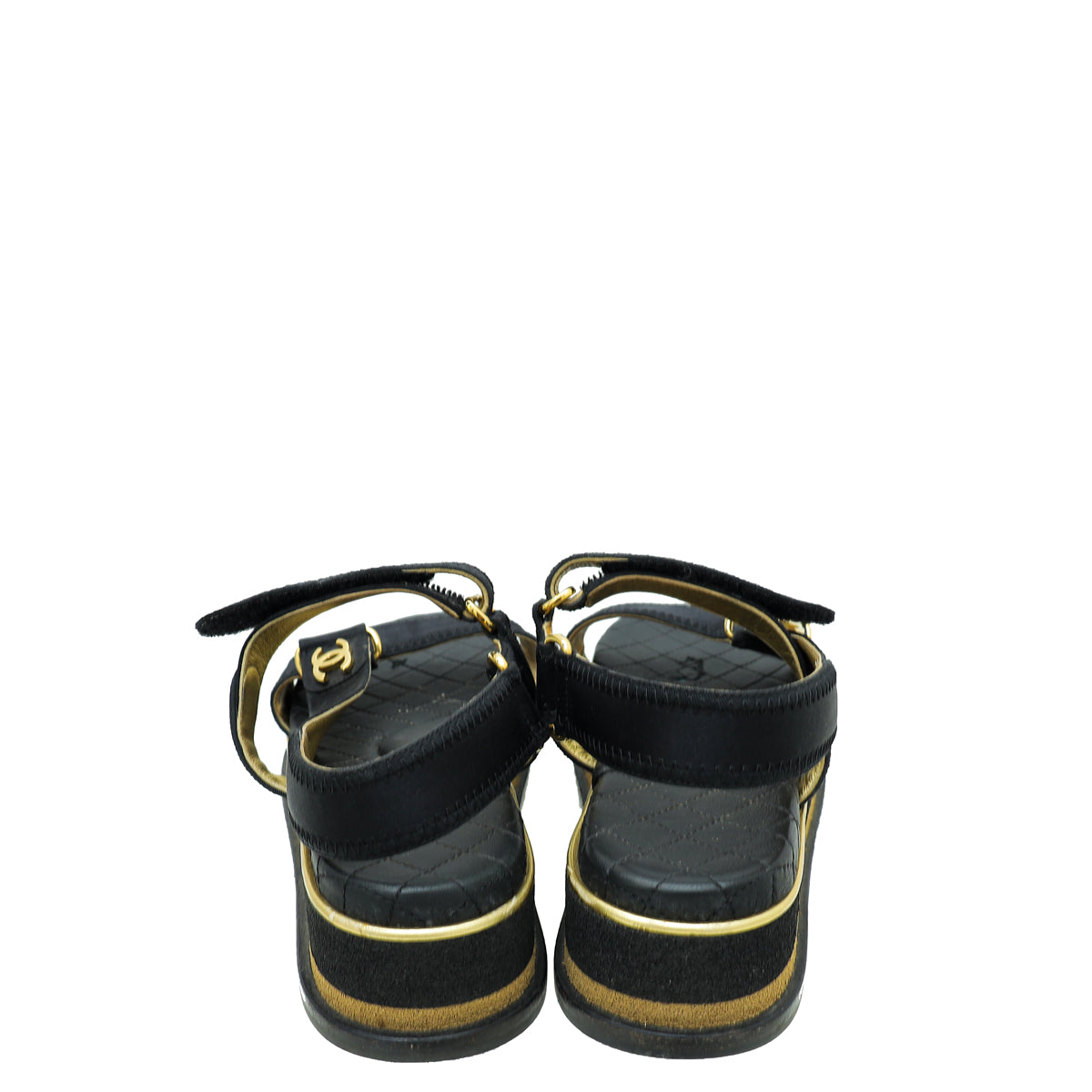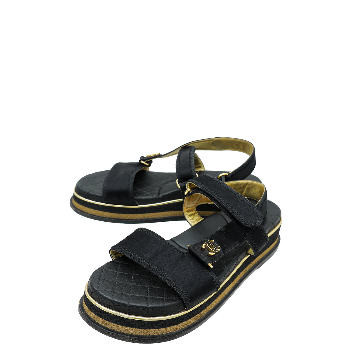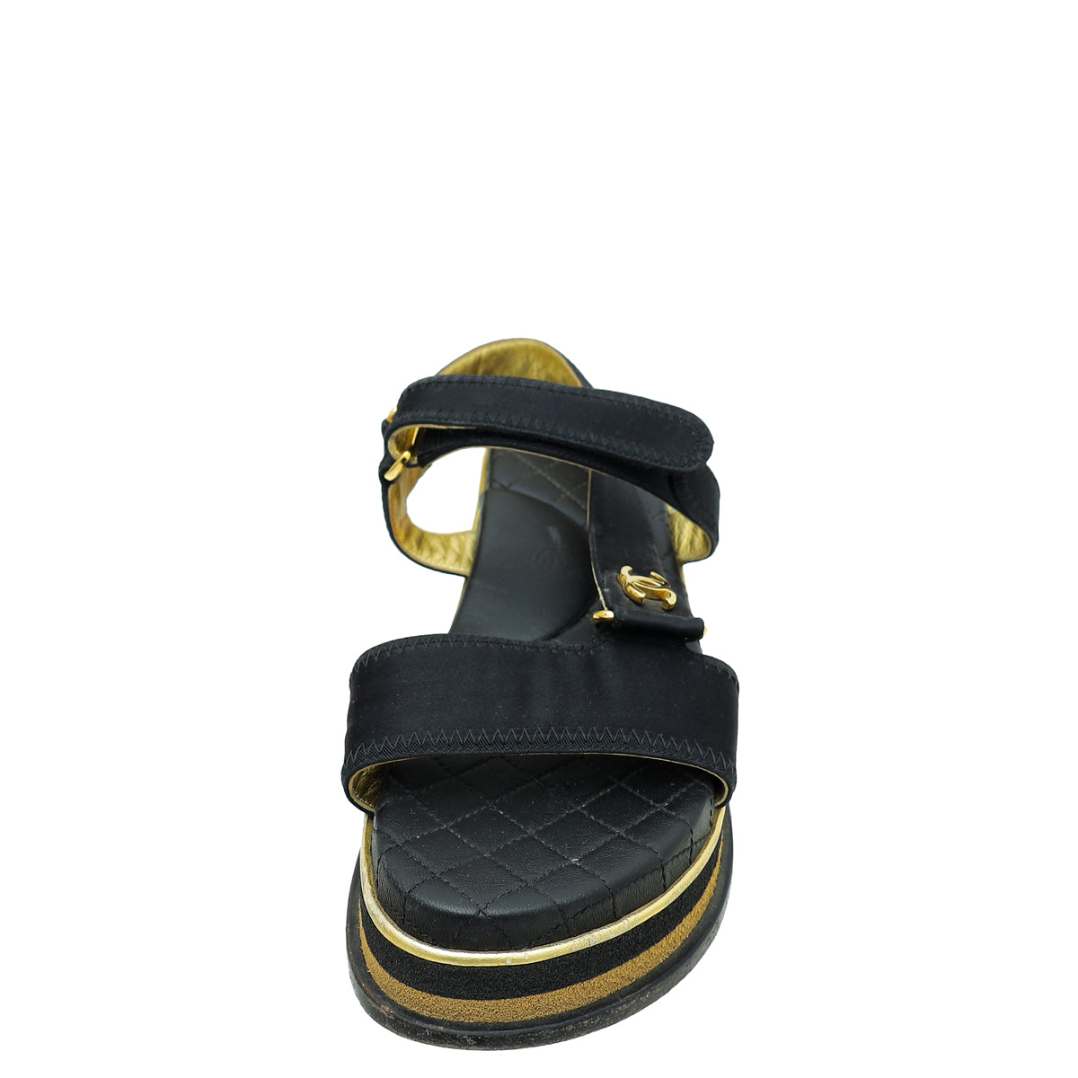 صندل مسطح بشريط فيلكرو أسود CC من شانيل 38.5