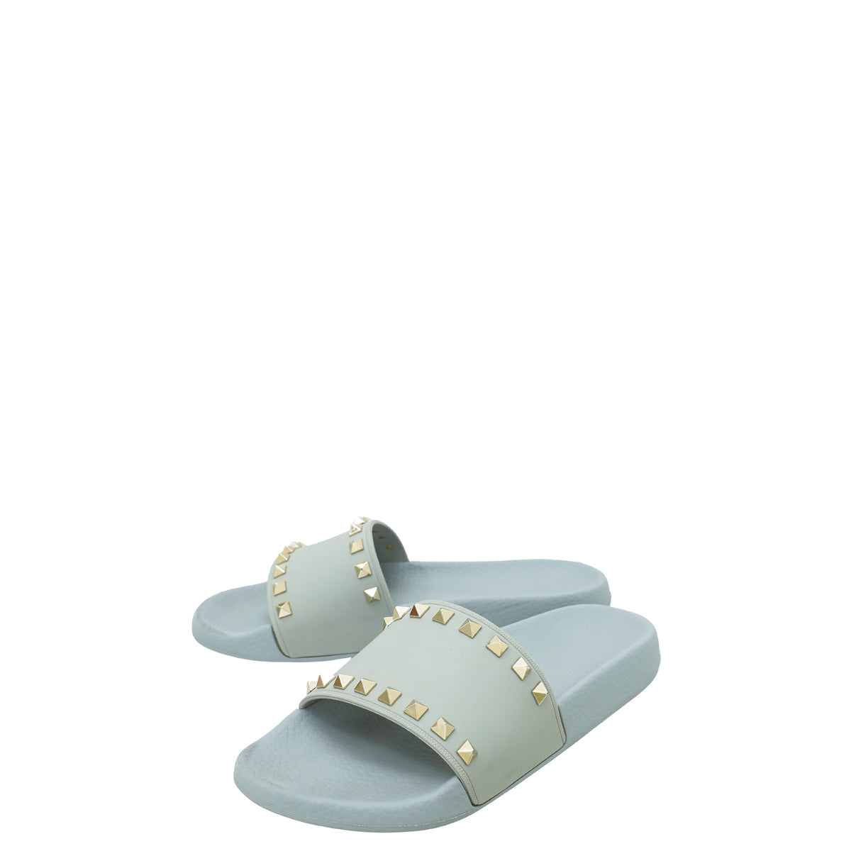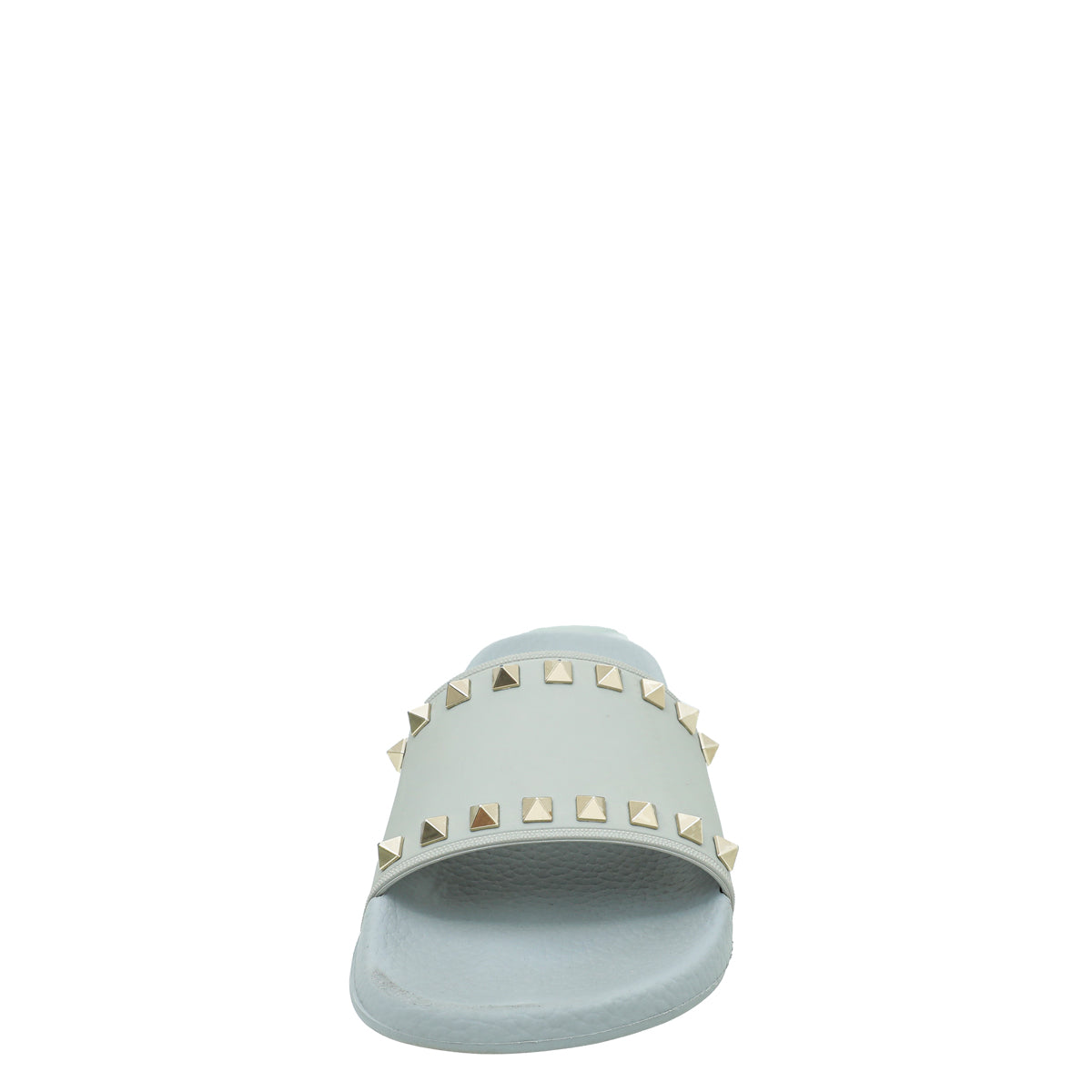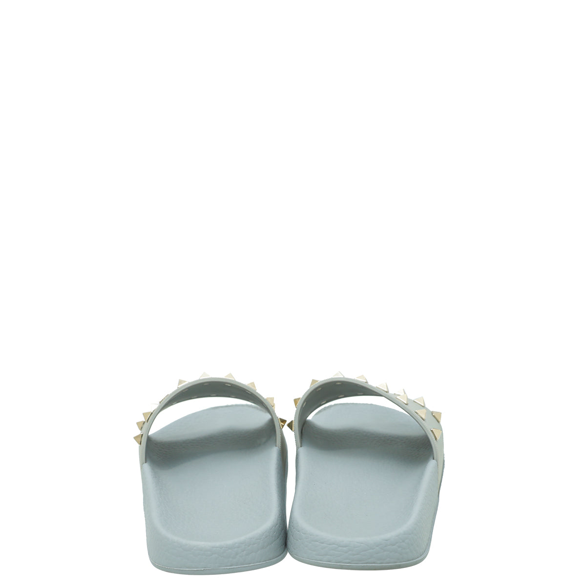 Valentino Pale Blue Rockstud Rubber Slider Sandal 38