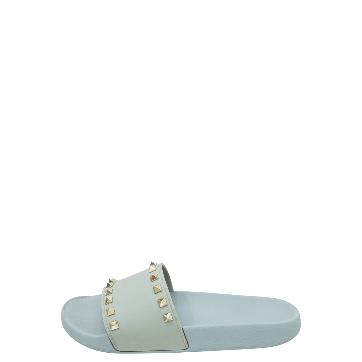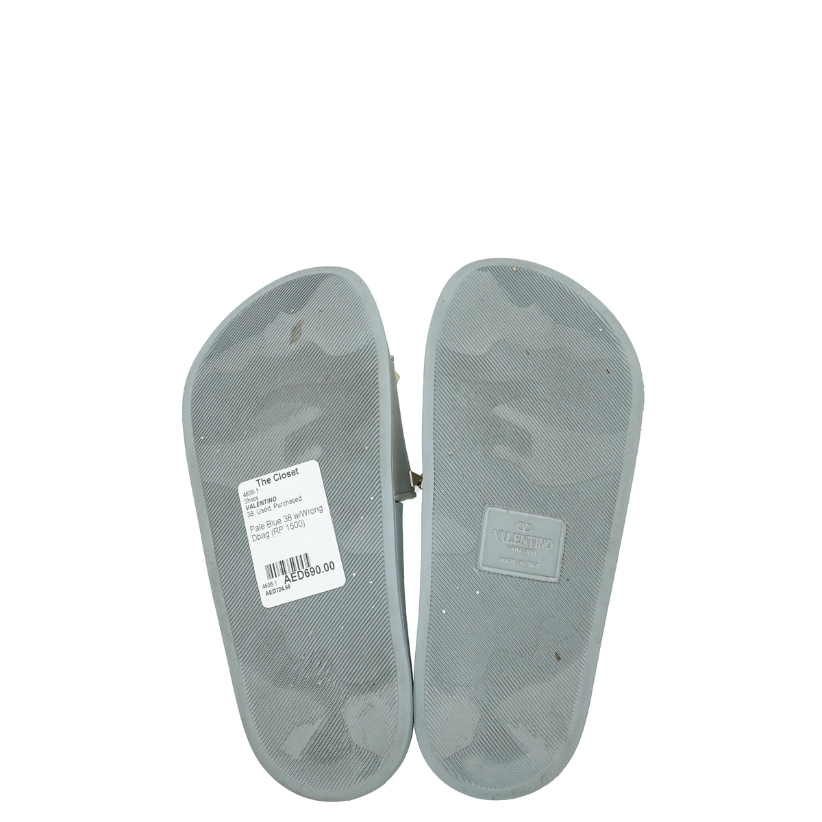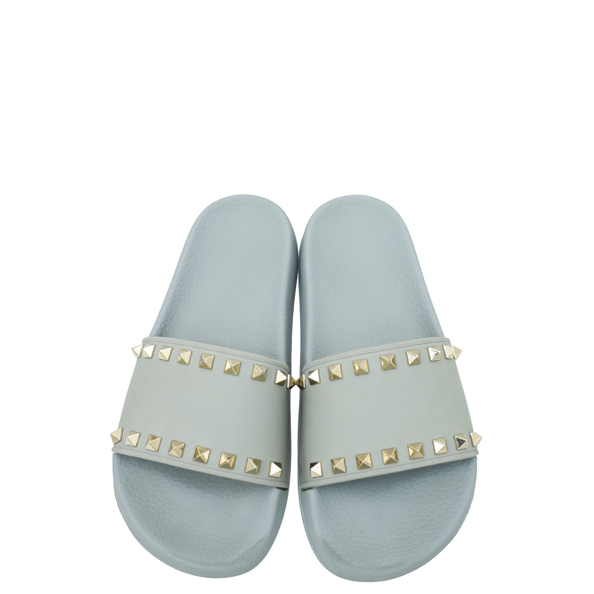 Valentino Pale Blue Rockstud Rubber Slider Sandal 38