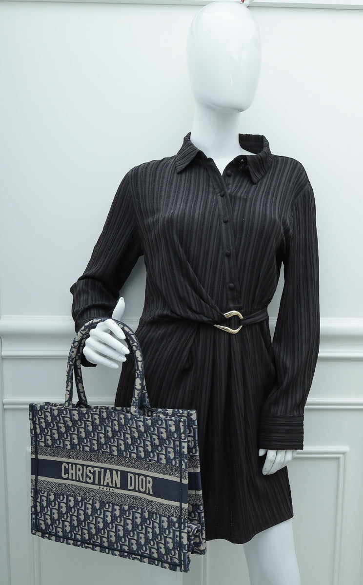 حقيبة كريستيان ديور باللون الأزرق الداكن المائل للكتاب متوسطة الحجم