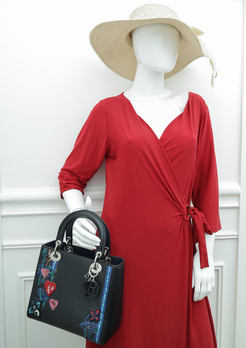 كرسي كريستيان ديور متعدد الألوان قلب ليدي ديور حقيبة متوسطة