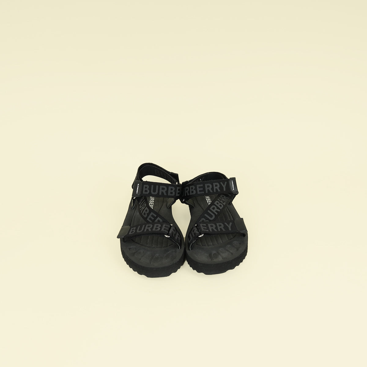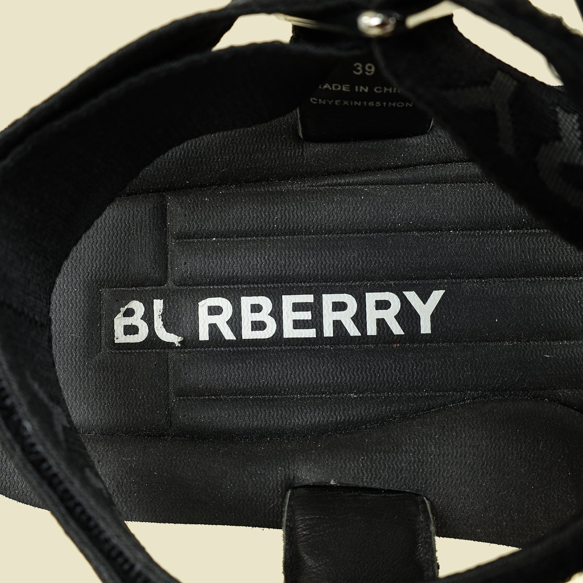 Burberry Black Patterson Velcro Flat Sandals 39