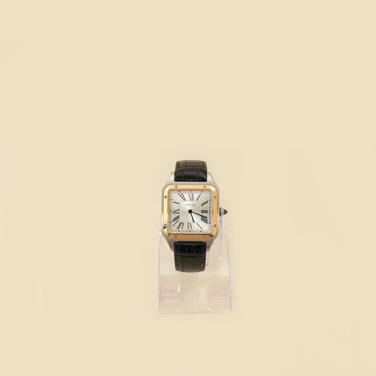 Cartier Stainless Steel Rose Gold Santos-Dumont Quartz Watch Large Model