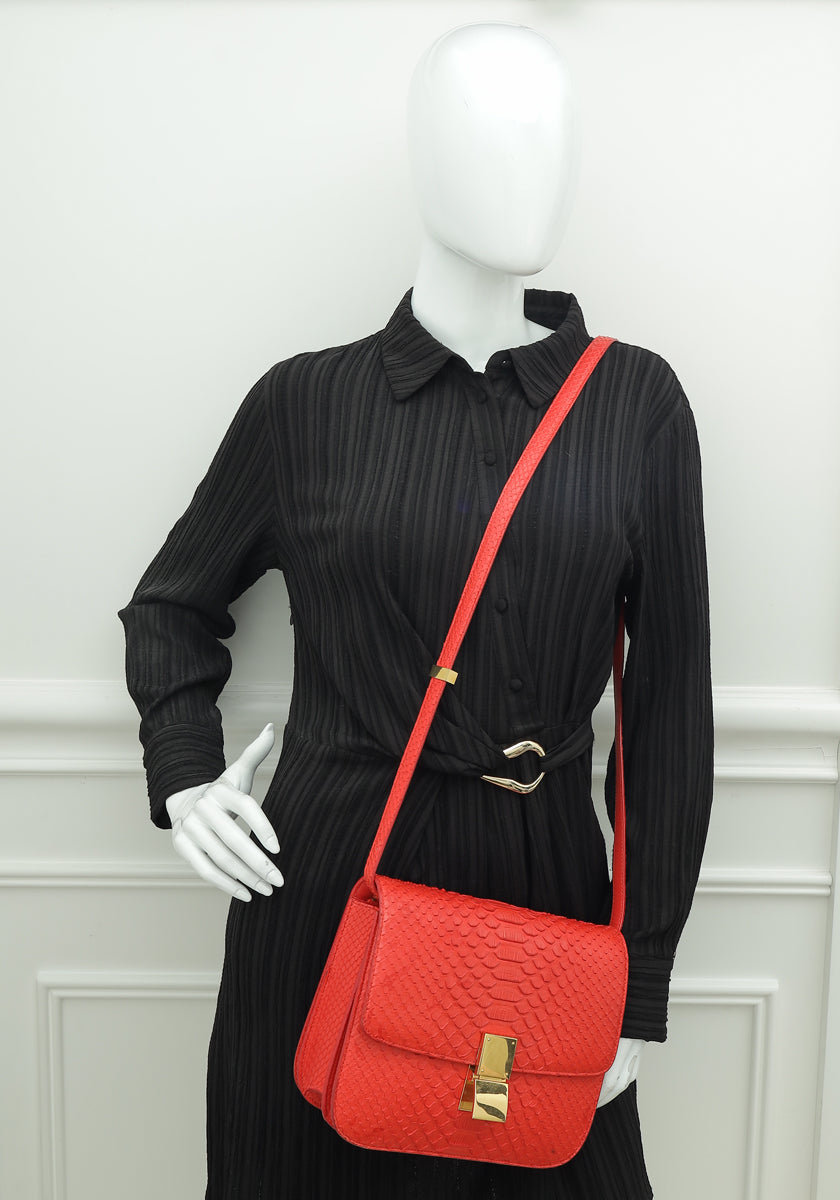 Celine Red Classic Box Python Medium Bag
