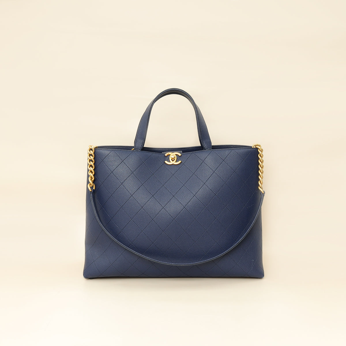Chanel Navy Blue CC Shopping Tote Bag-Chanel-THE CLOSET