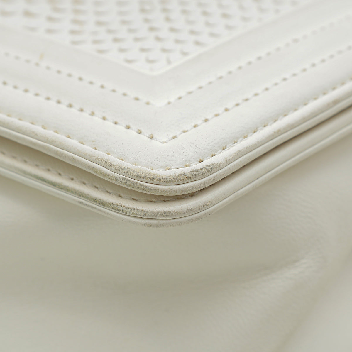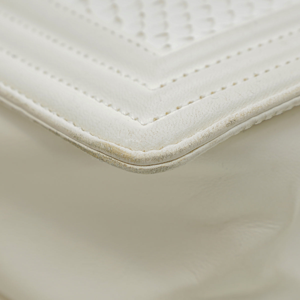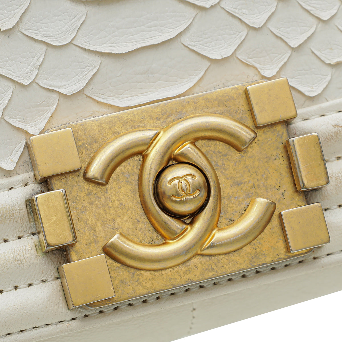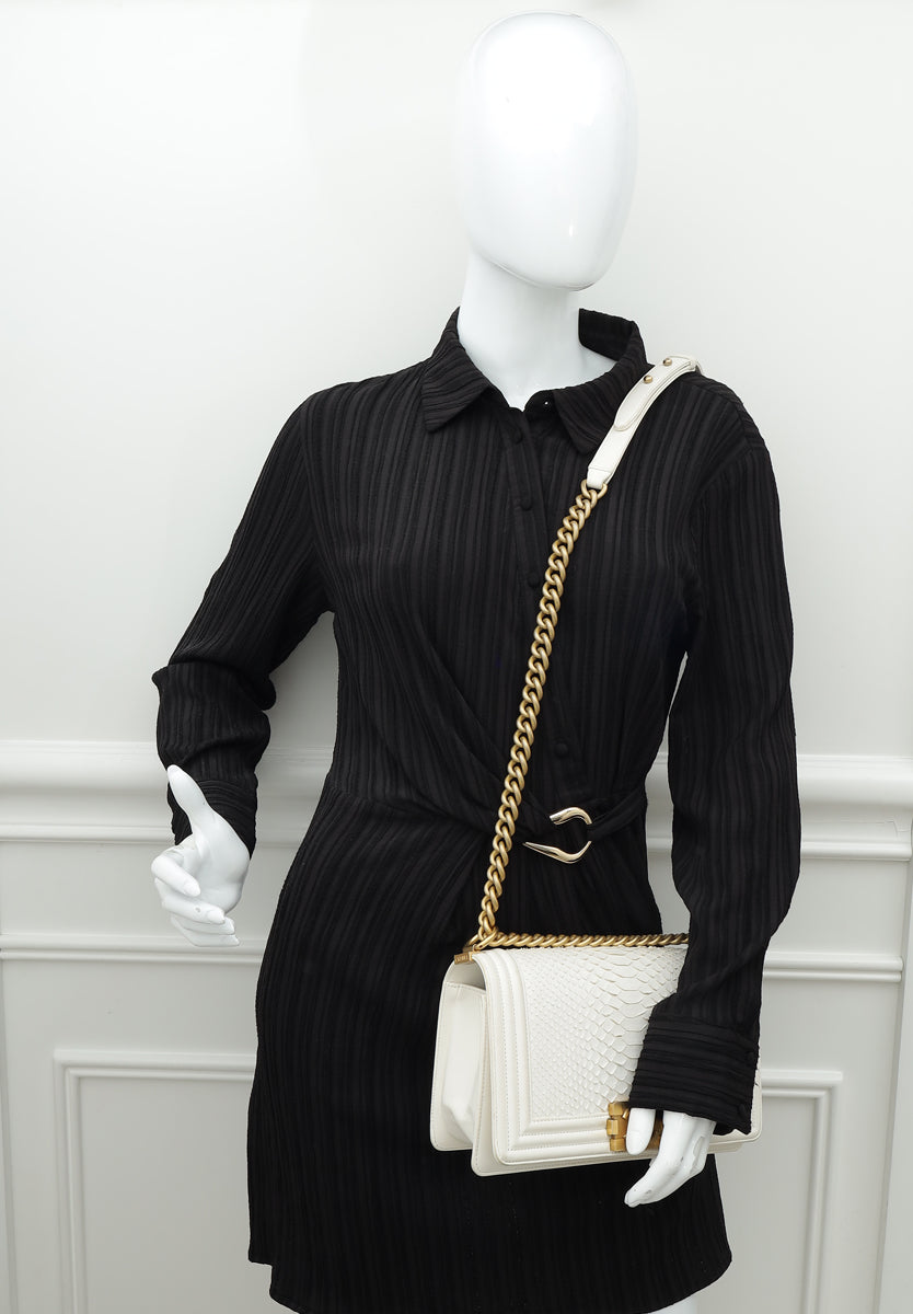 - Material: White Python Leather with Quilted Calf Leather Trim
