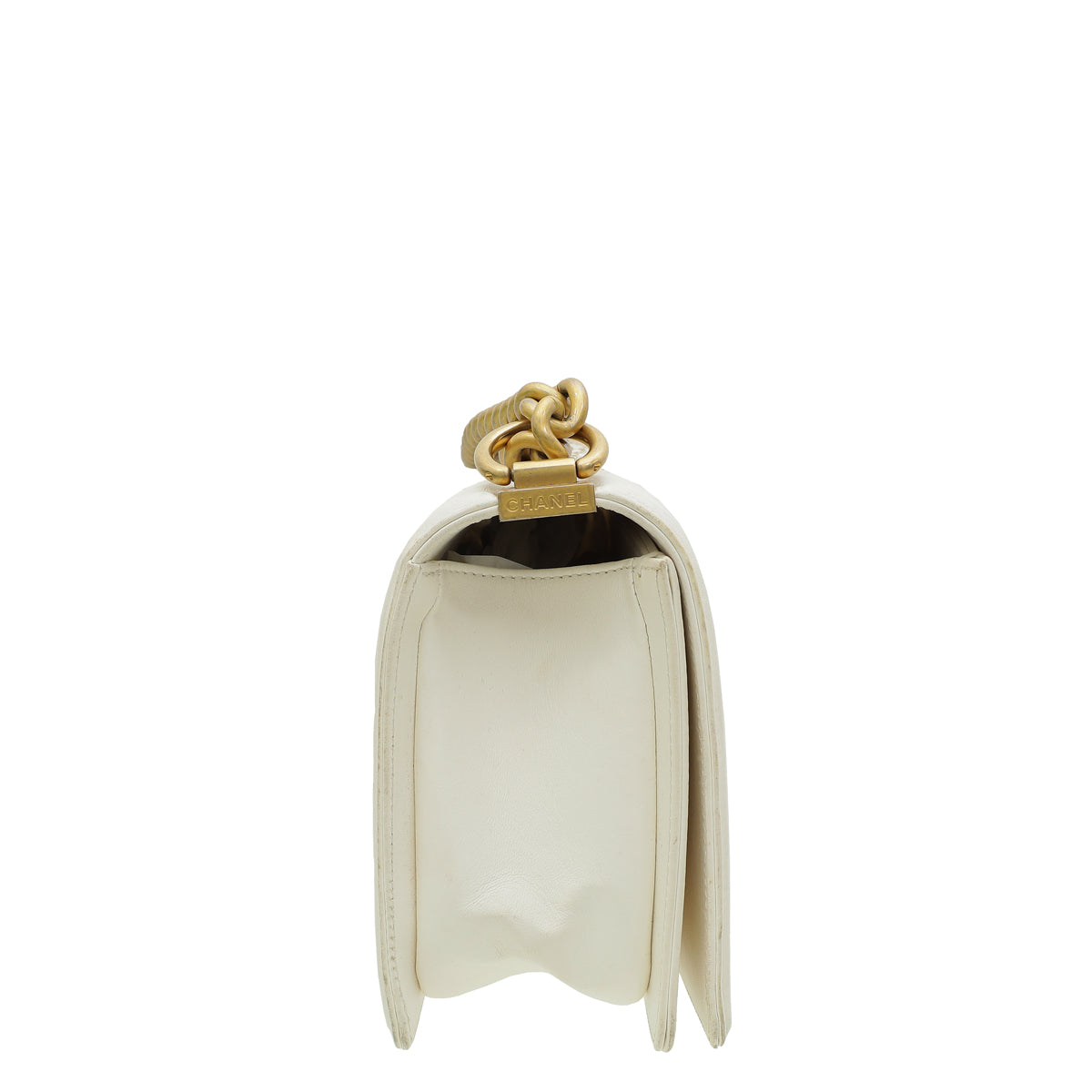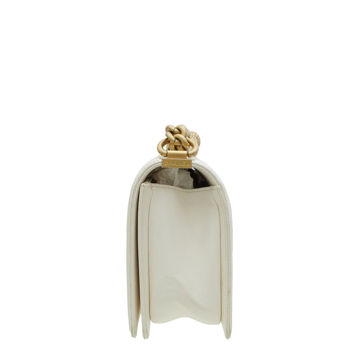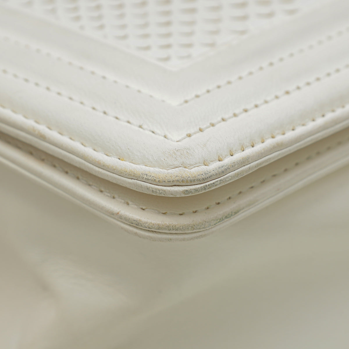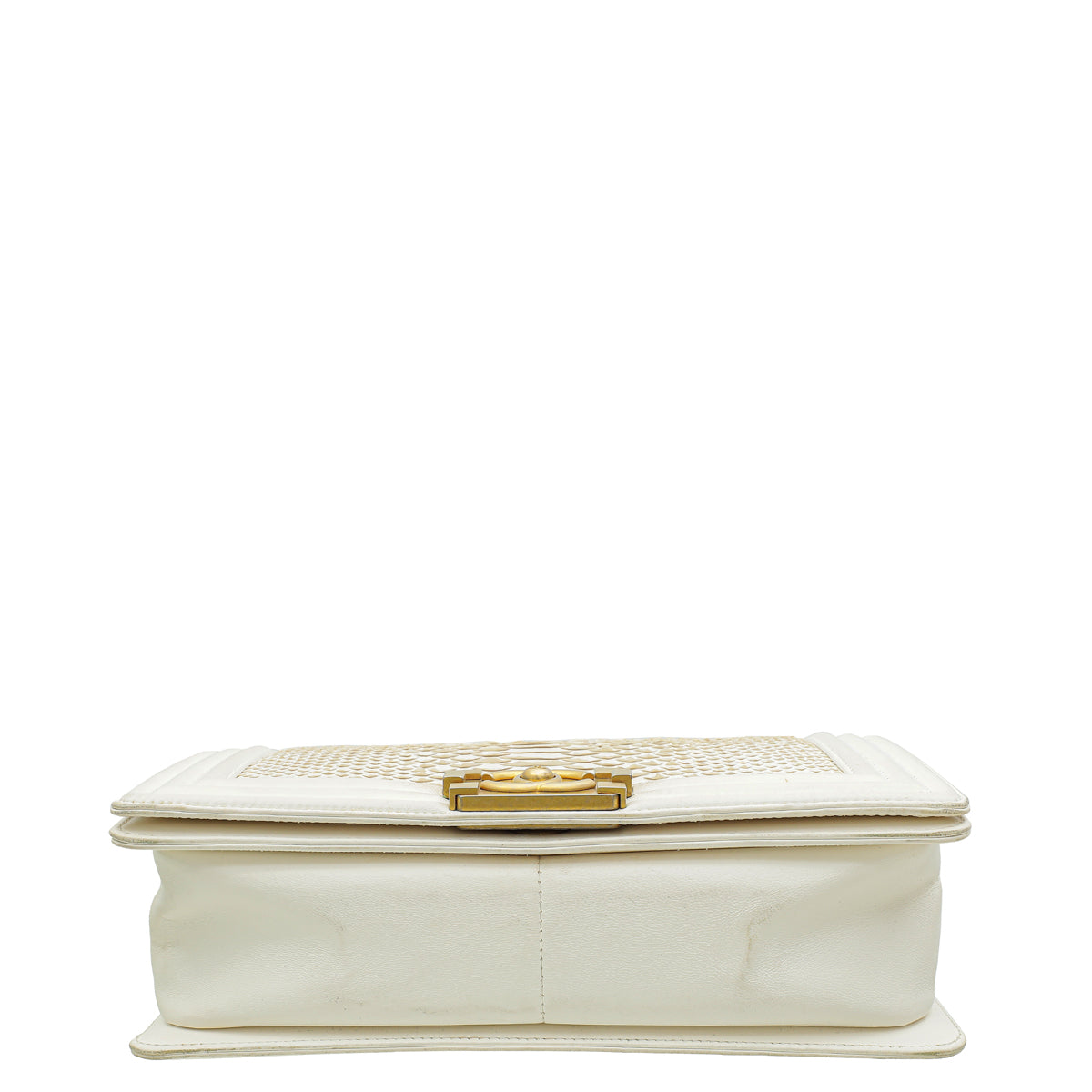 - Material: White Python Leather with Quilted Calf Leather Trim
