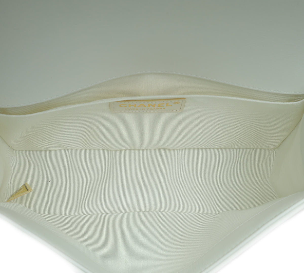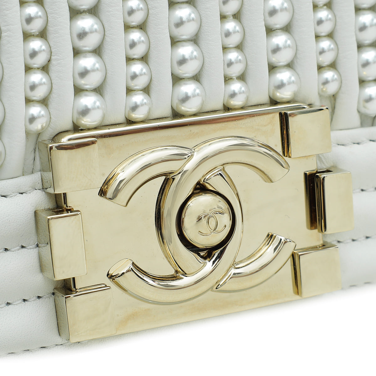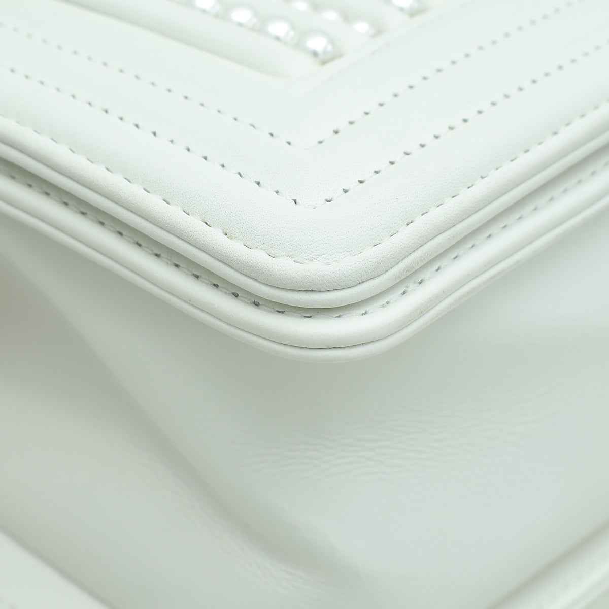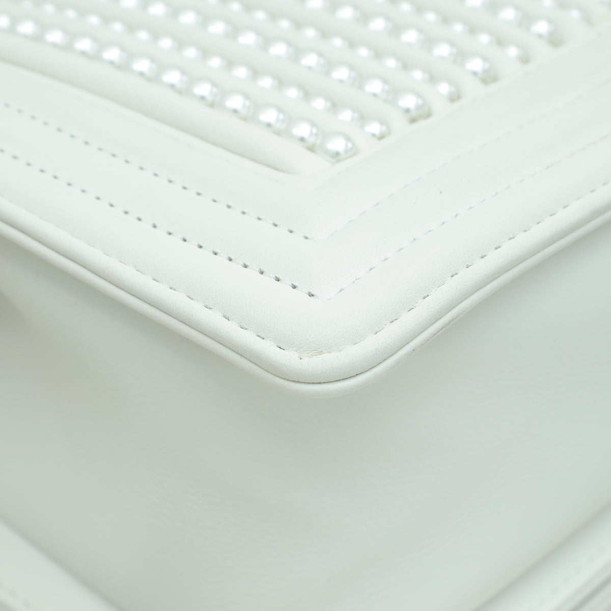 Chanel White Vertical Pearl Embellished Le Boy Medium Bag