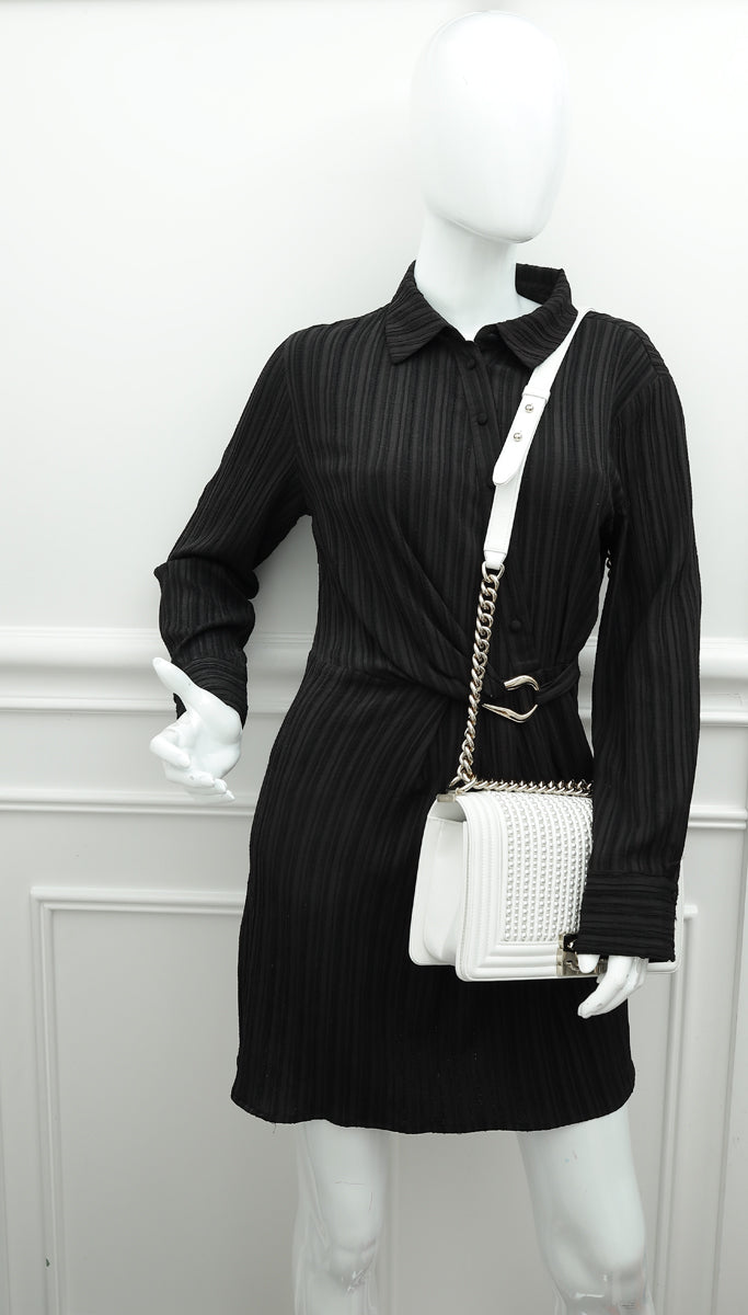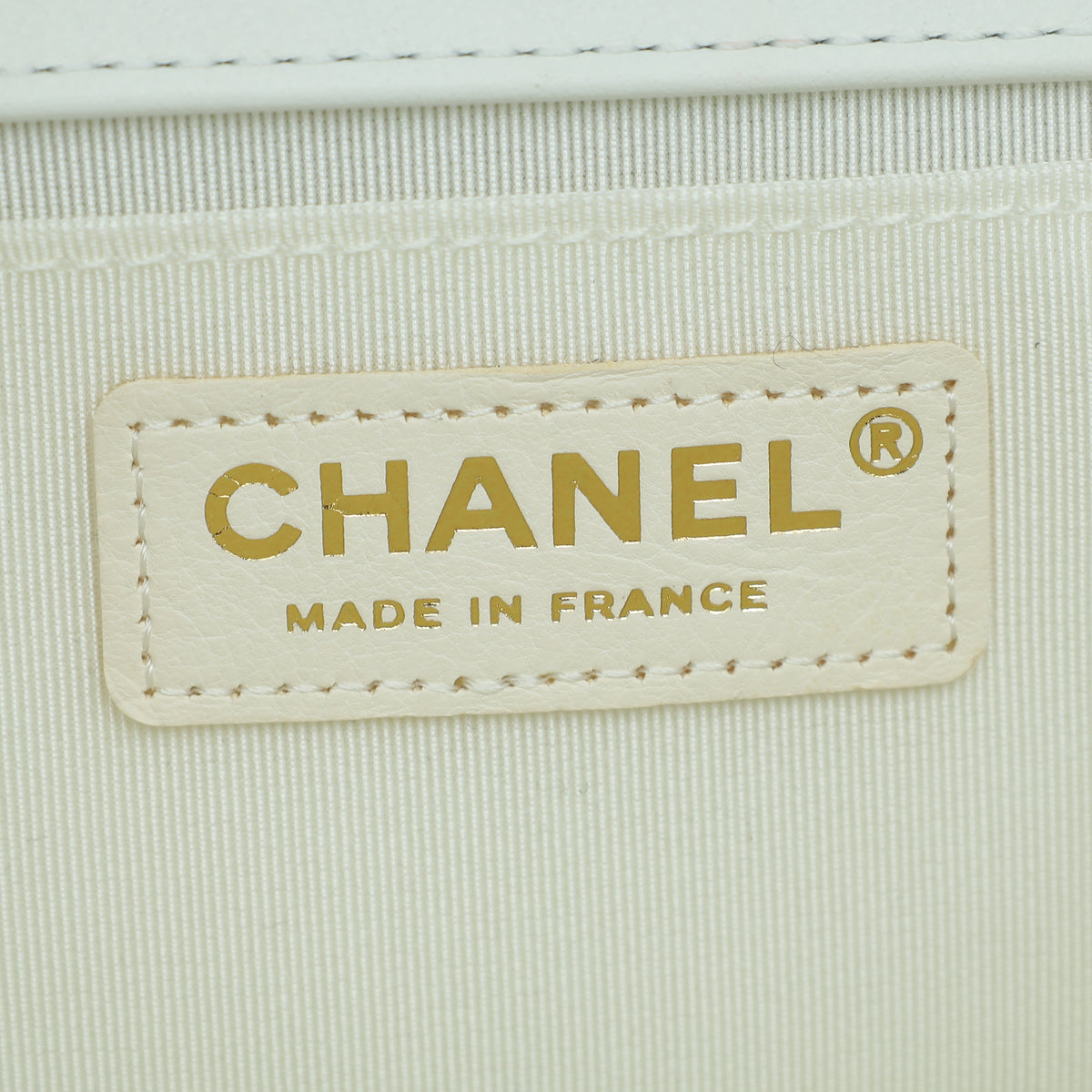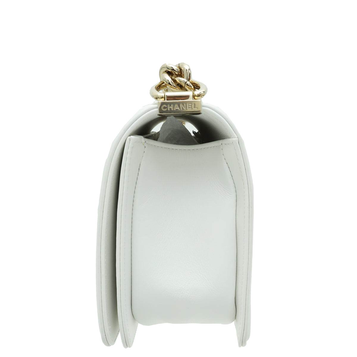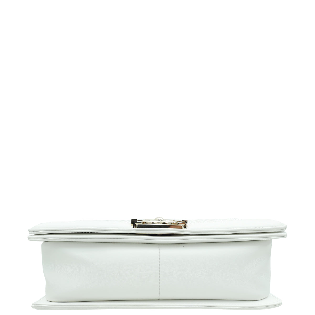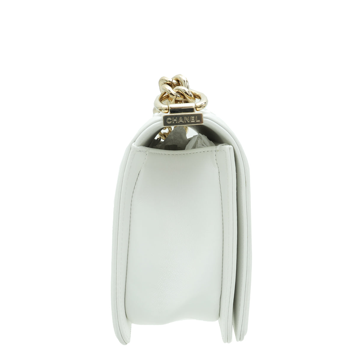 Chanel White Vertical Pearl Embellished Le Boy Medium Bag