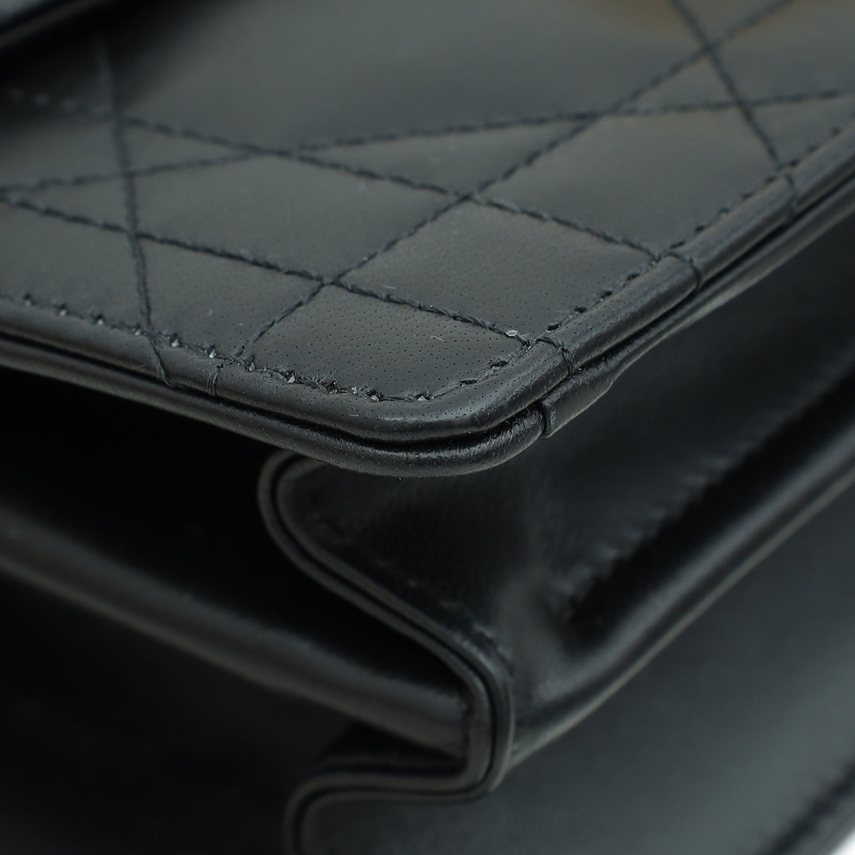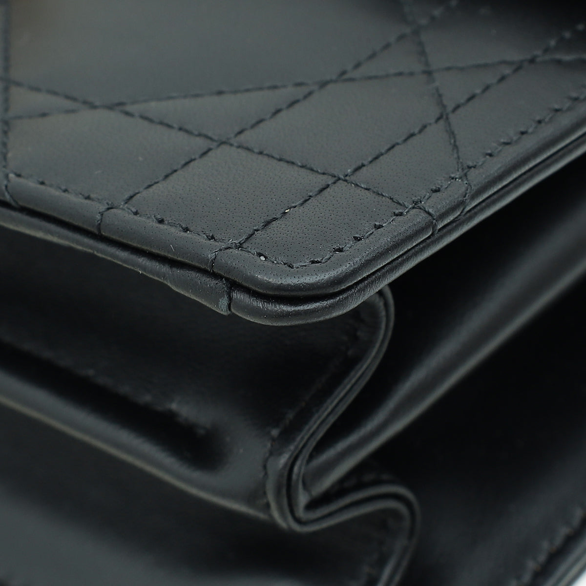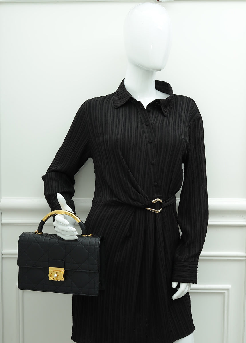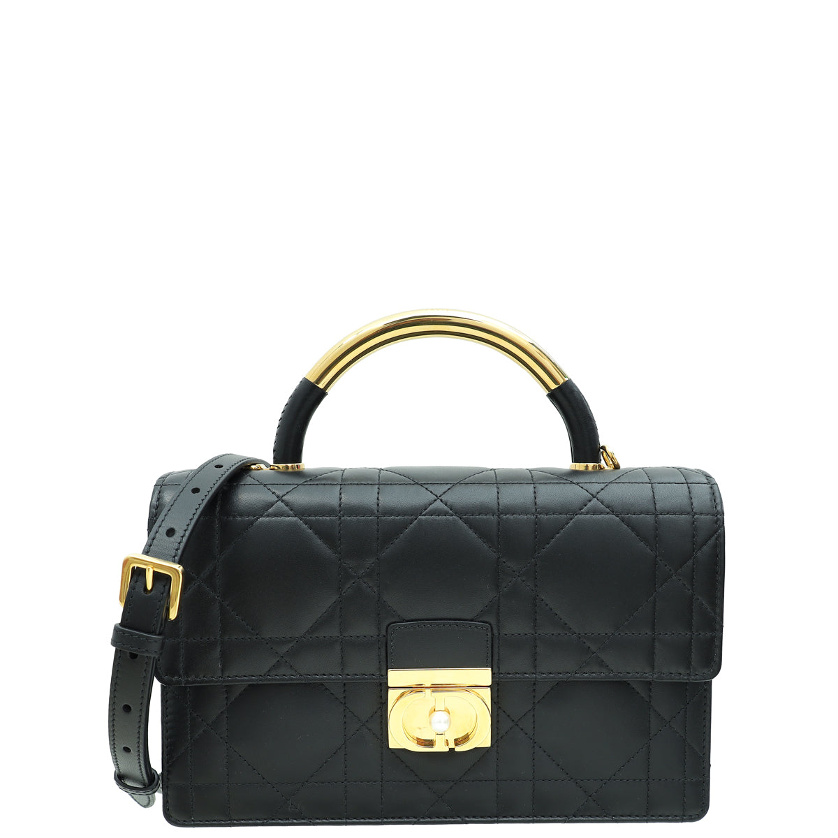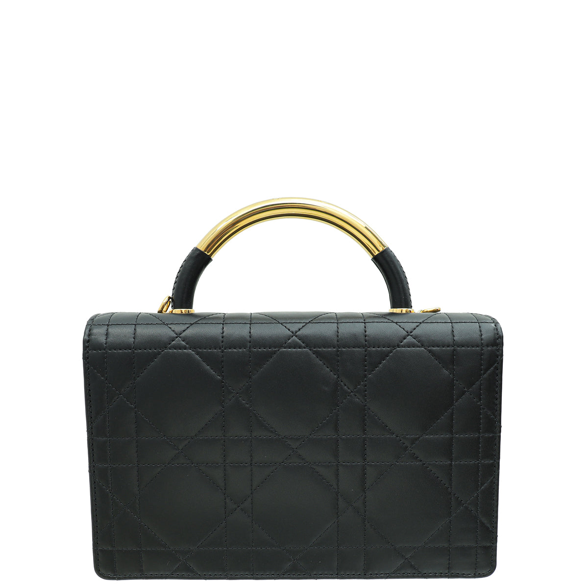 Christian Dior Black Ange Macrocannage Medium Top Handle Bag