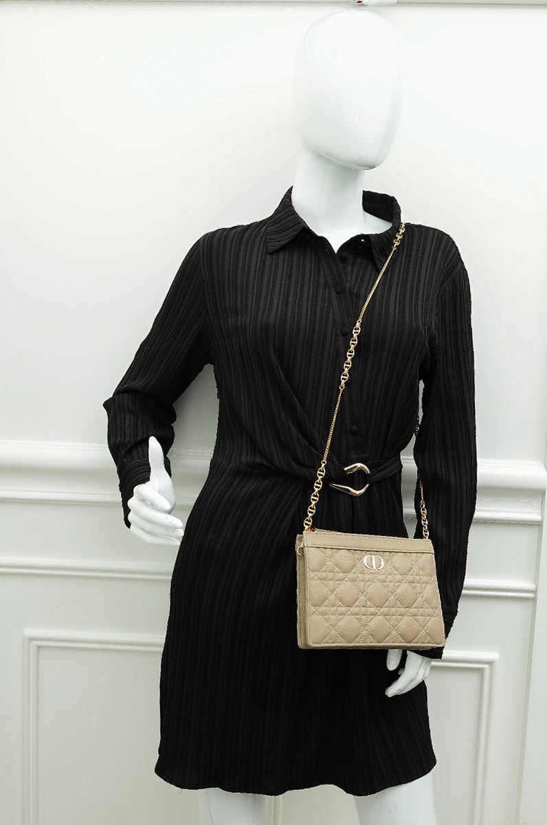 Christian Dior Sand Caro Every Dior Pouch With Chain