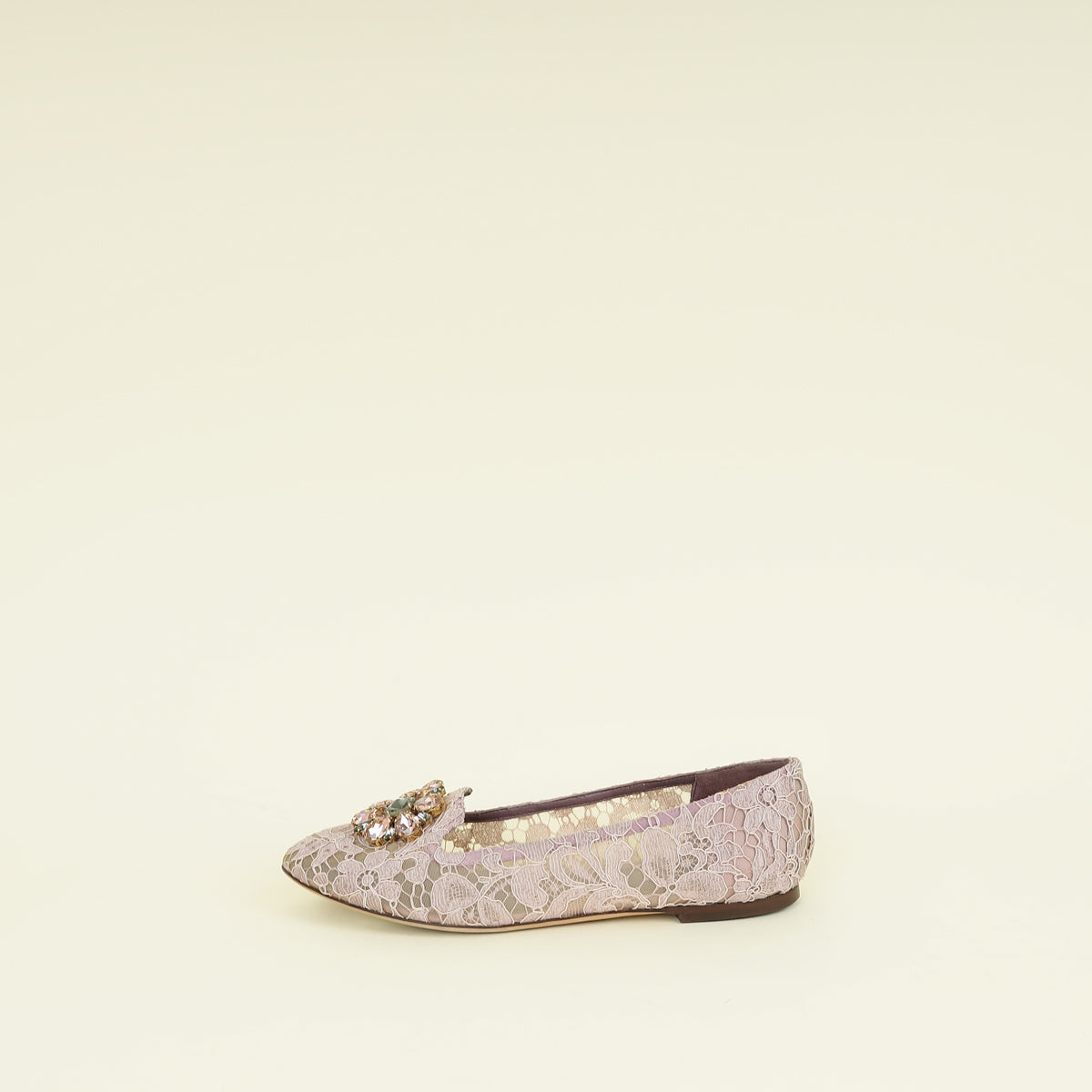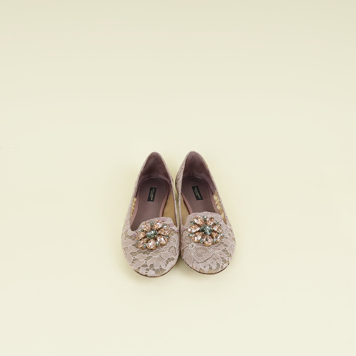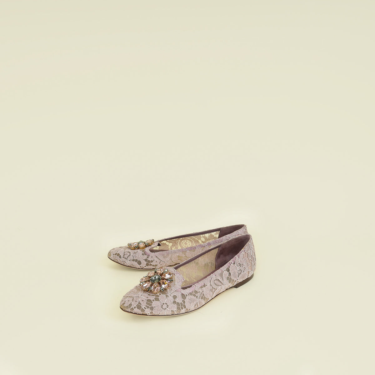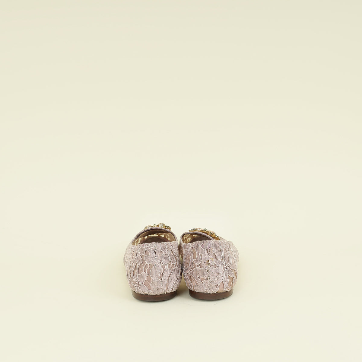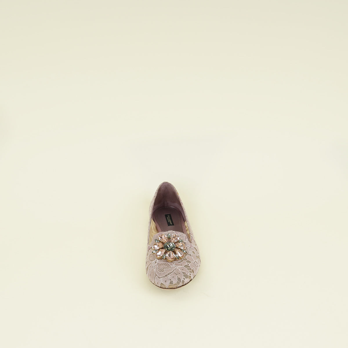 Dolce & Gabbana Lilac Bellucci Crystal Embellished Lace Flat Ballerina 40.5