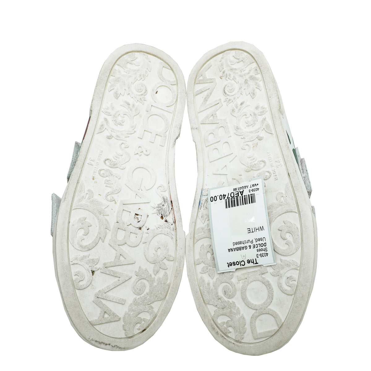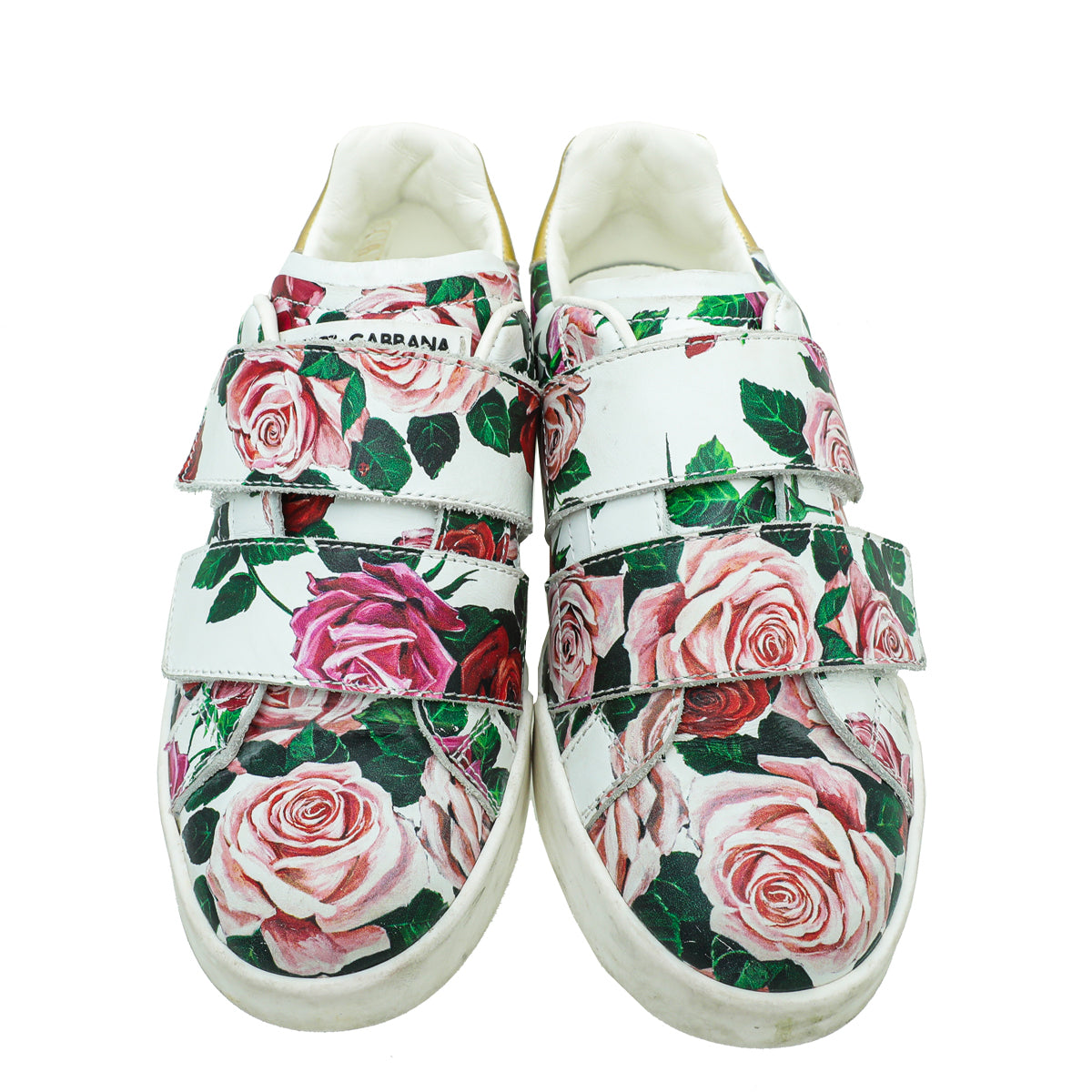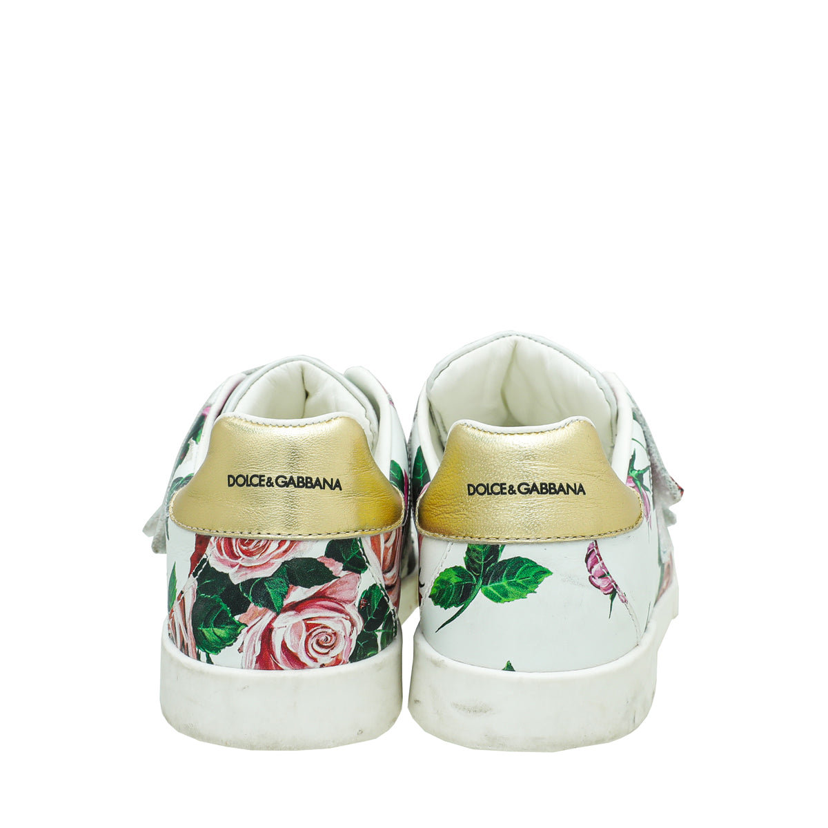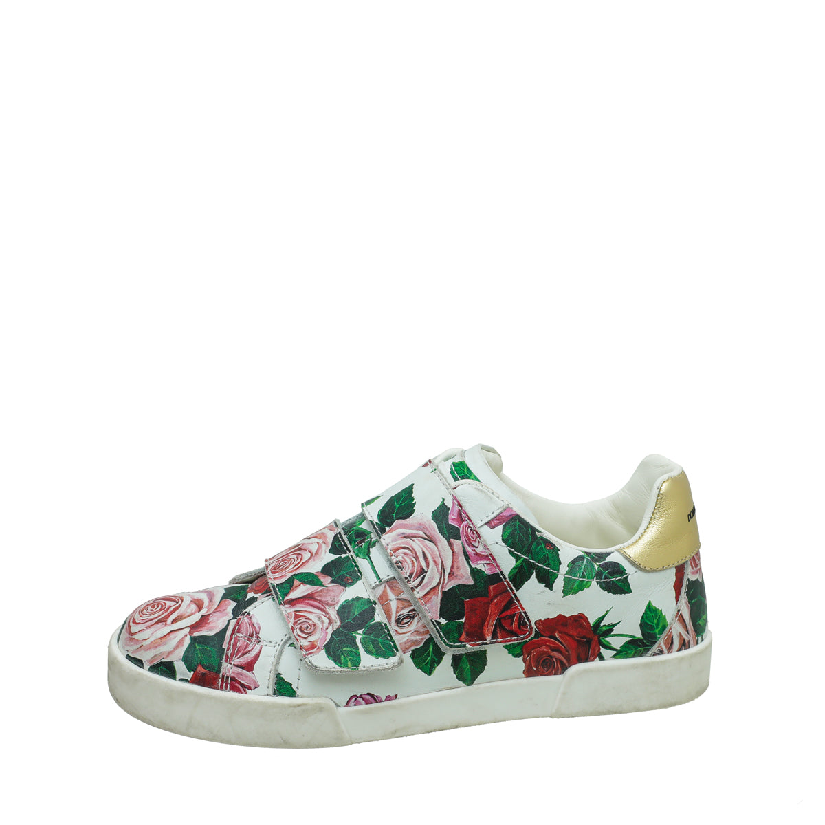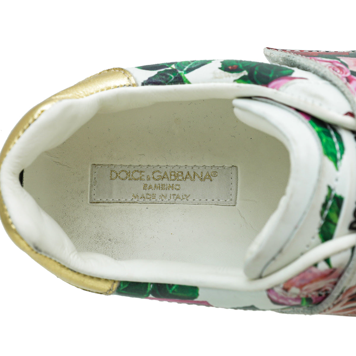 Dolce & Gabbana White Multicolor Floral Print Velcro Sneaker 34