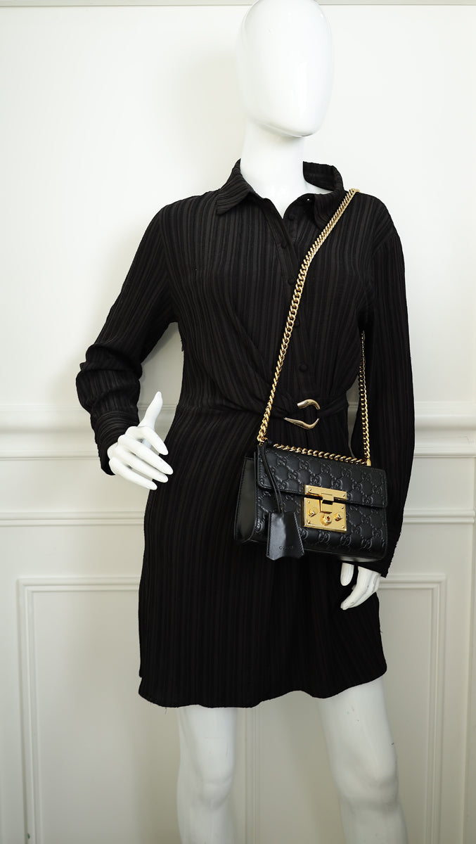 Gucci Black GG Guccissima Padlock Small Shoulder Bag
