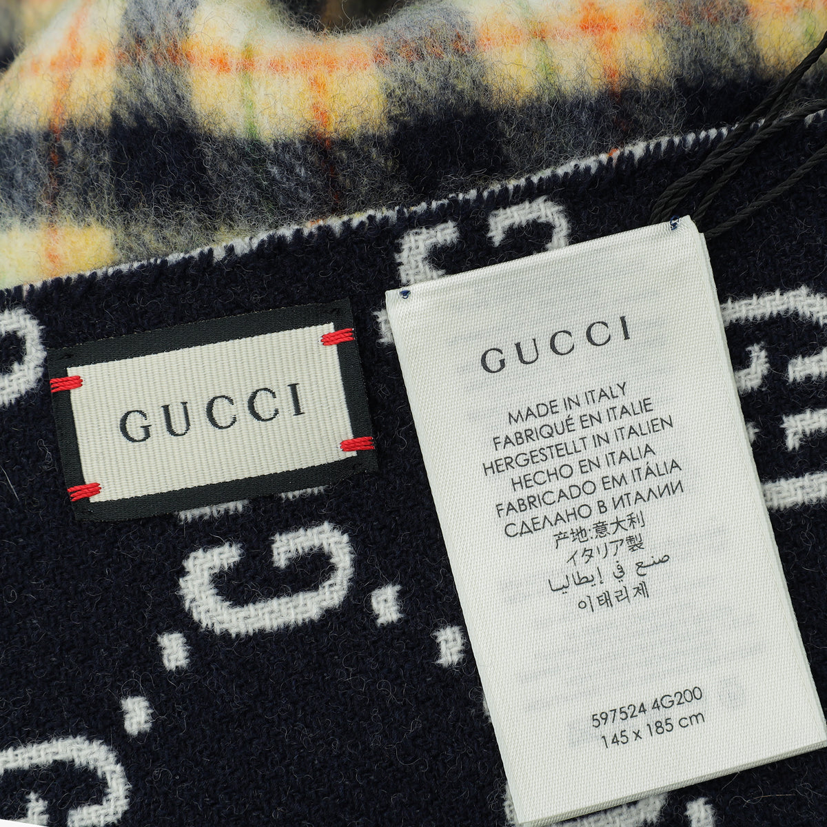 Gucci Multiple Colors Reversible Check Poncho Wool Cape