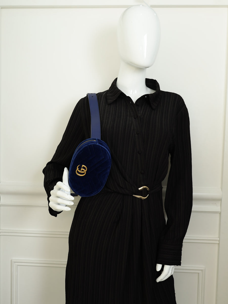 Gucci Navy Blue GG Marmont Velvet Belt Bag