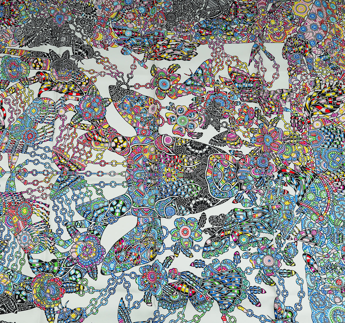 Hermes Blanc Multicolor La Legende De La Foret by Emeline Piot Silk Scarf 90