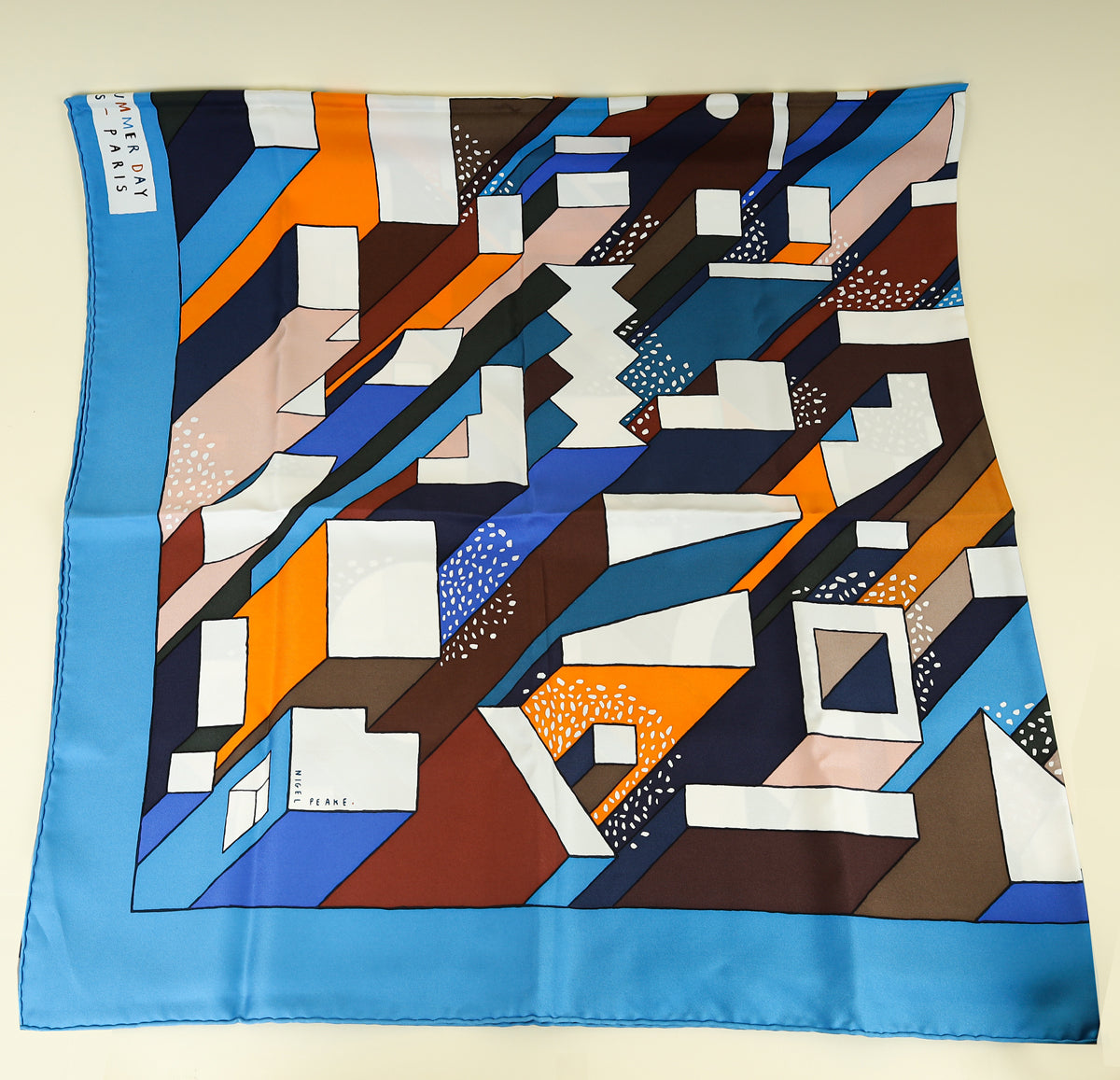 Hermes Bleu Multicolor "On a Summer Day" Printed Shawl 140