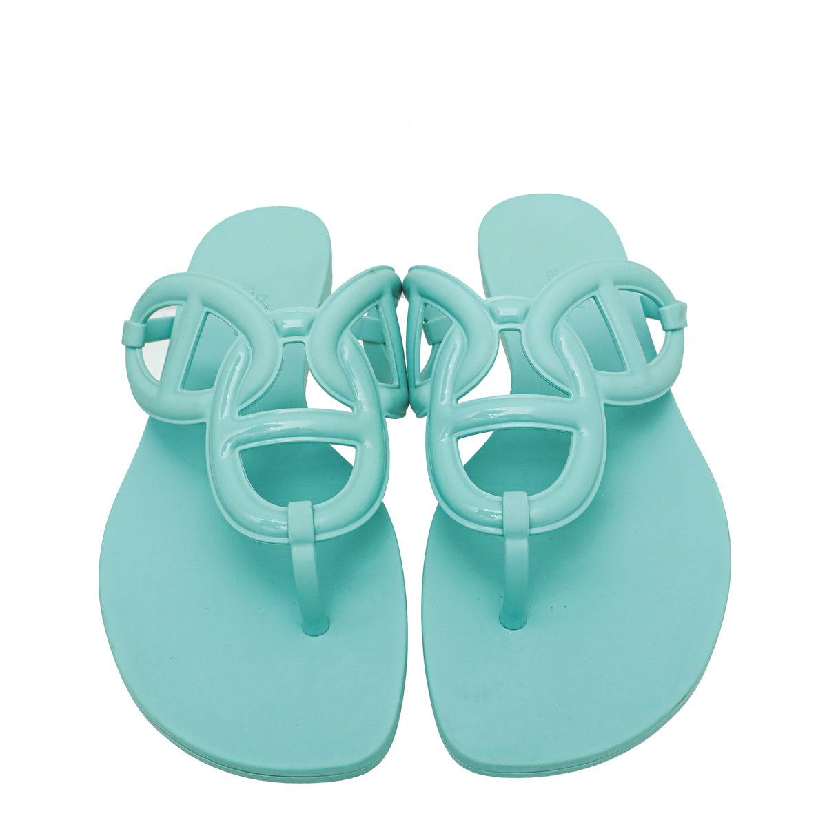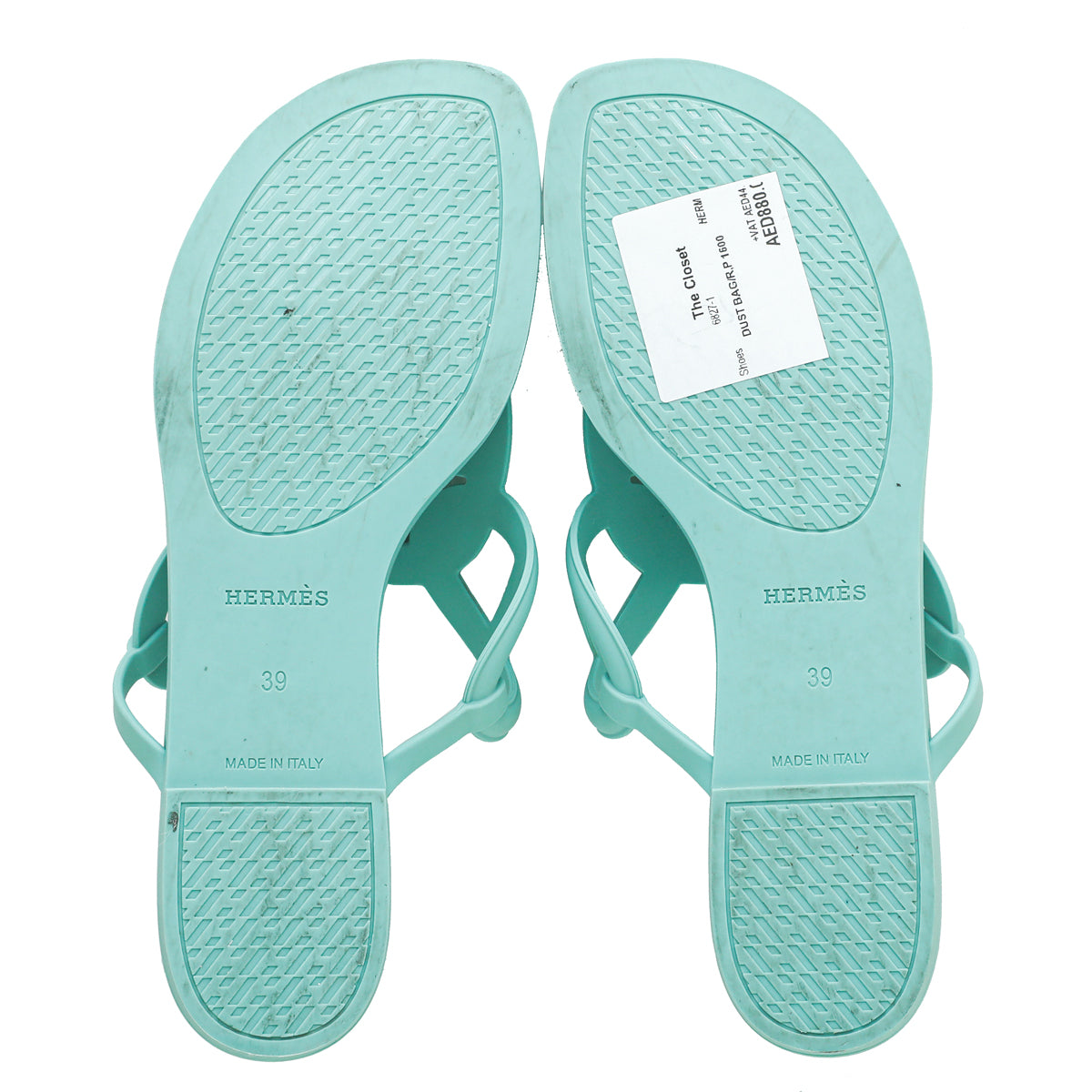 Hermes Vert احتضان Egerie Rubber Sandal 39