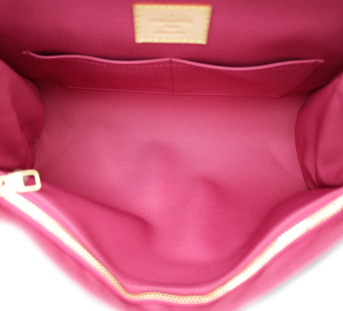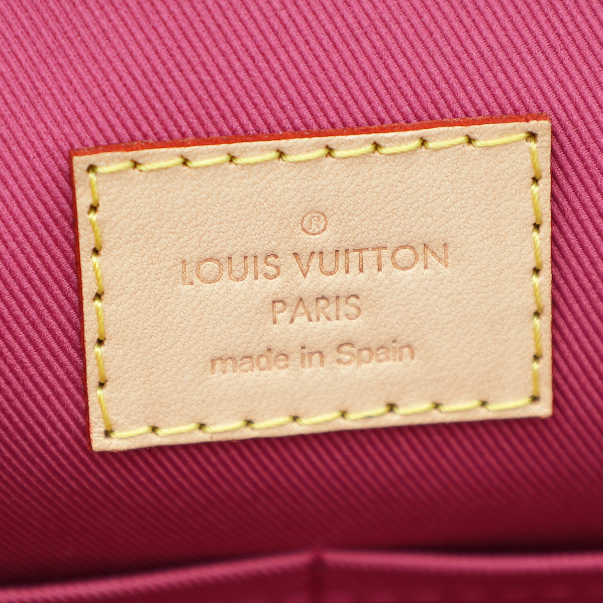 - Material: Brown Monogram Coated Canvas with Natural Cowhide Leather with Light Pink/Black Jacquard Strap
