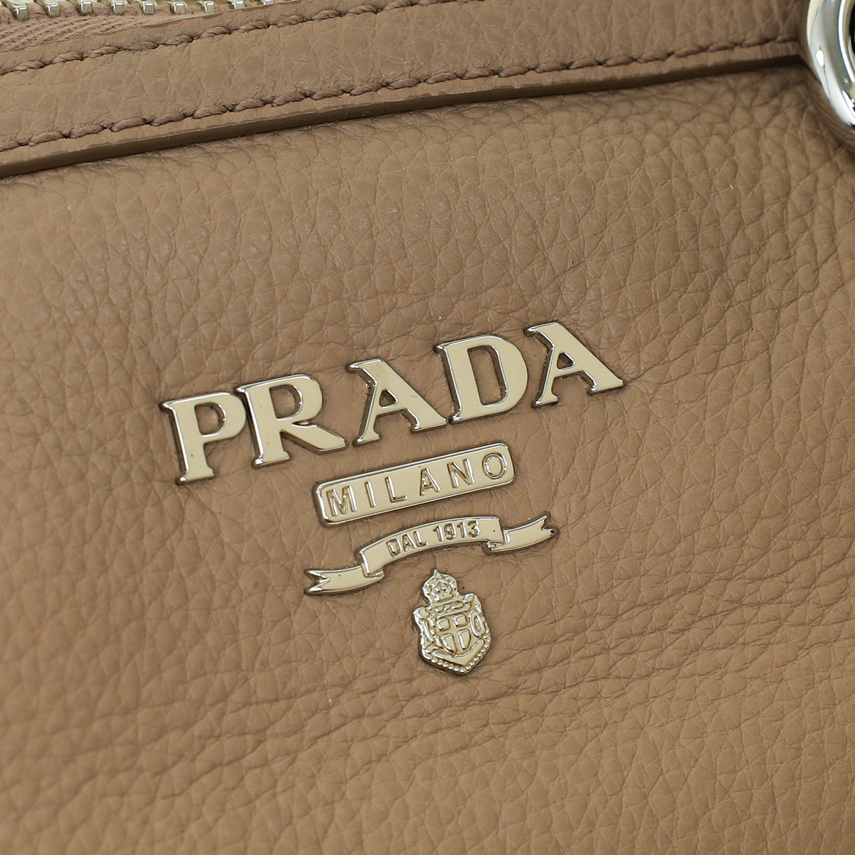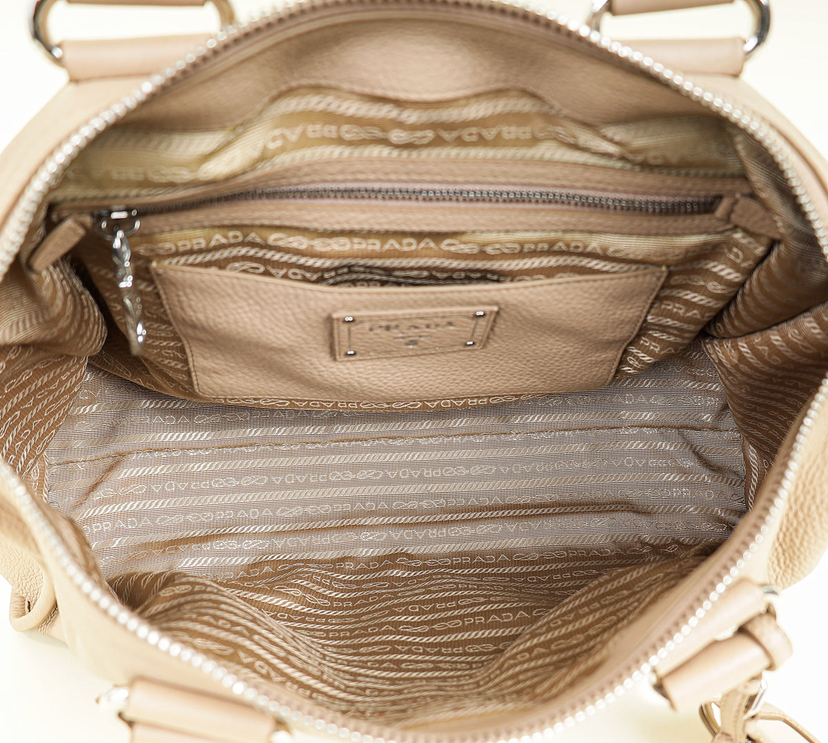 Prada Cammeo Beige Soft Vitello Phenix Bauletto Top Handle Bag