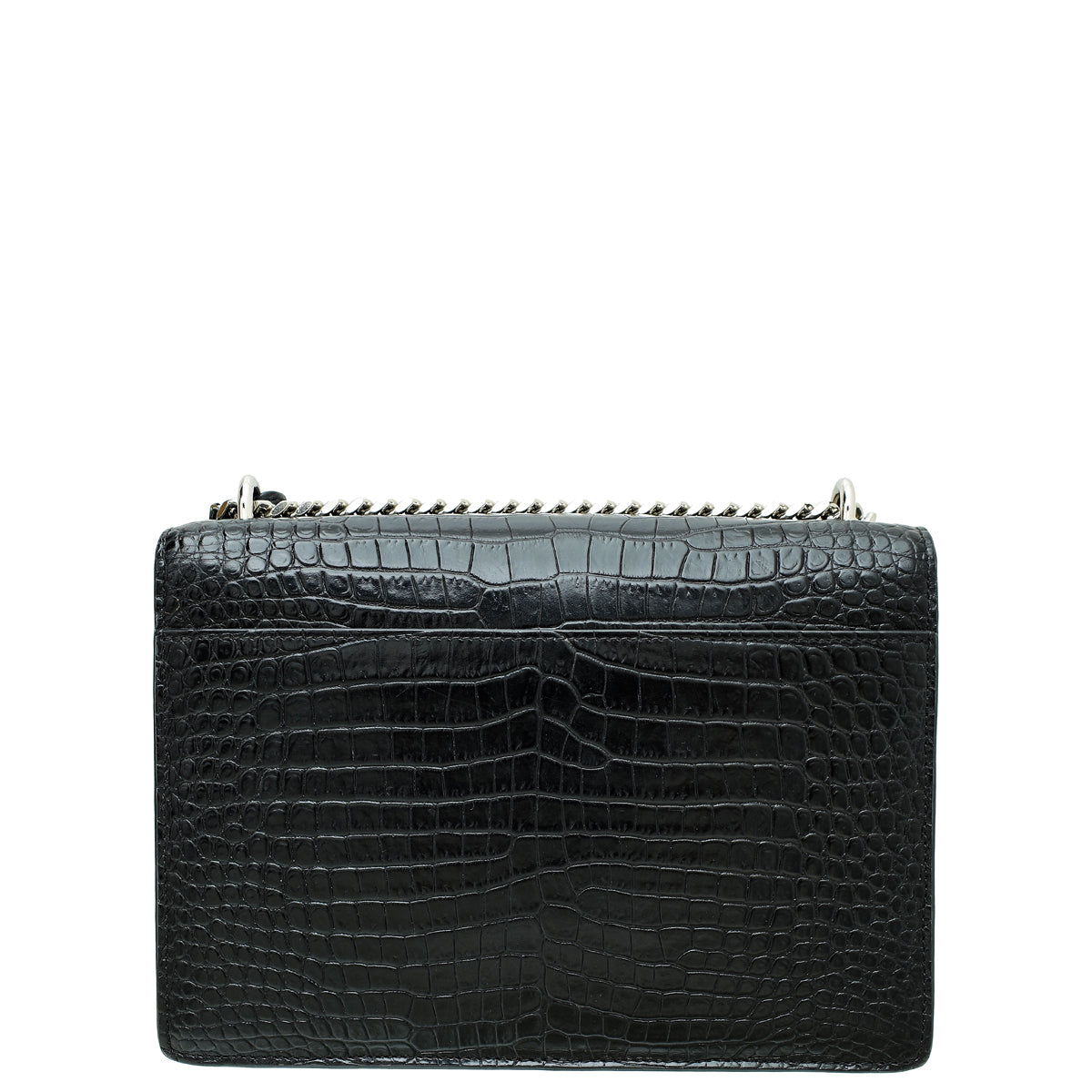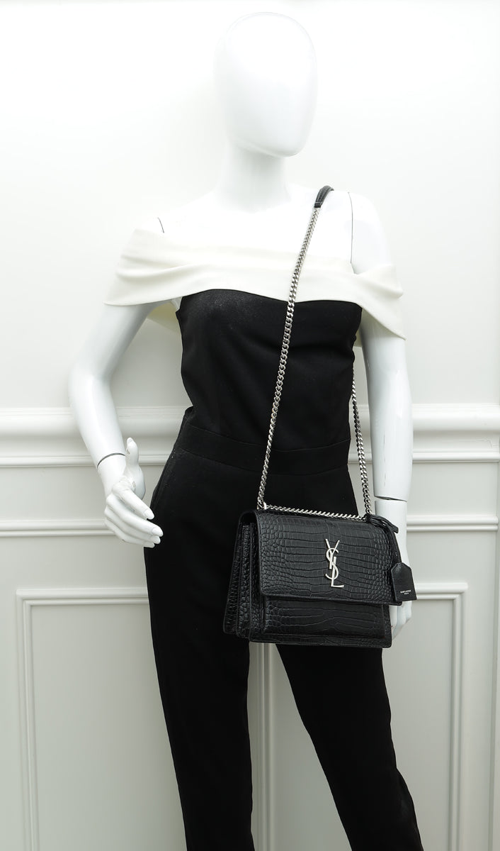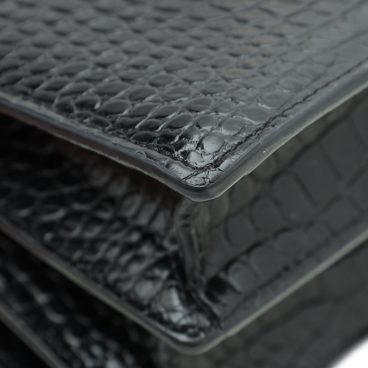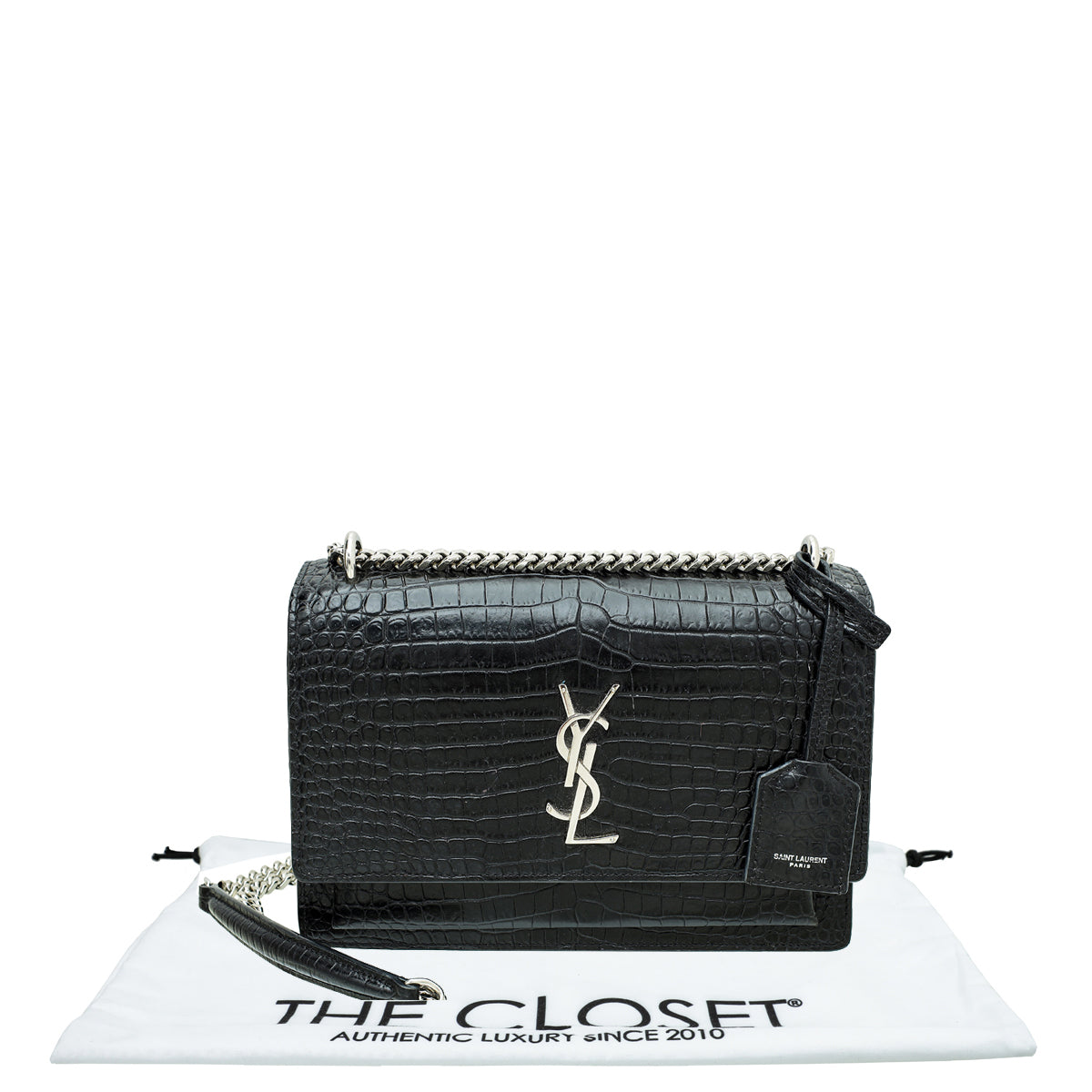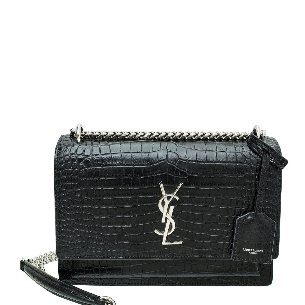 ysl أسود تمساح حقيبة غروب الشمس منقوش