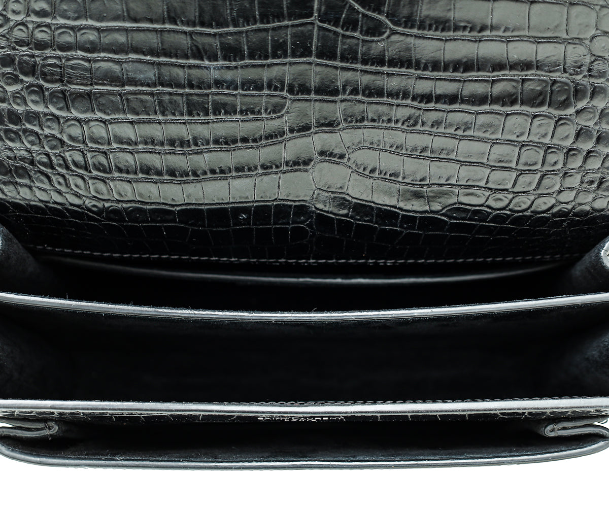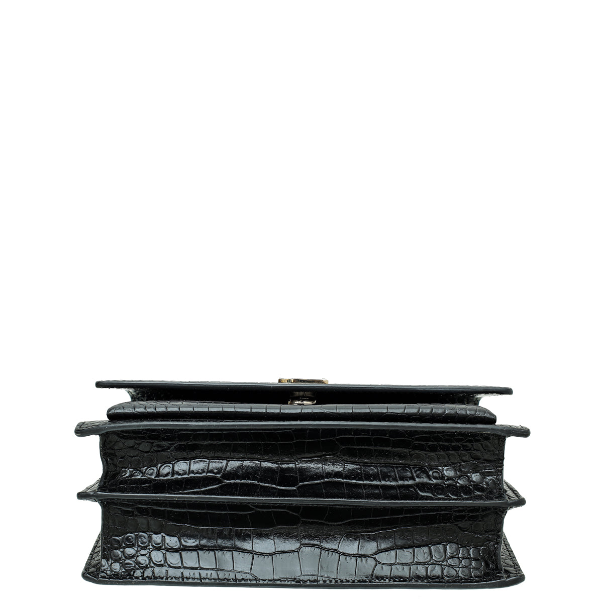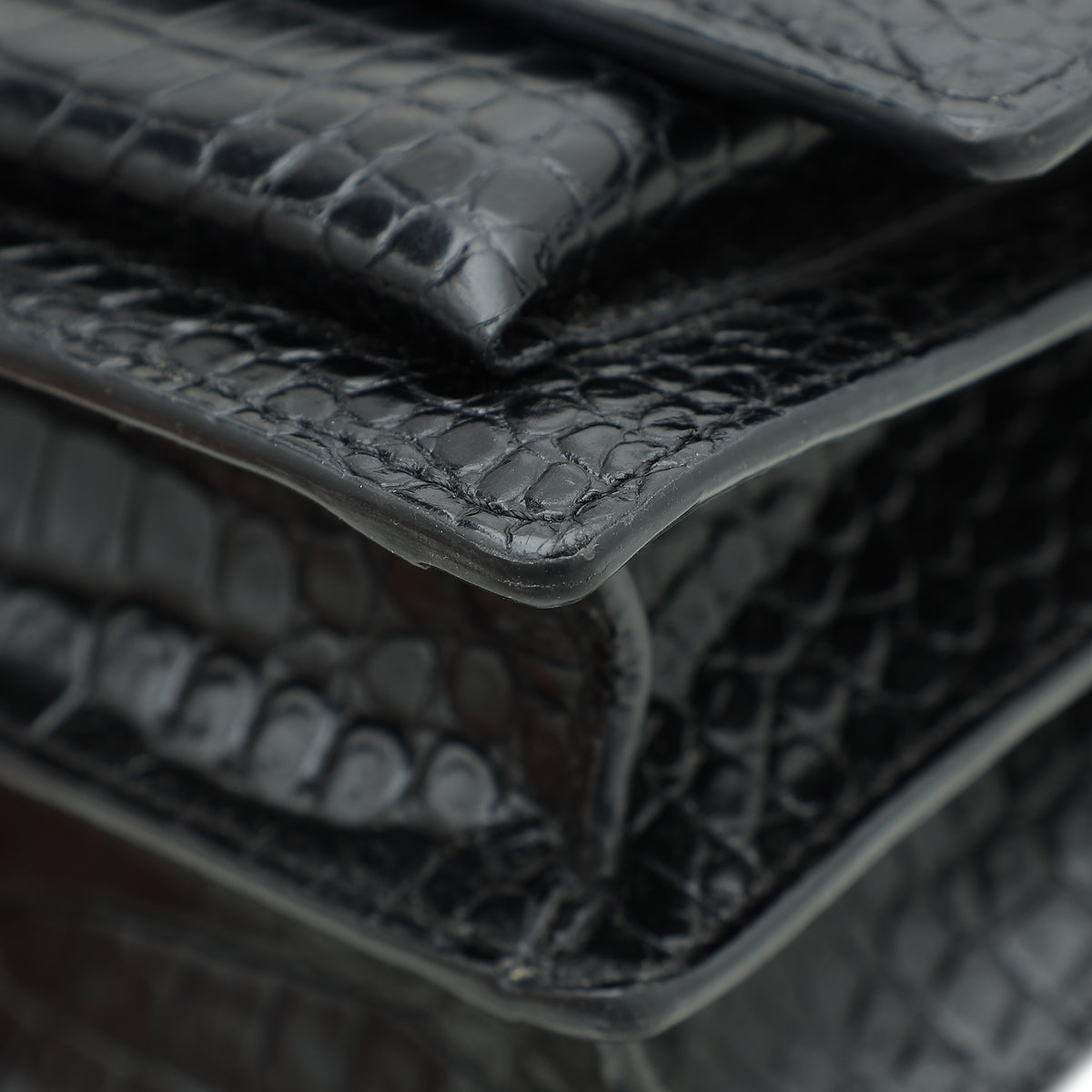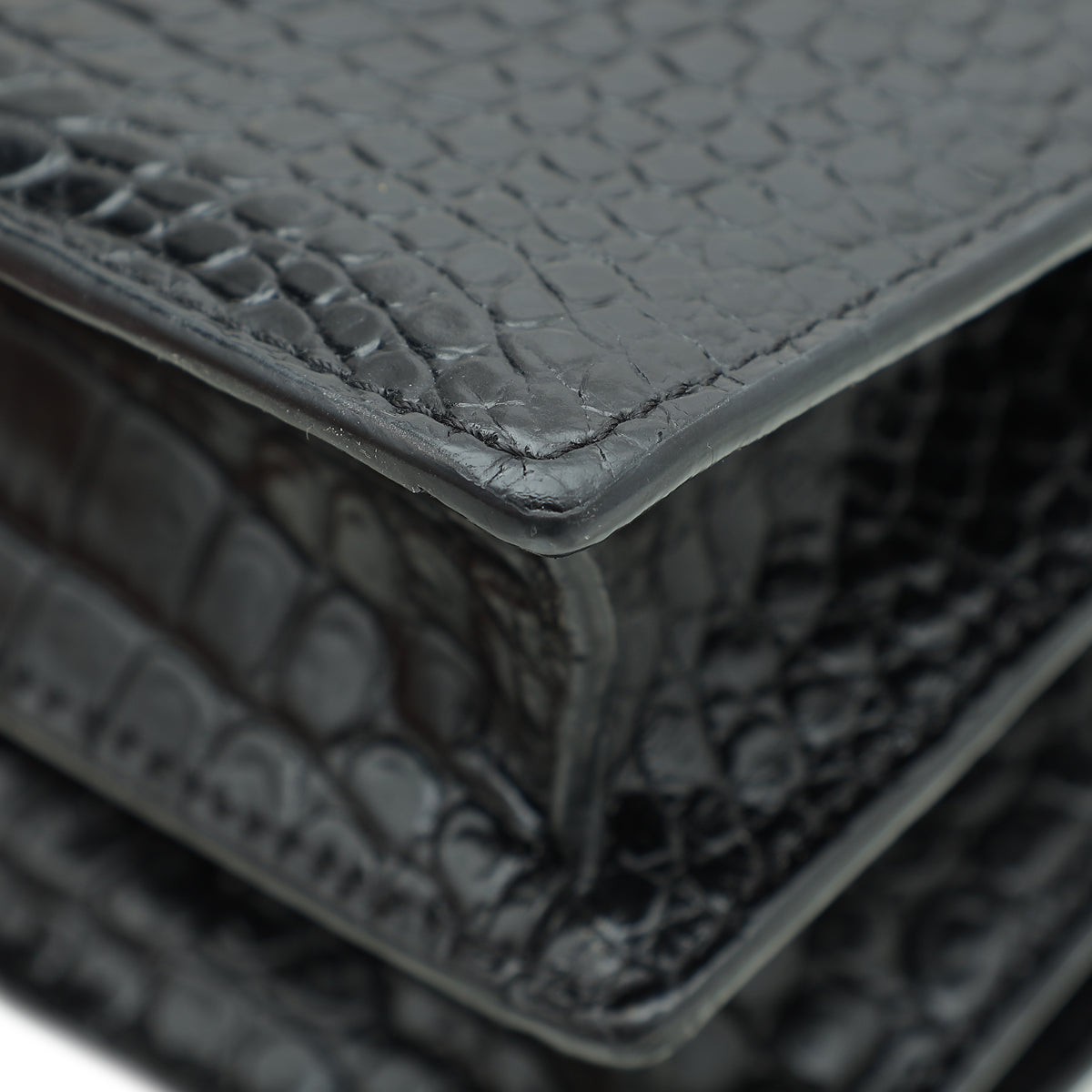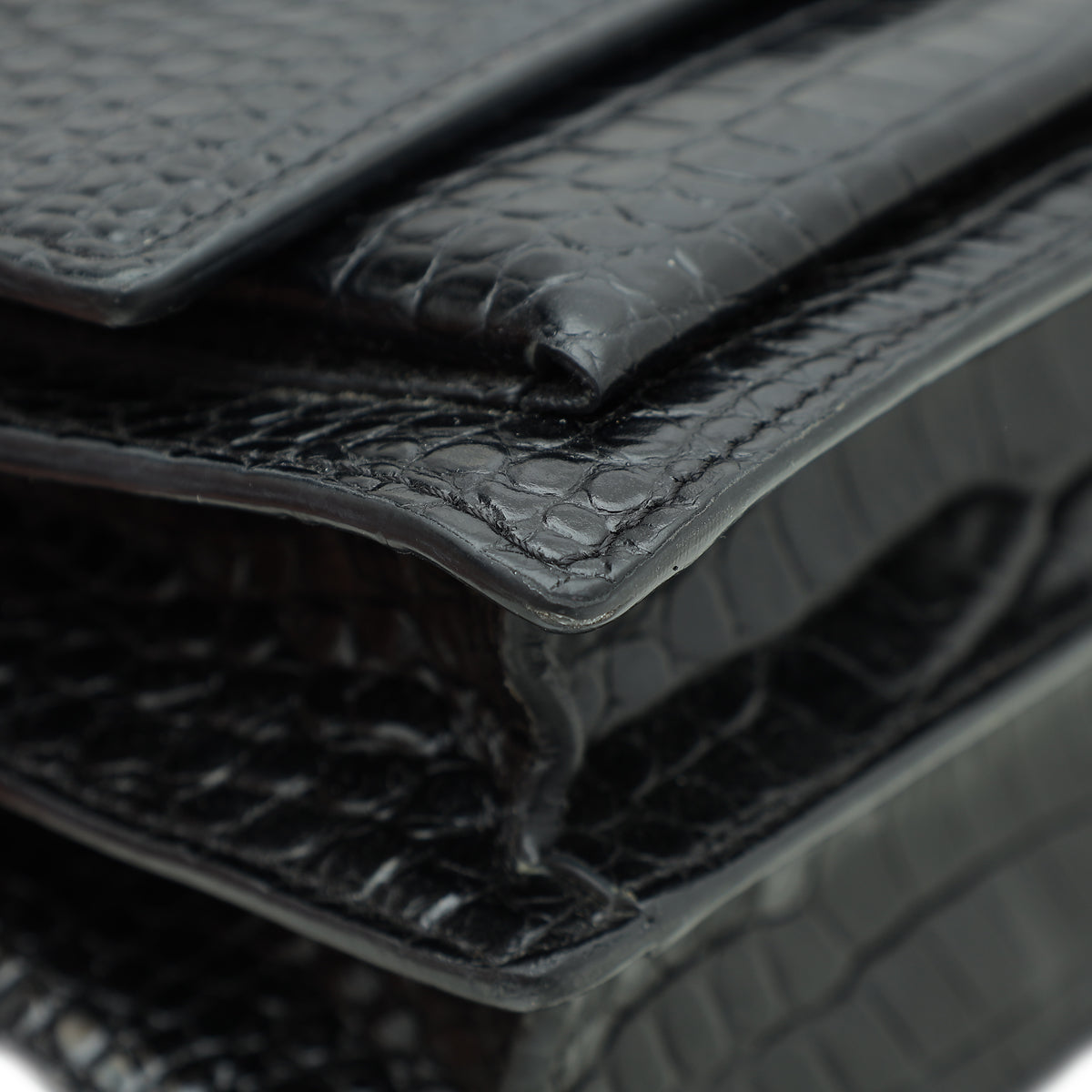 ysl أسود تمساح حقيبة غروب الشمس منقوش