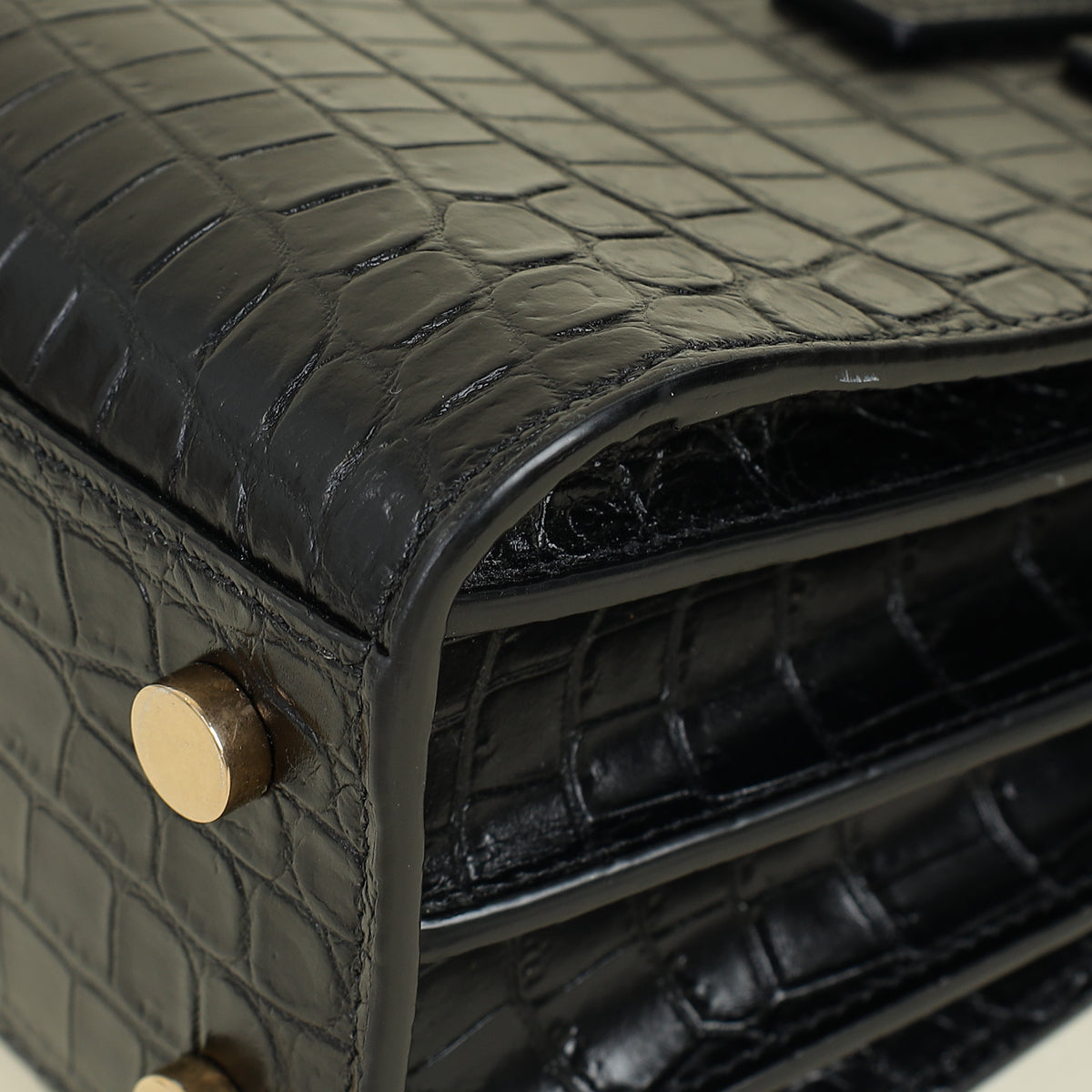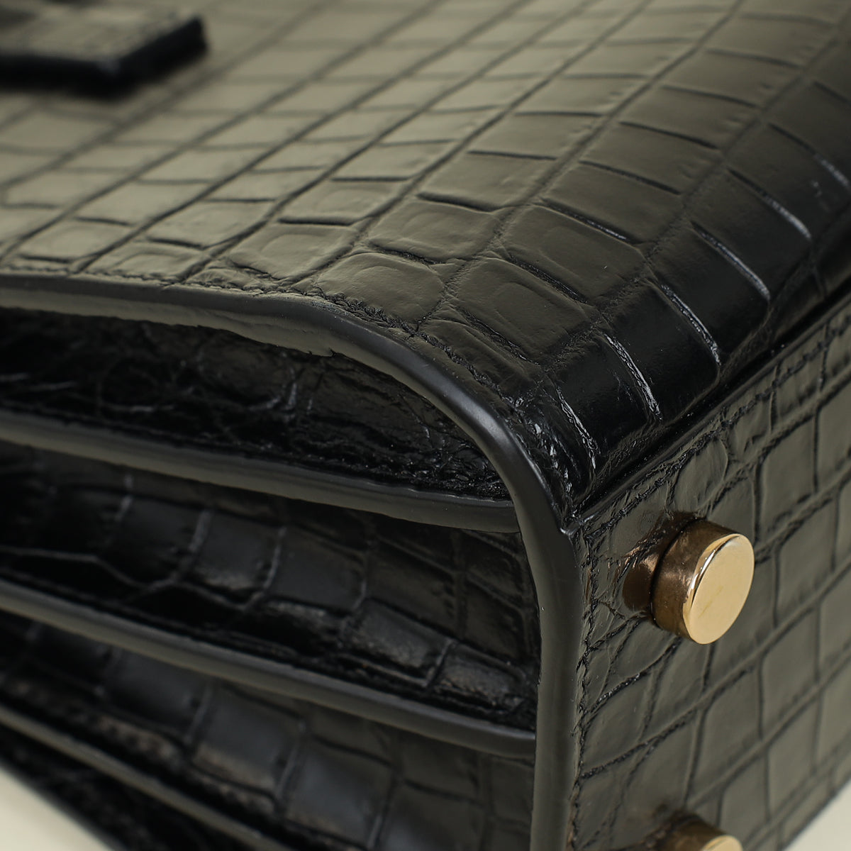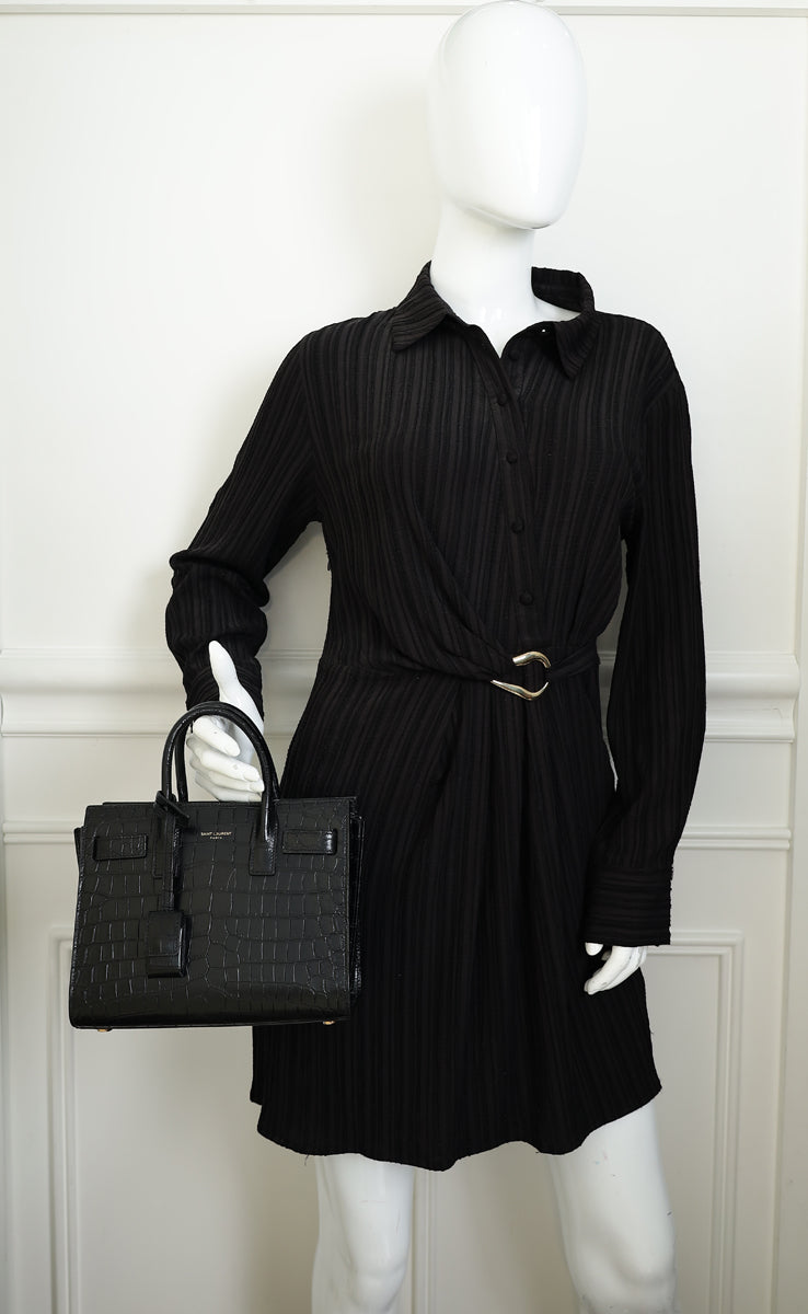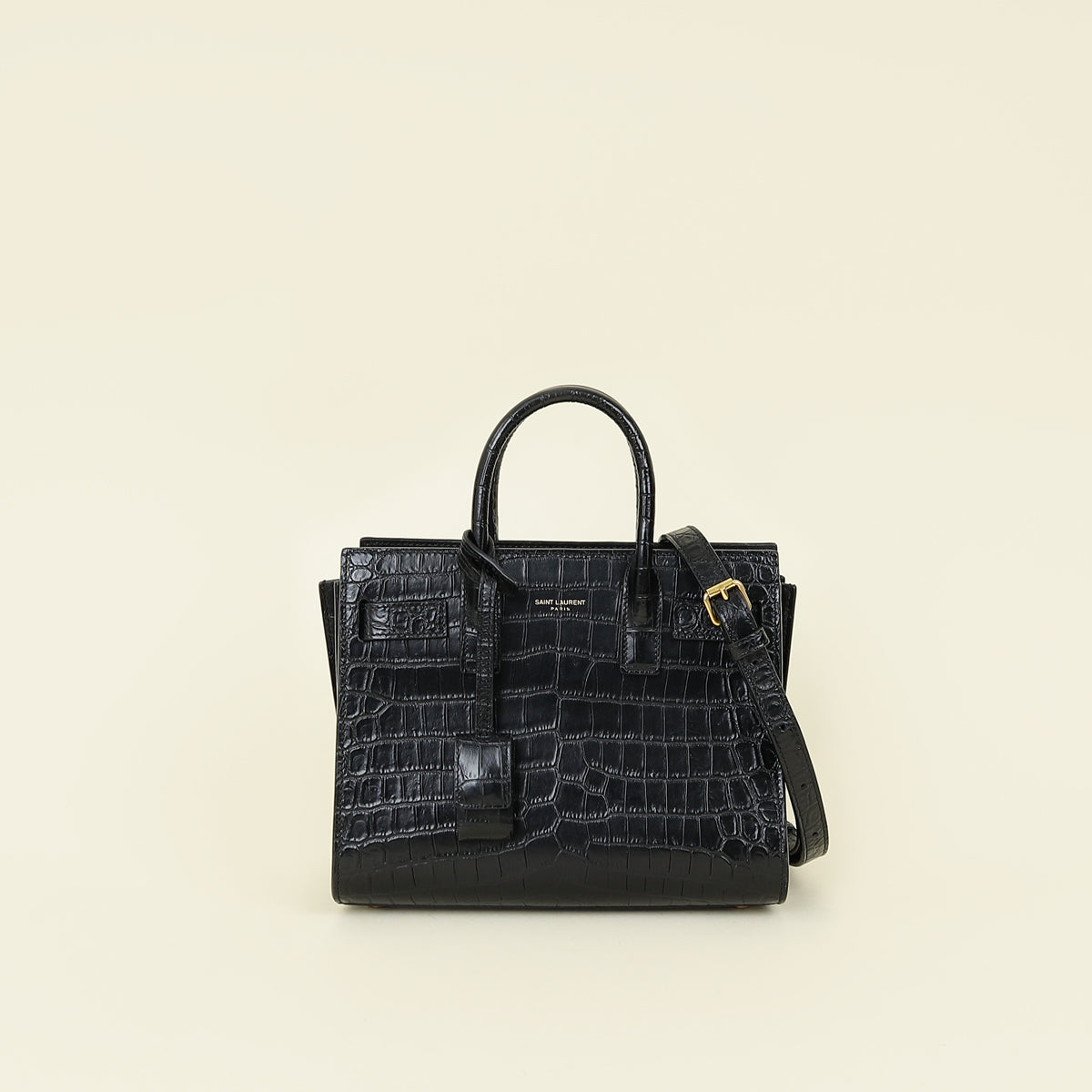 YSL Black Croco Embossed Sac De Jour Nano Bag