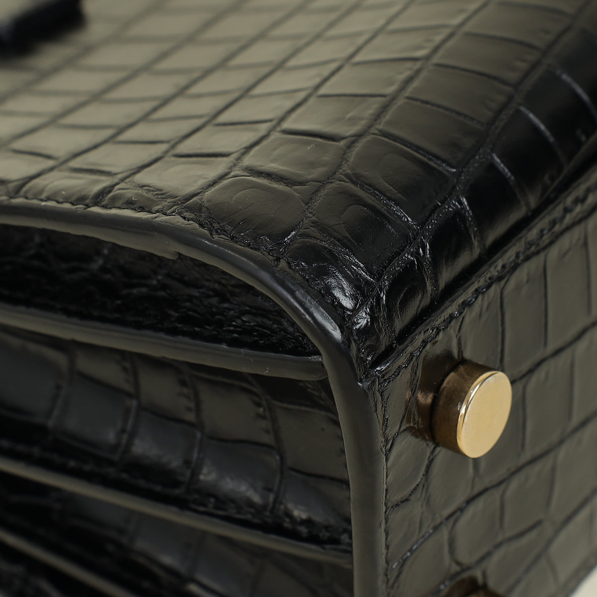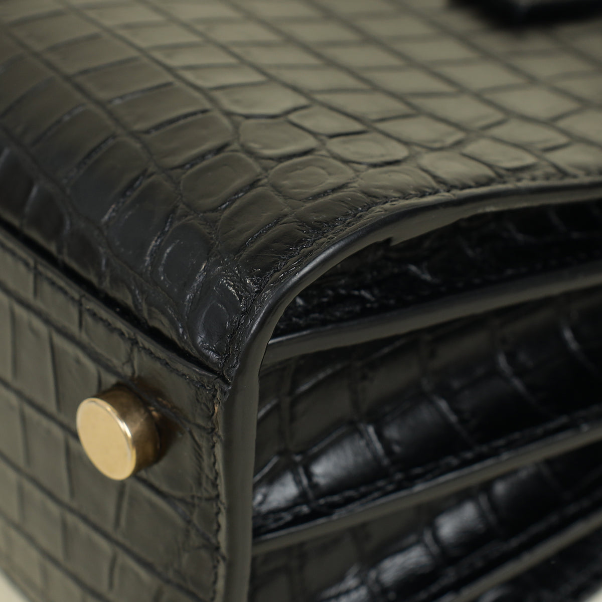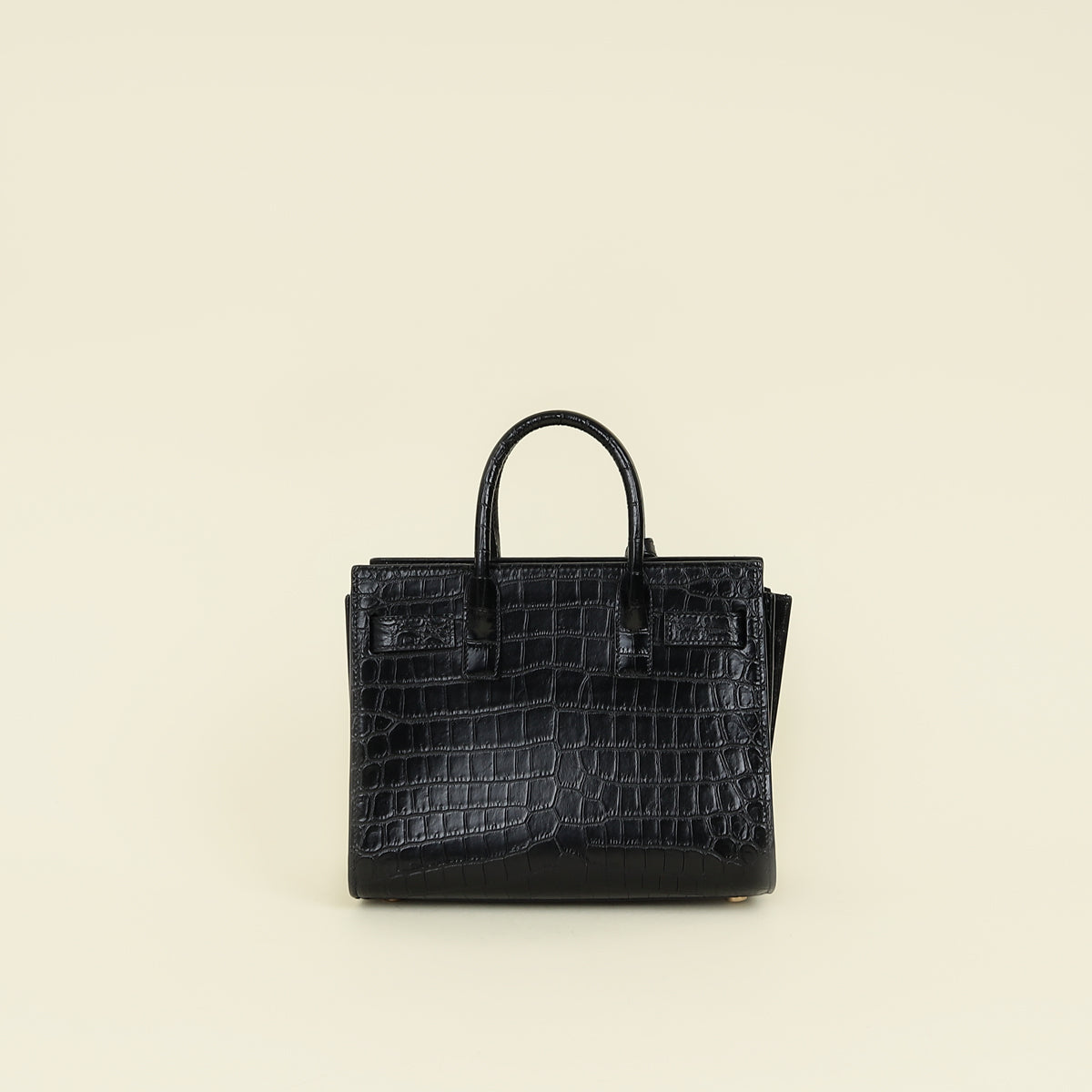 YSL Black Croco Embossed Sac De Jour Nano Bag