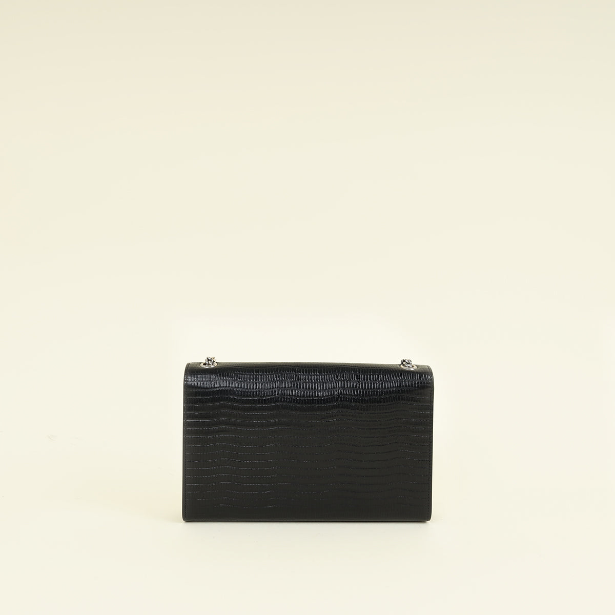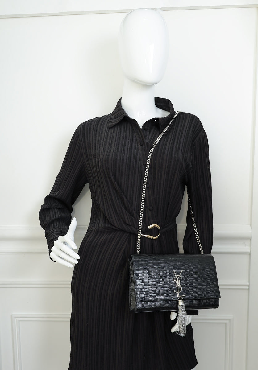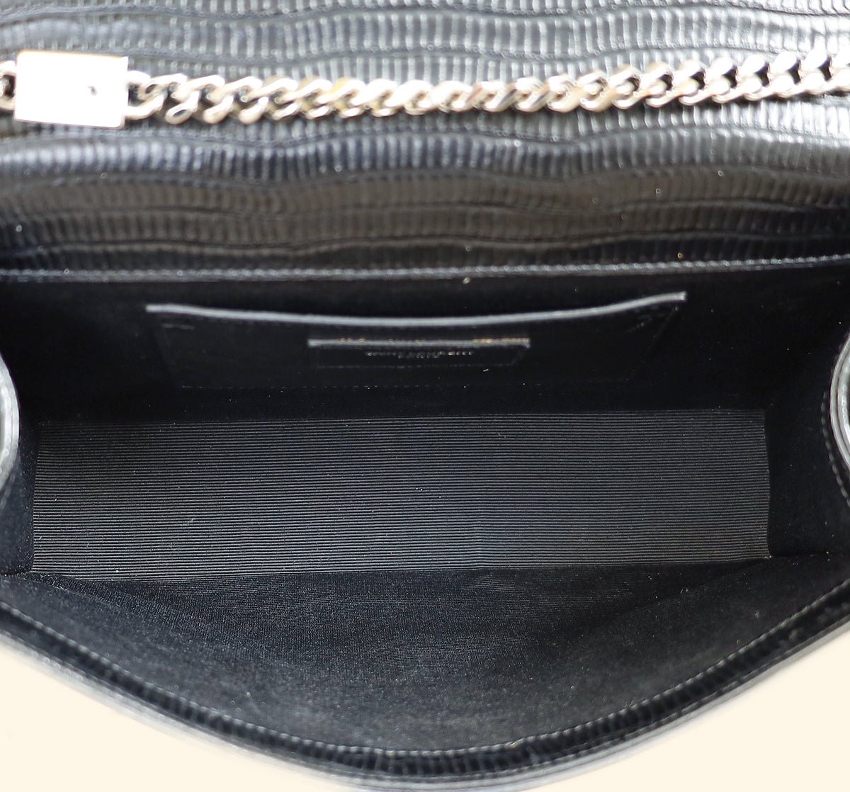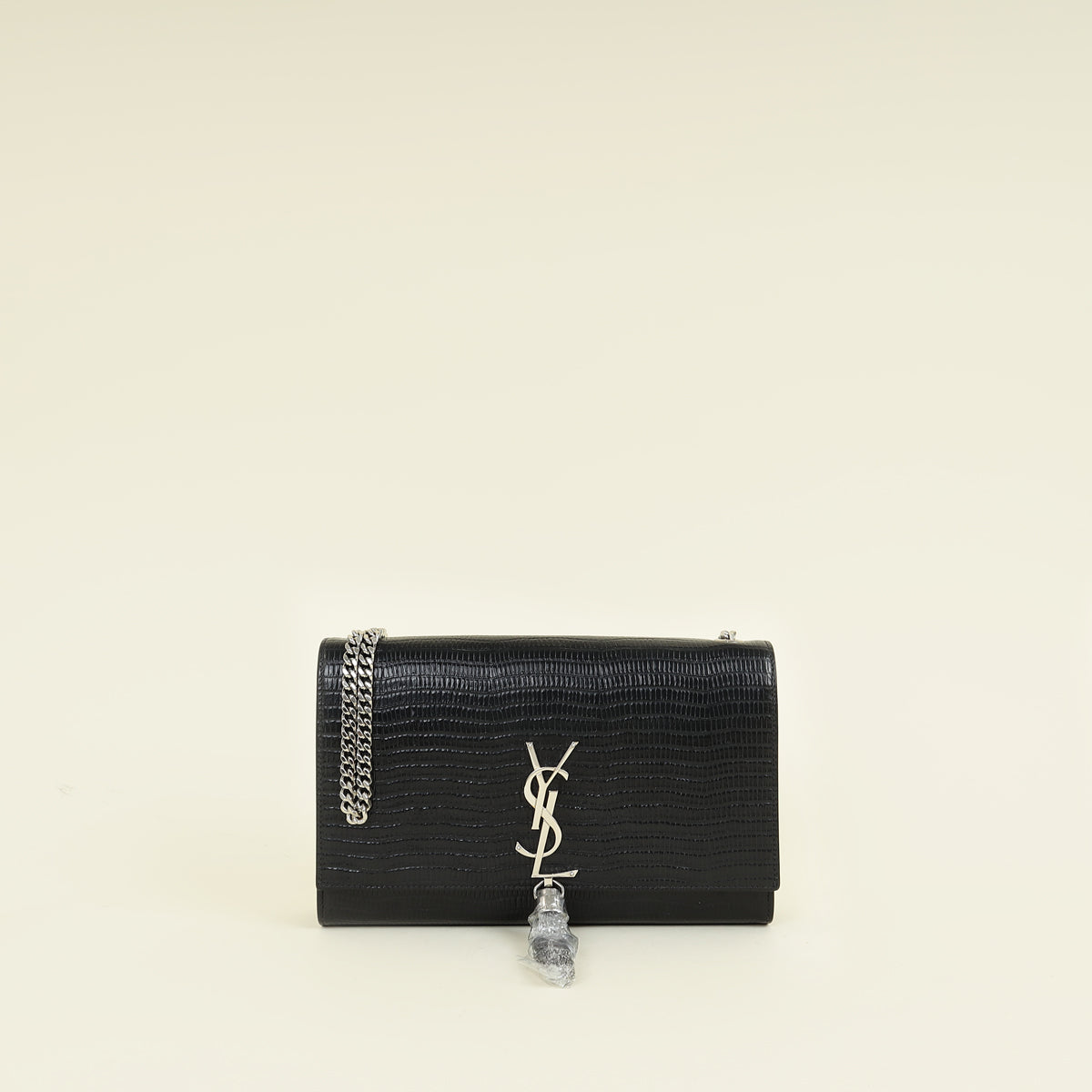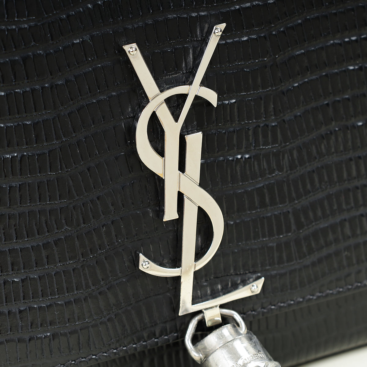 YSL Black Monogram Kate Tassel Lizard Embossed Medium Bag