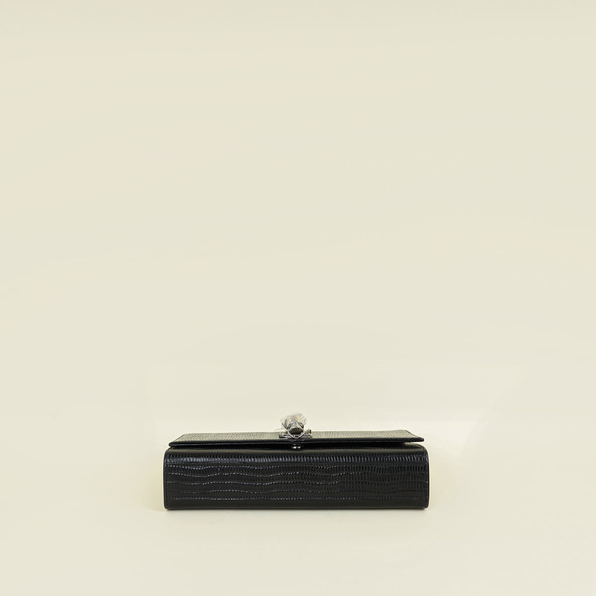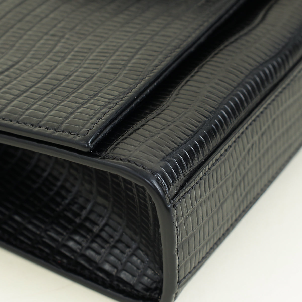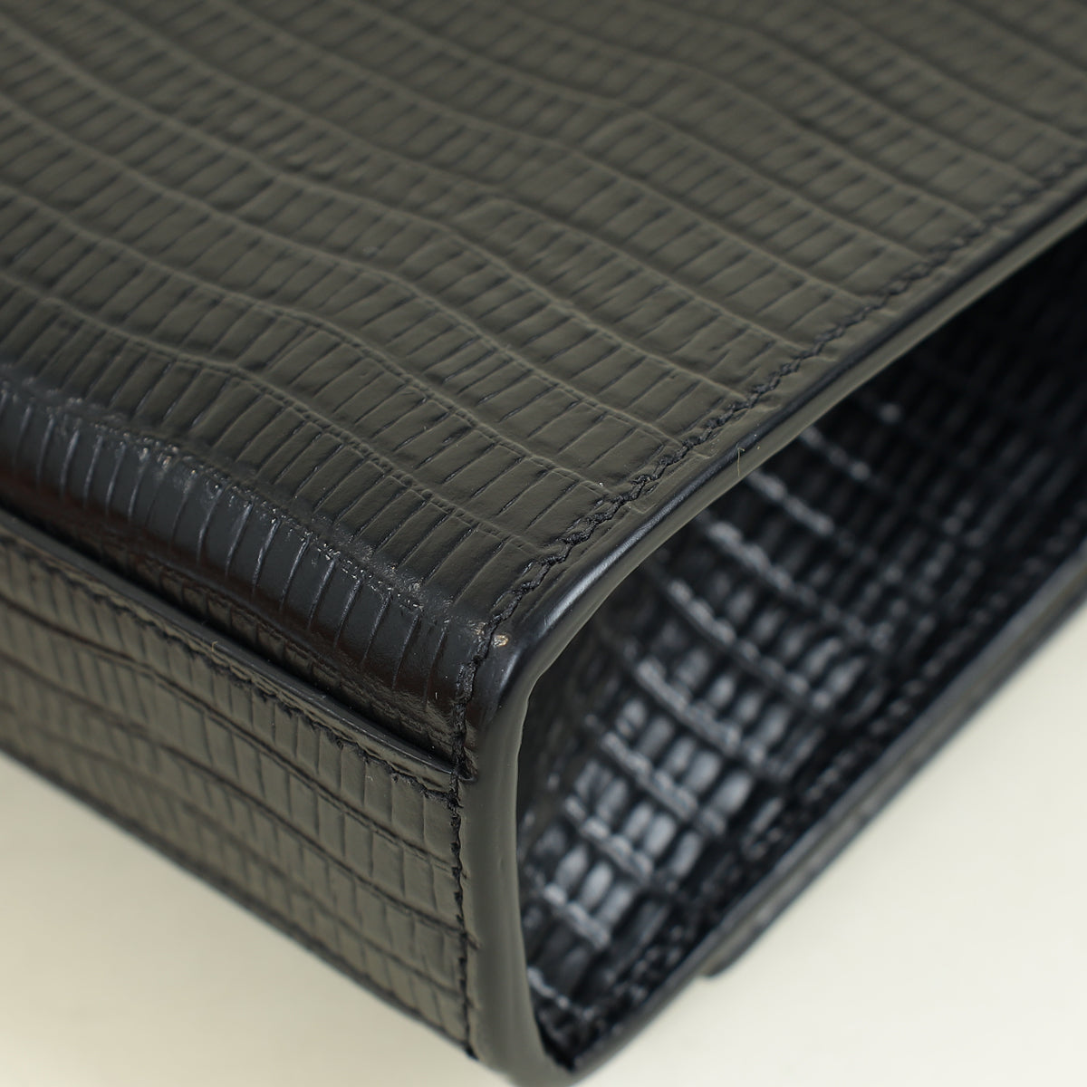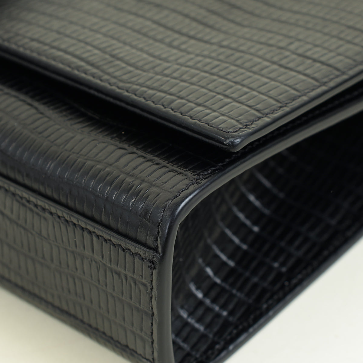 YSL Black Monogram Kate Tassel Lizard Embossed Medium Bag