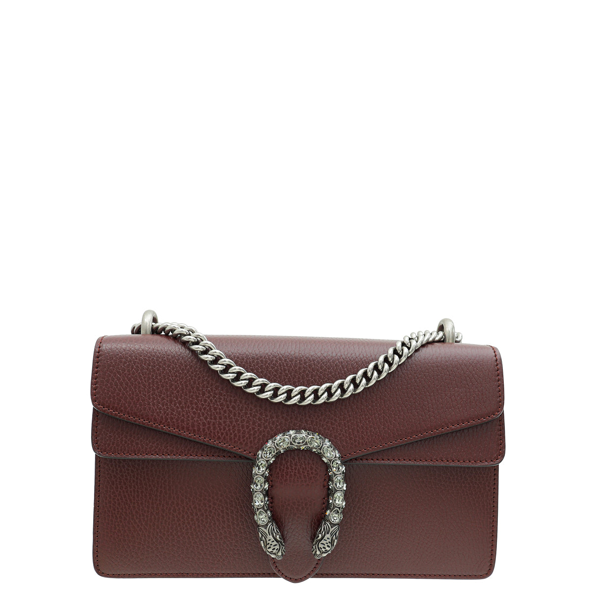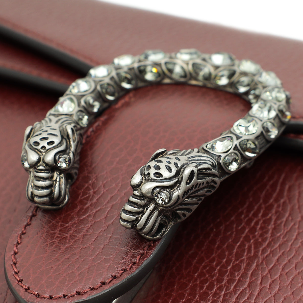 Material: Burgundy Grained Calfskin Leather and Tiger Heads Closure with Crystals