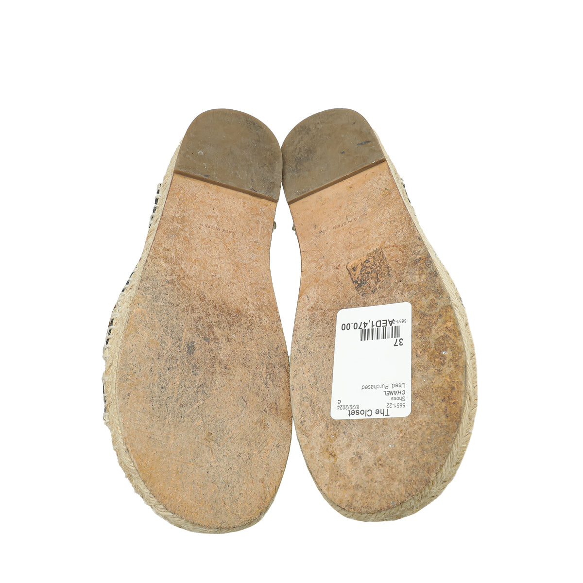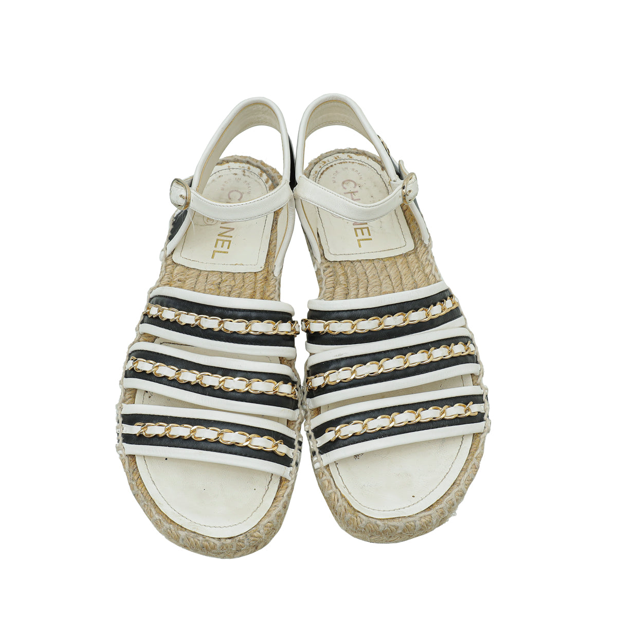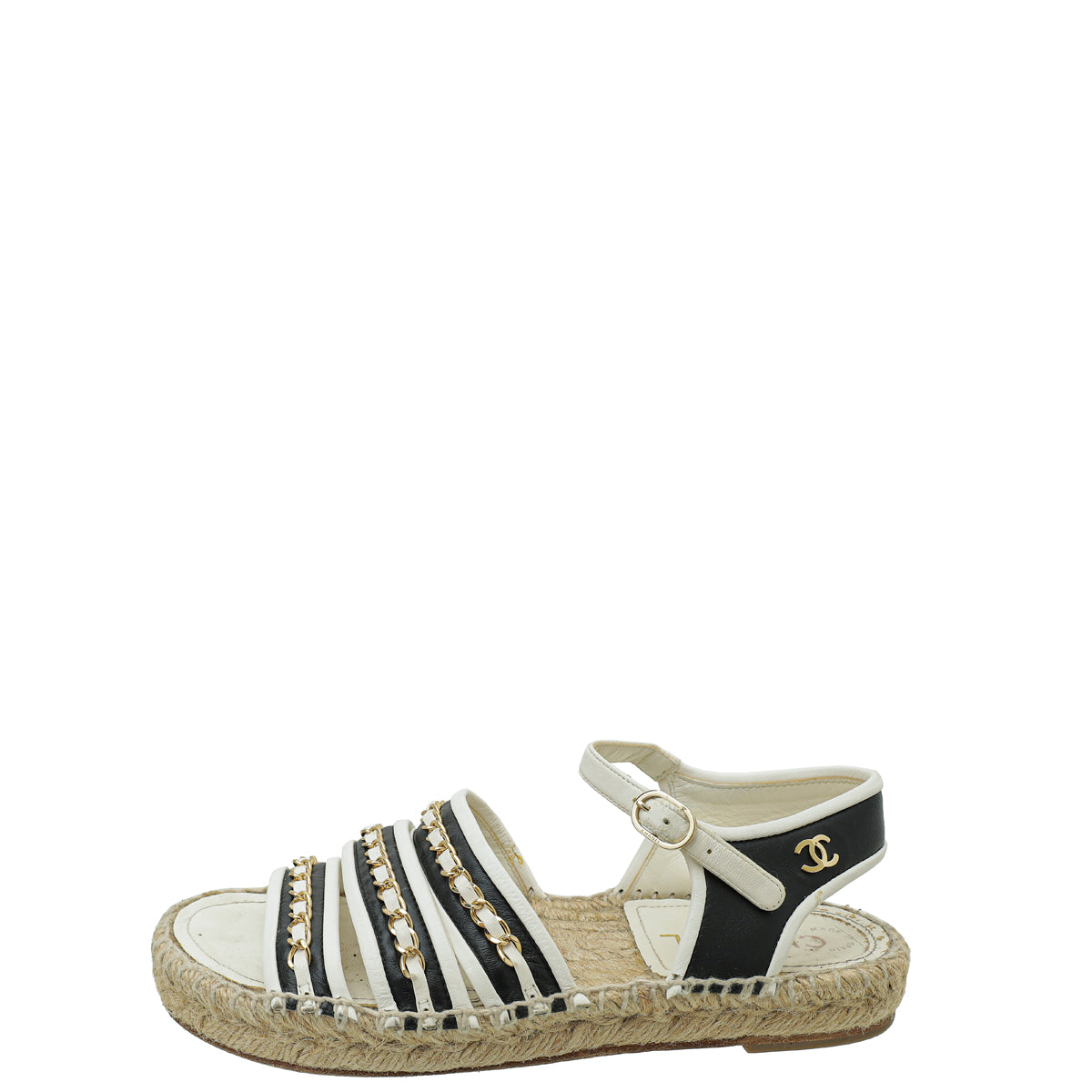 Chanel Bicolor CC Chain Slides Espadrille Sandal 37