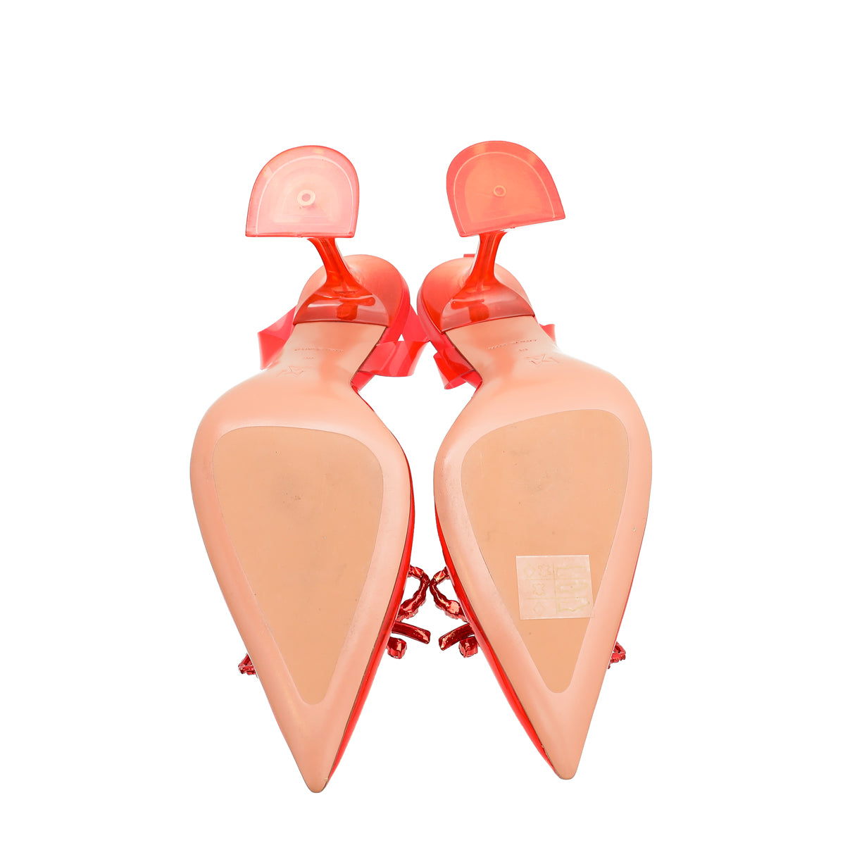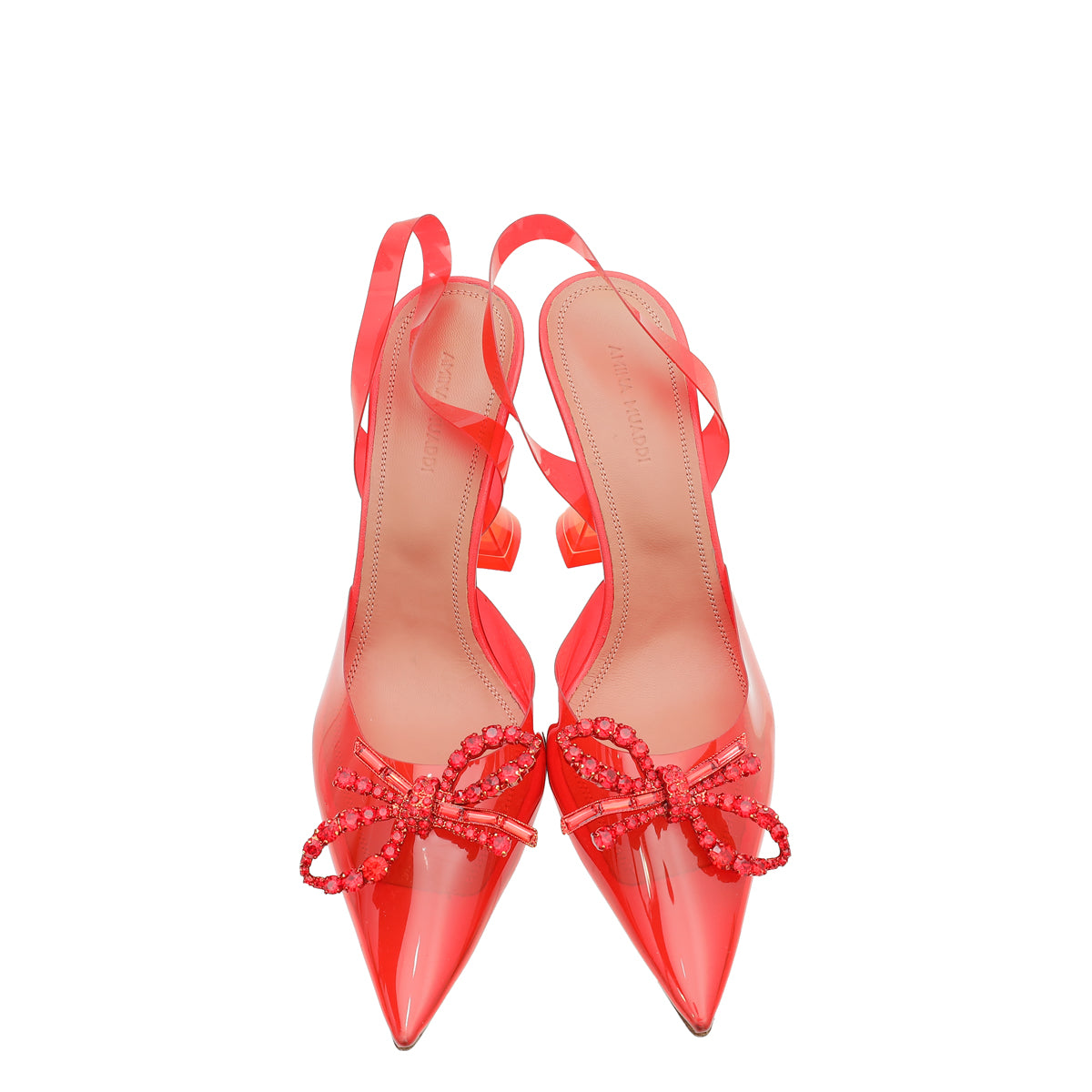 Amina Muaddi Red Rosie Glass Crystal Bow PVC Pump 38-Amina Muaddi-THE CLOSET