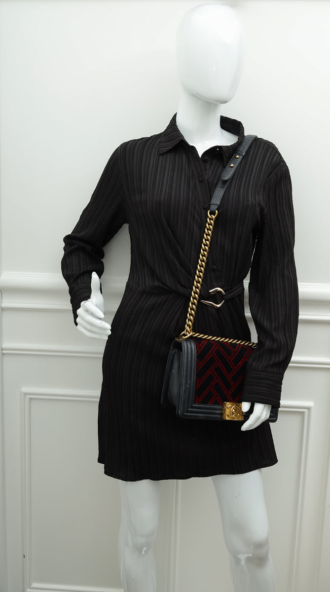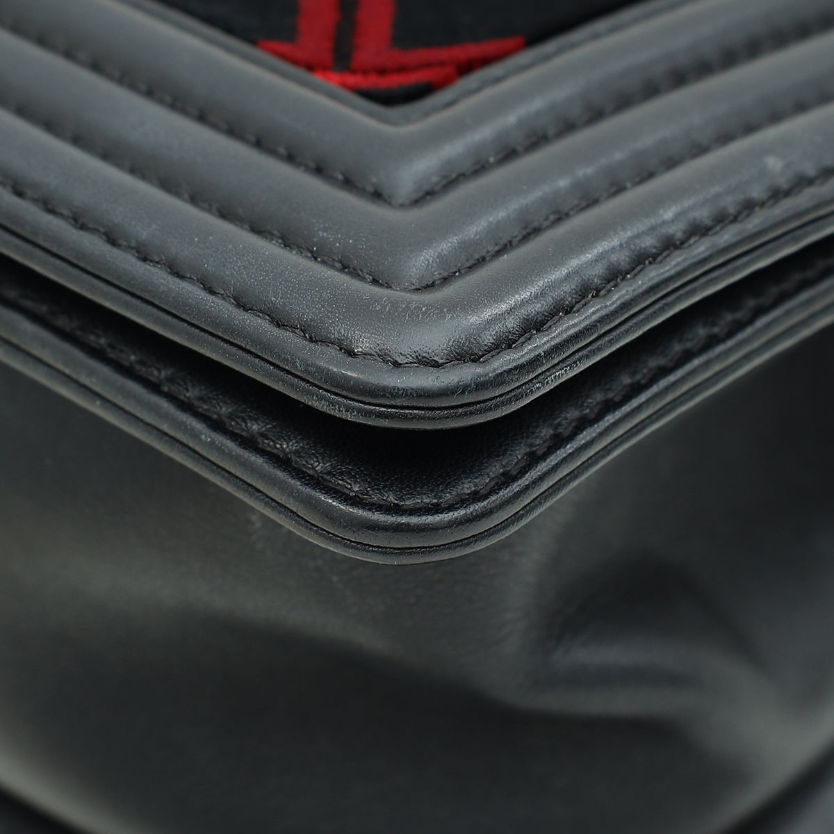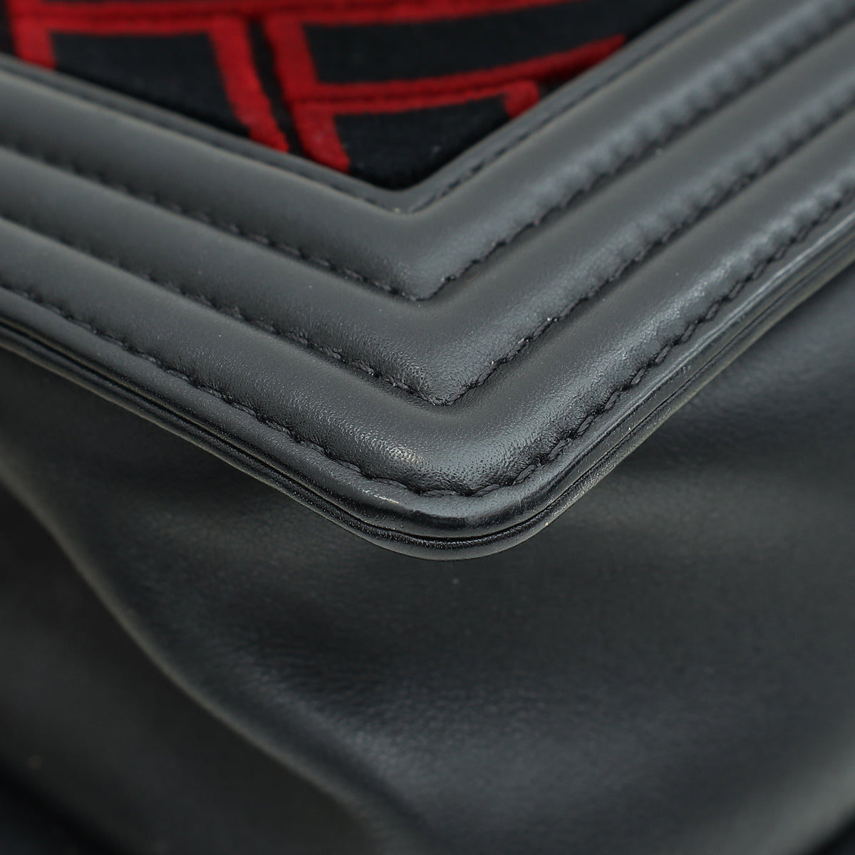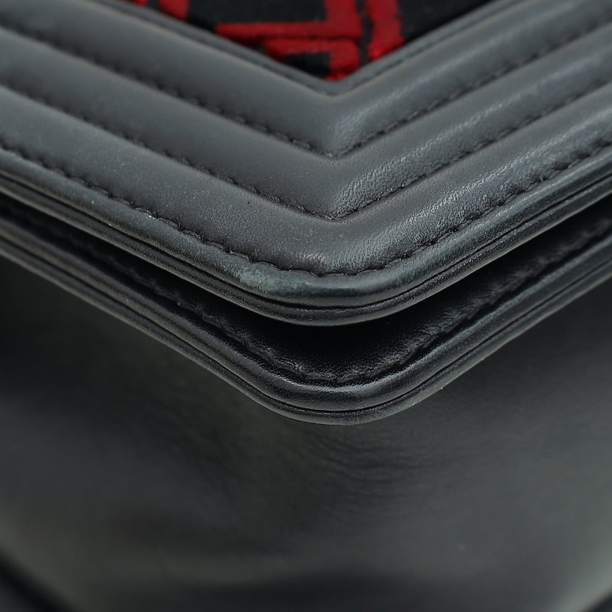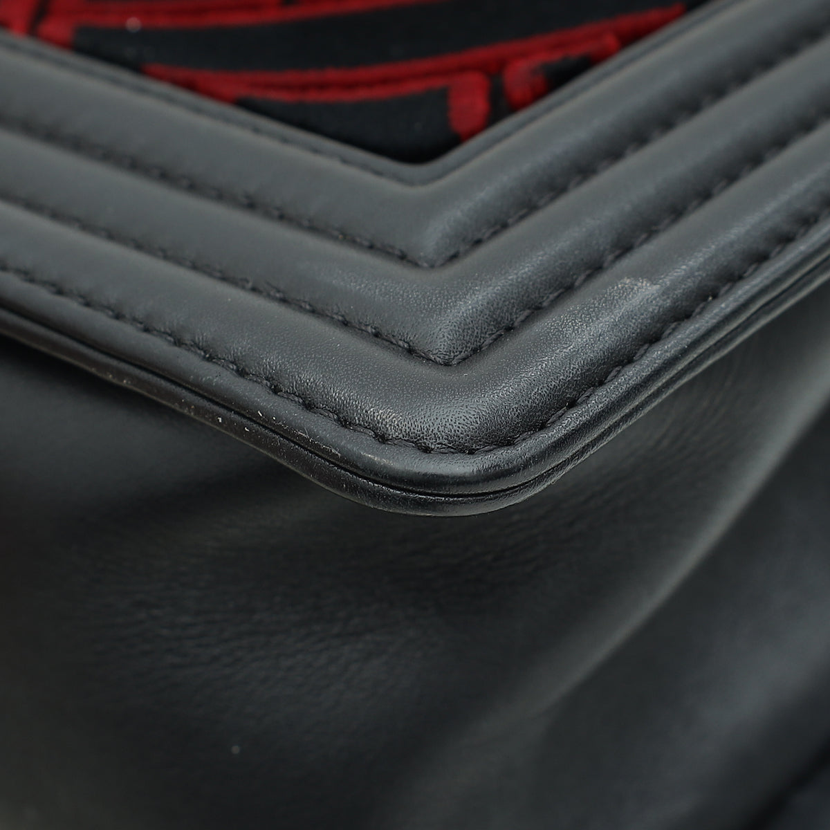 - Material: Black/Red Velvet and Calfskin Leather Trim